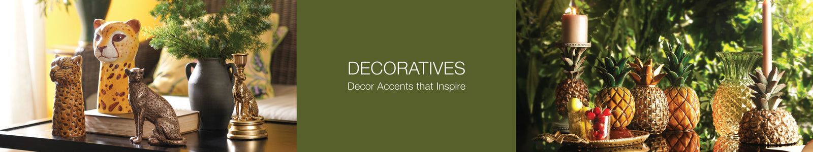 At Pure Home + Living, our decoratives are made from superior quality glass, metal, ceramic and polyresin. These home decor pieces are artisanally crafted to lend elegance to your place. Metal and glass decorative items include candle holders, and decorative bowls. Whereas ceramic and polyresin pieces include vases, sculptures and figurines.