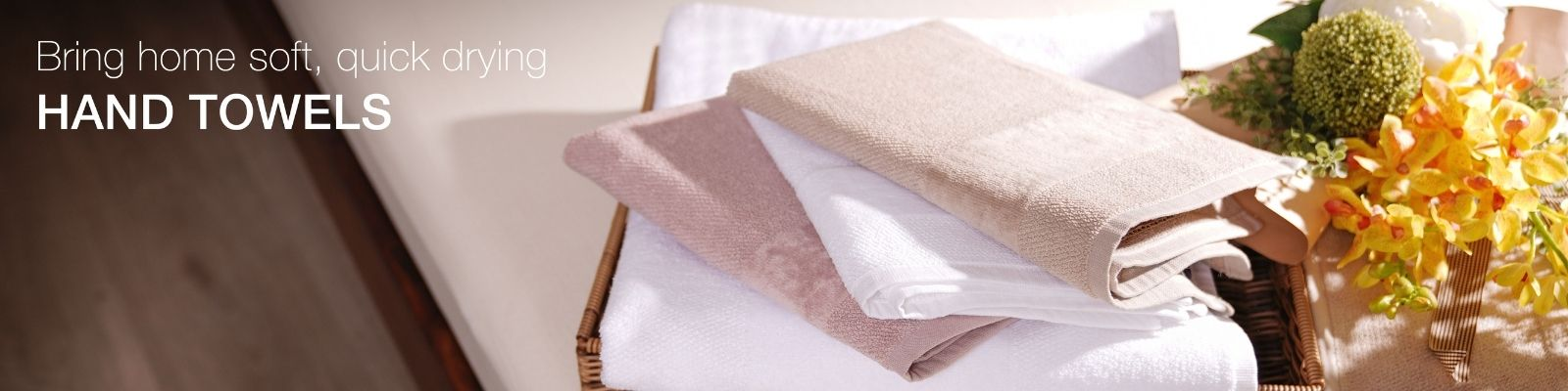 You should choose cotton hand towels for your home as cotton offers quick drying and is soft to touch.