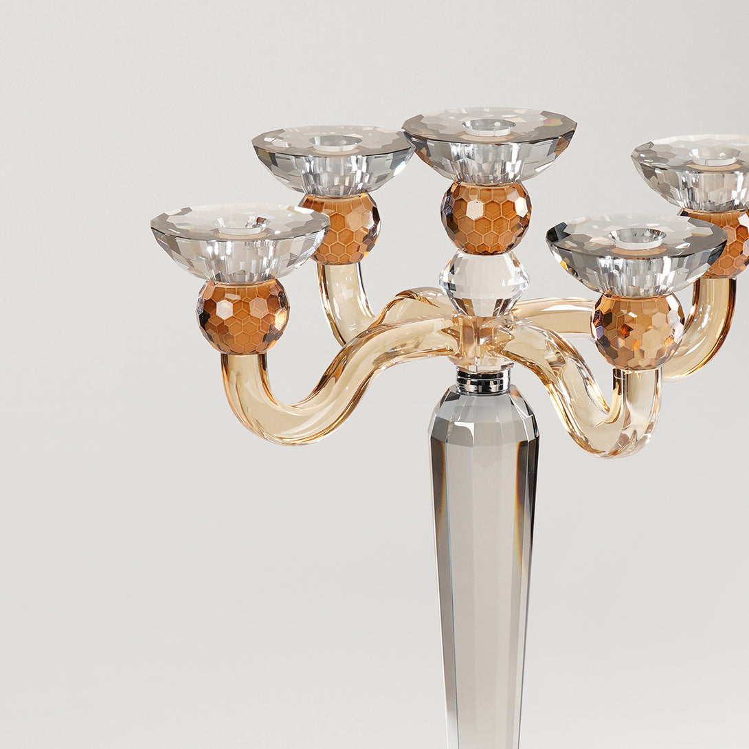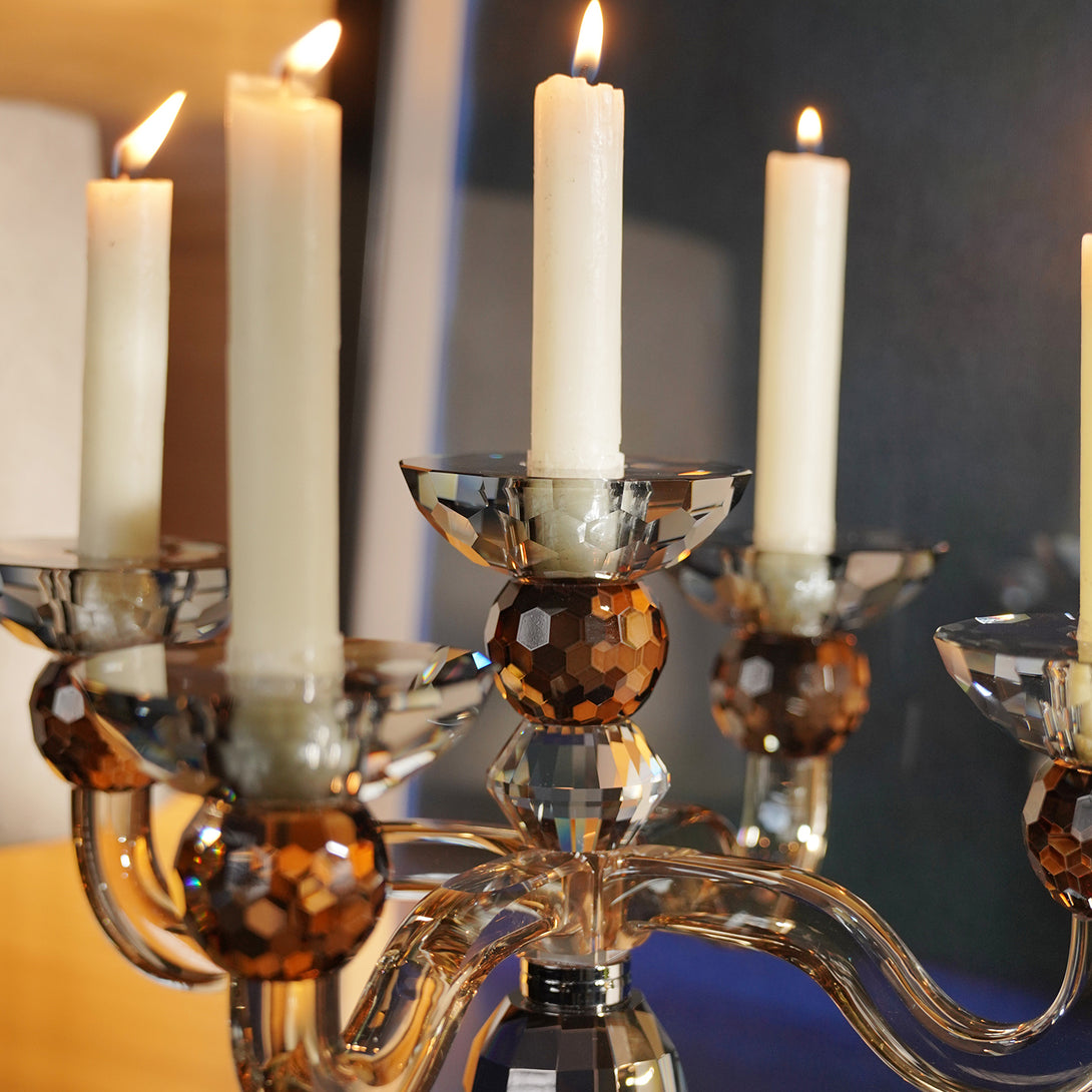 Dazzle your evenings with this luxurious multi-arm crystal candelabra. Its elegant silhouette and grand design make it a perfect centrepiece for festive dining or luxe decor styling.