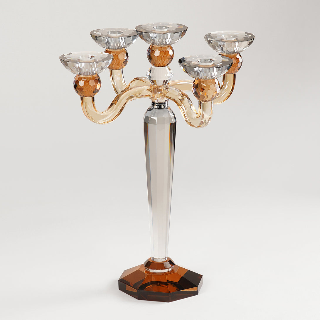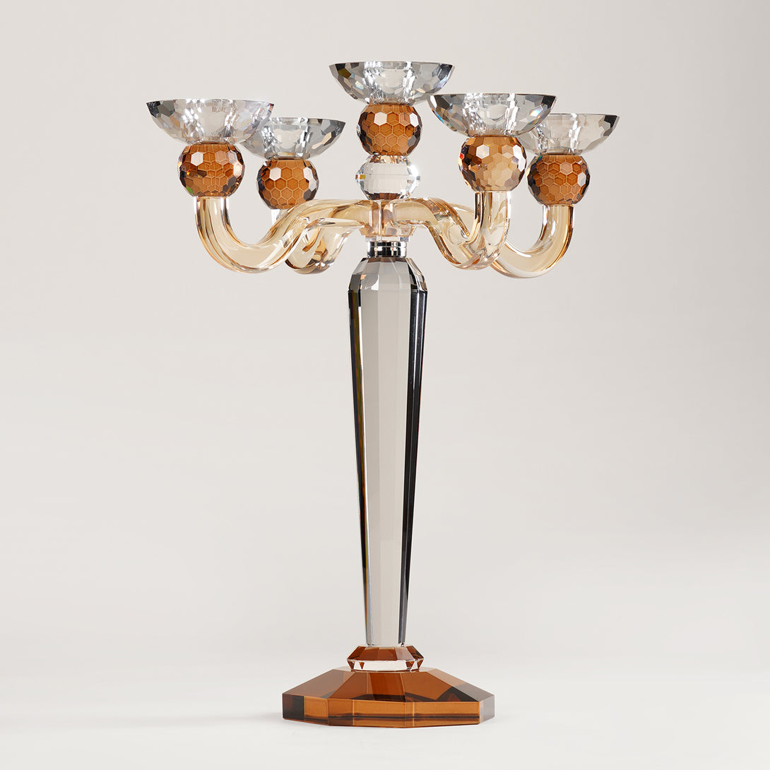 3 Tone 5 Arm Cut Glass Crystal Candle Holder