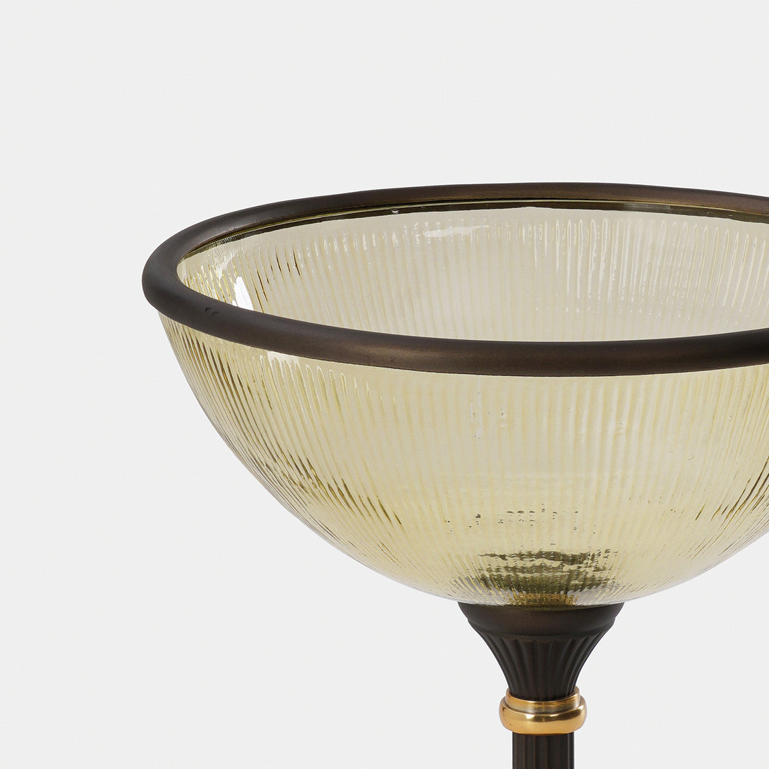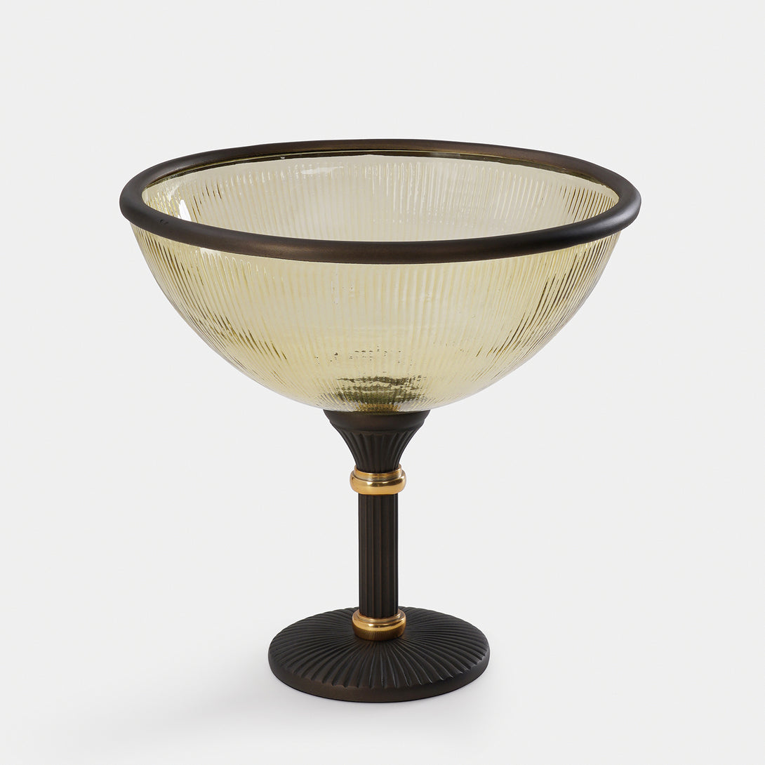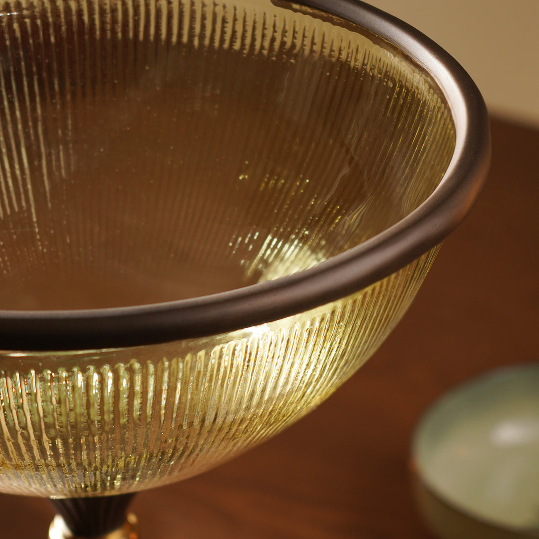 Amber Antique Finish Ribbed Glass Bowl with Stand - Large