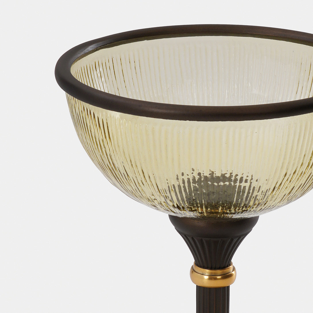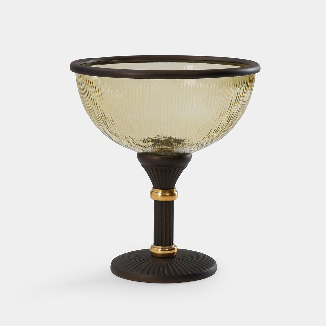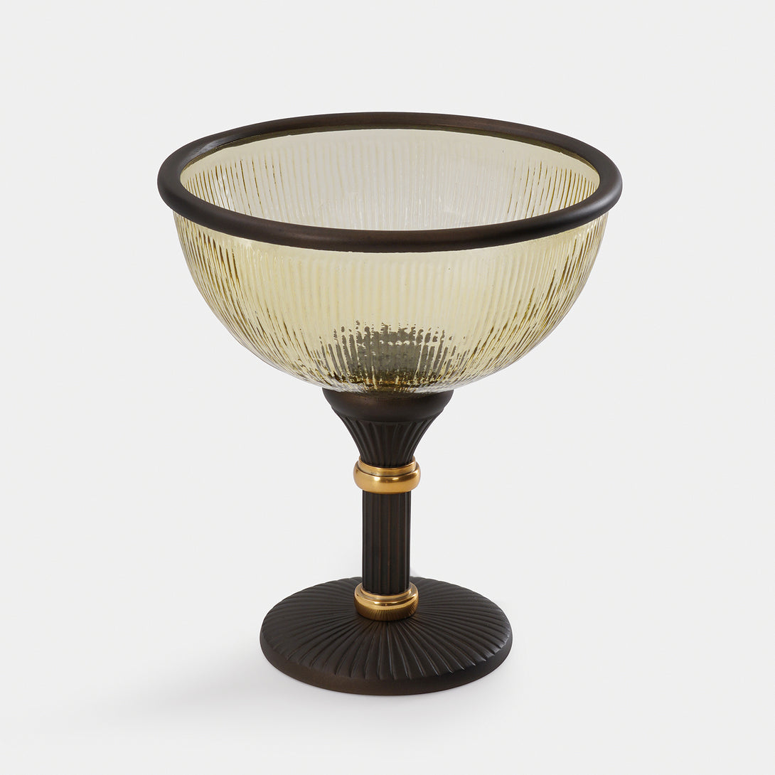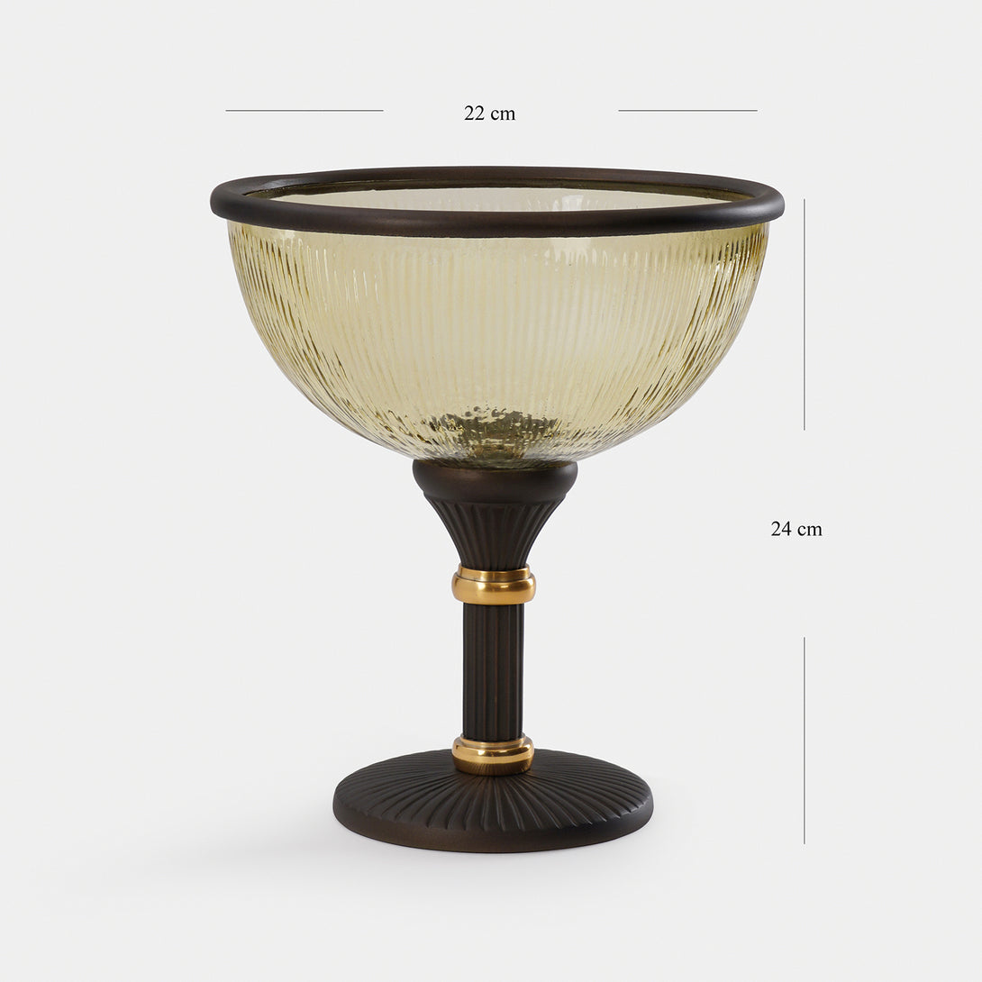 Amber Antique Finish Ribbed Glass Bowl with Stand - Small