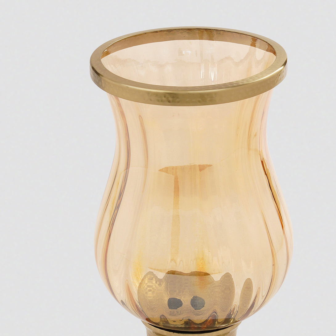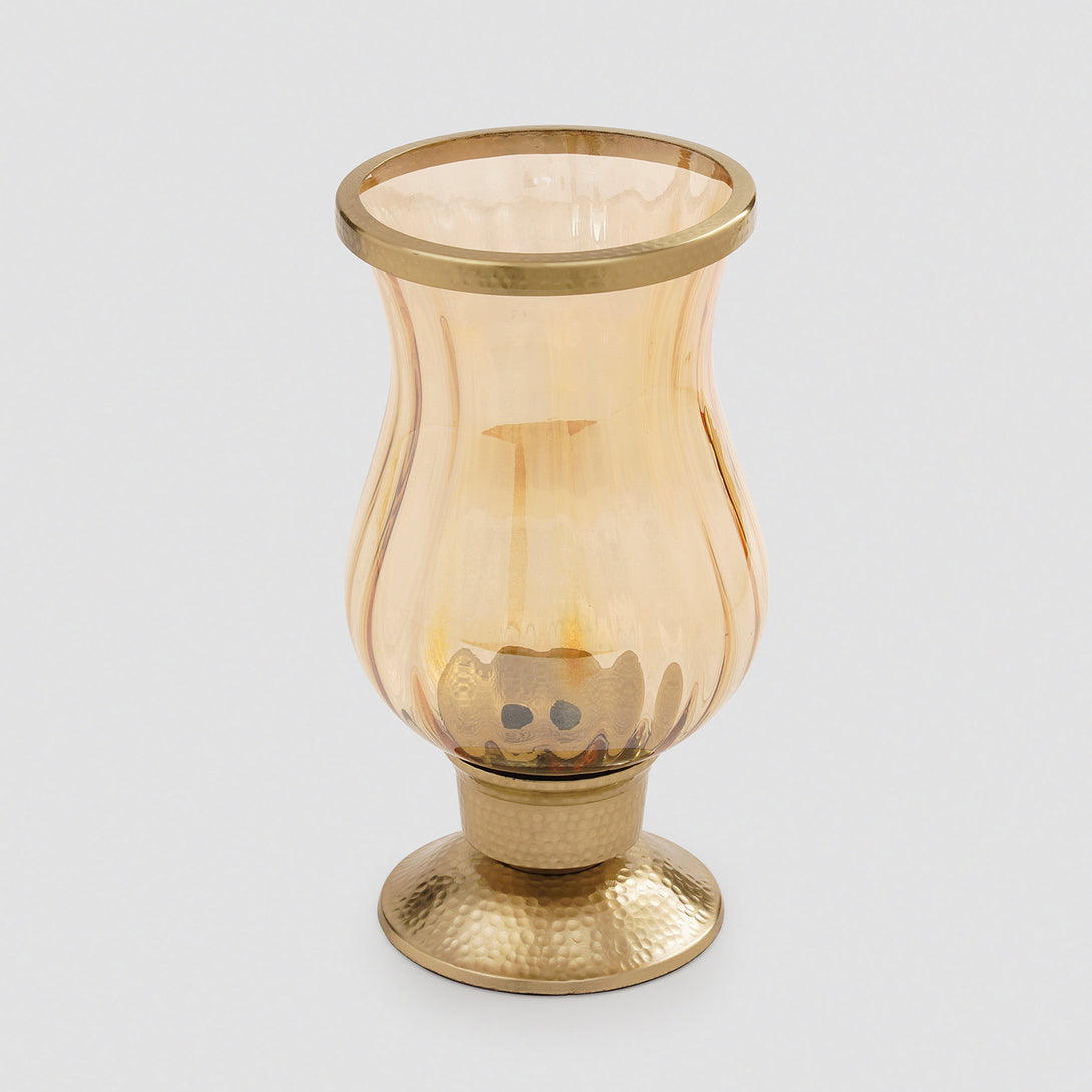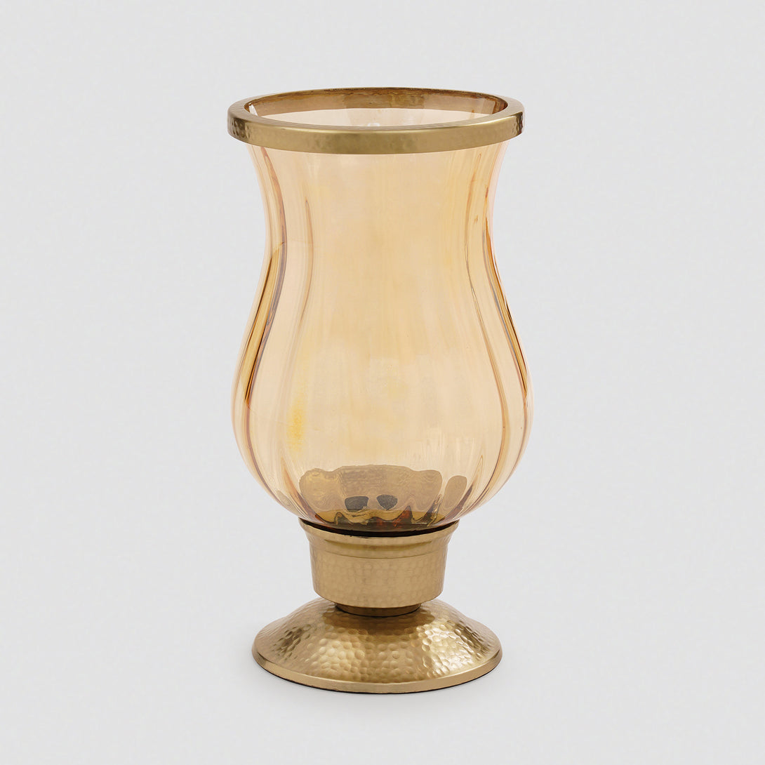 Amber Glass Hammered Hurricane Candle Holder with Stand