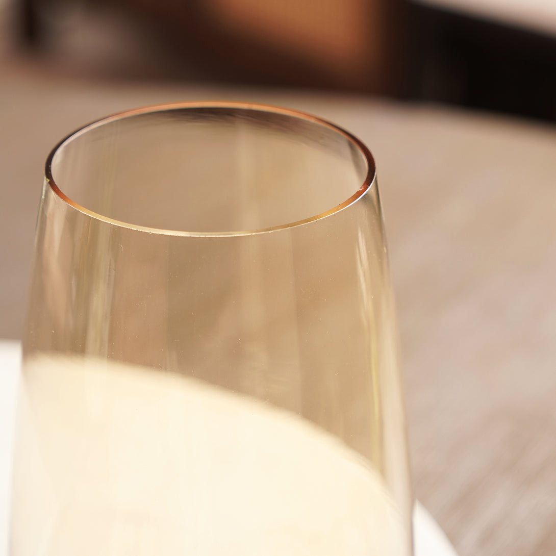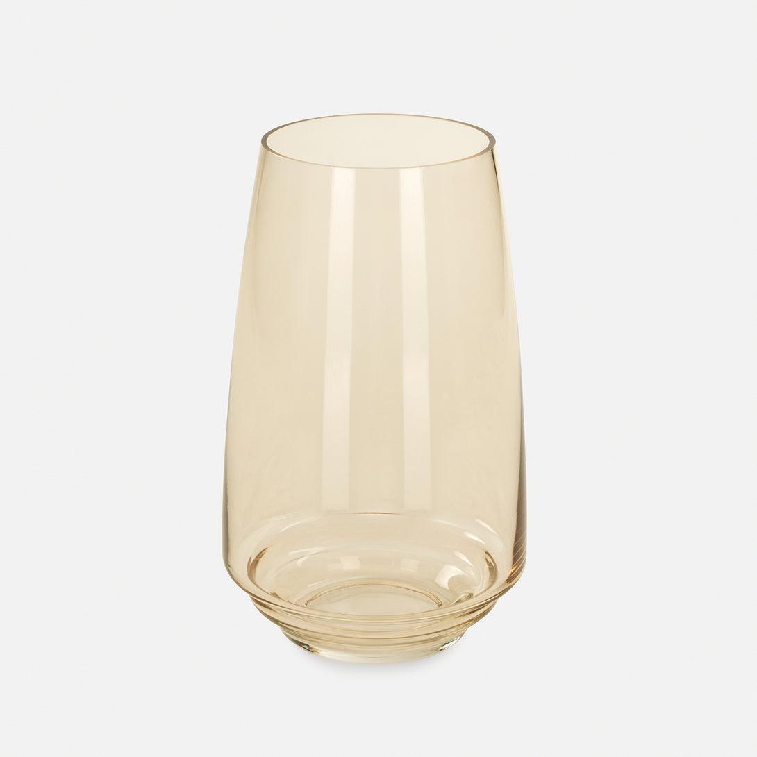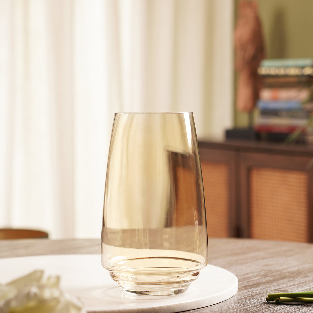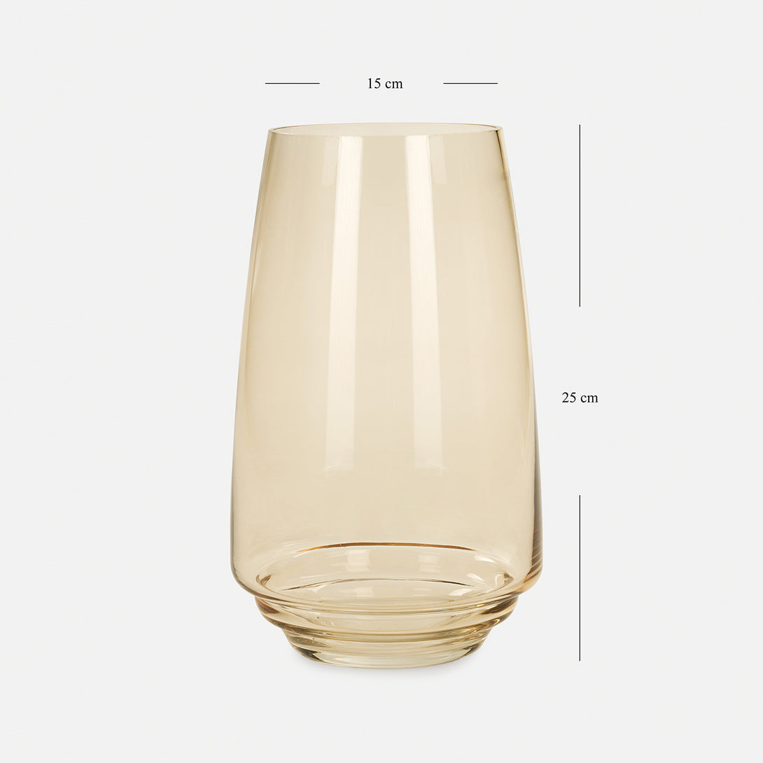 Elevate your home decor with this sleek amber glass vase. Its sleek, tall design makes it perfect for displaying long-stemmed flowers or standing alone as a statement piece.