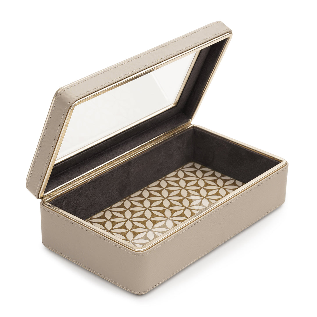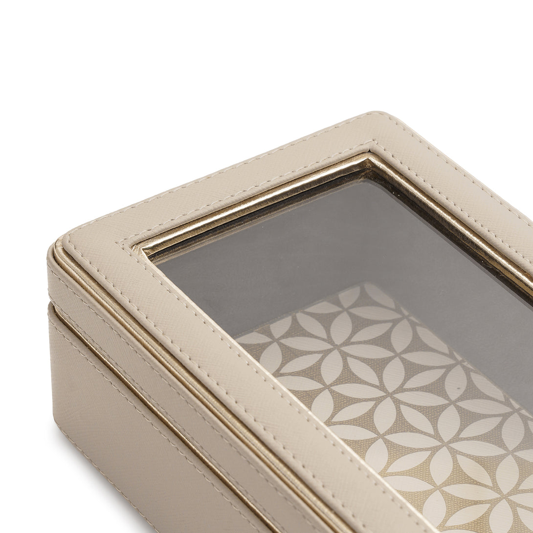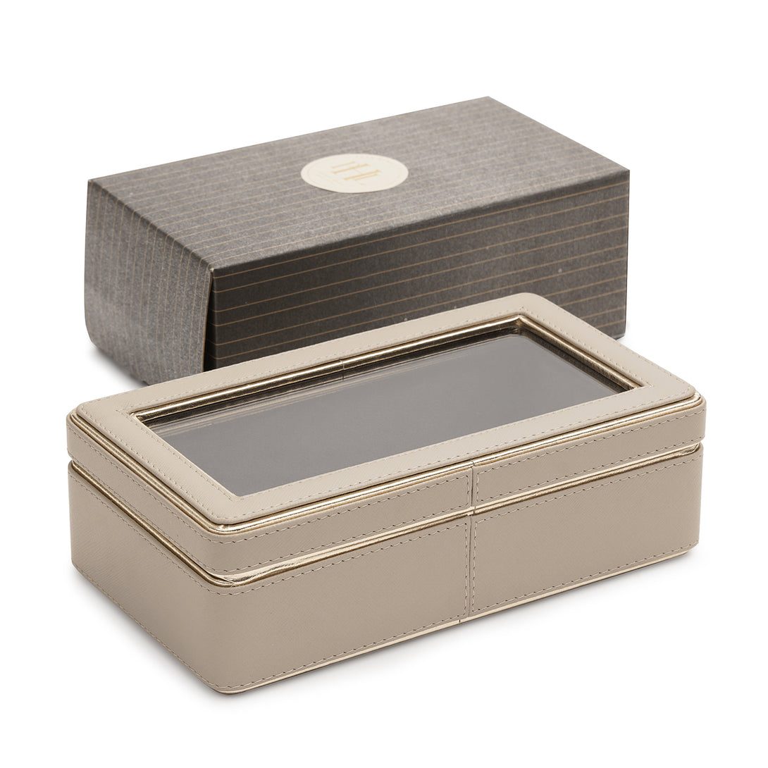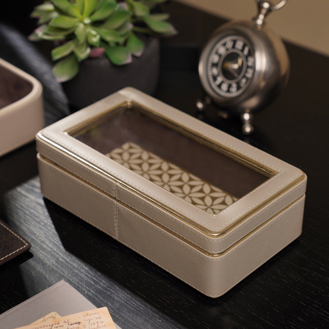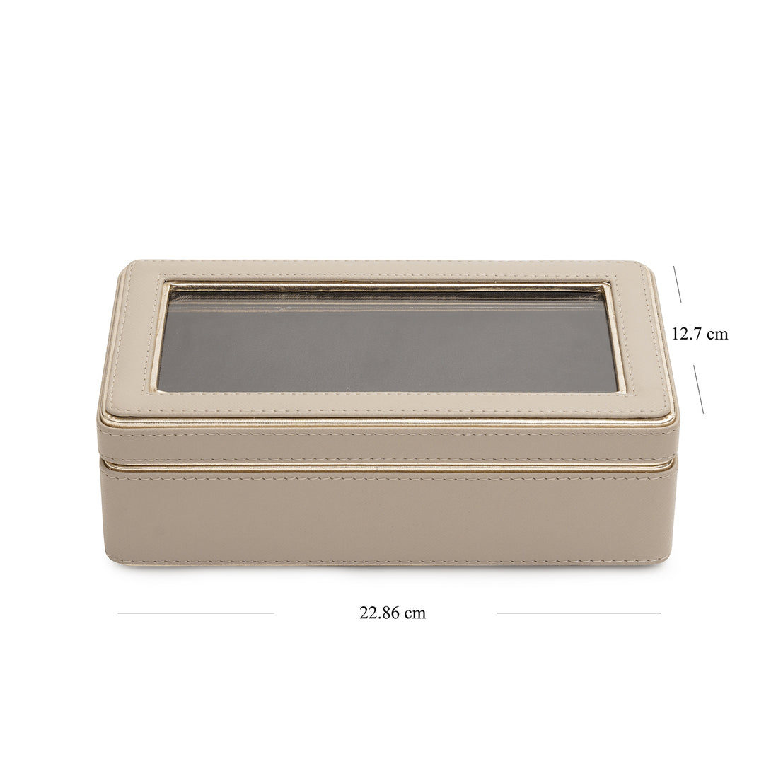 Pick this beautiful faux leather beige box to store your baubles safely on your vanity. Handcrafted in faux leather, it showcases an exquisite combination of sophistication and style.
