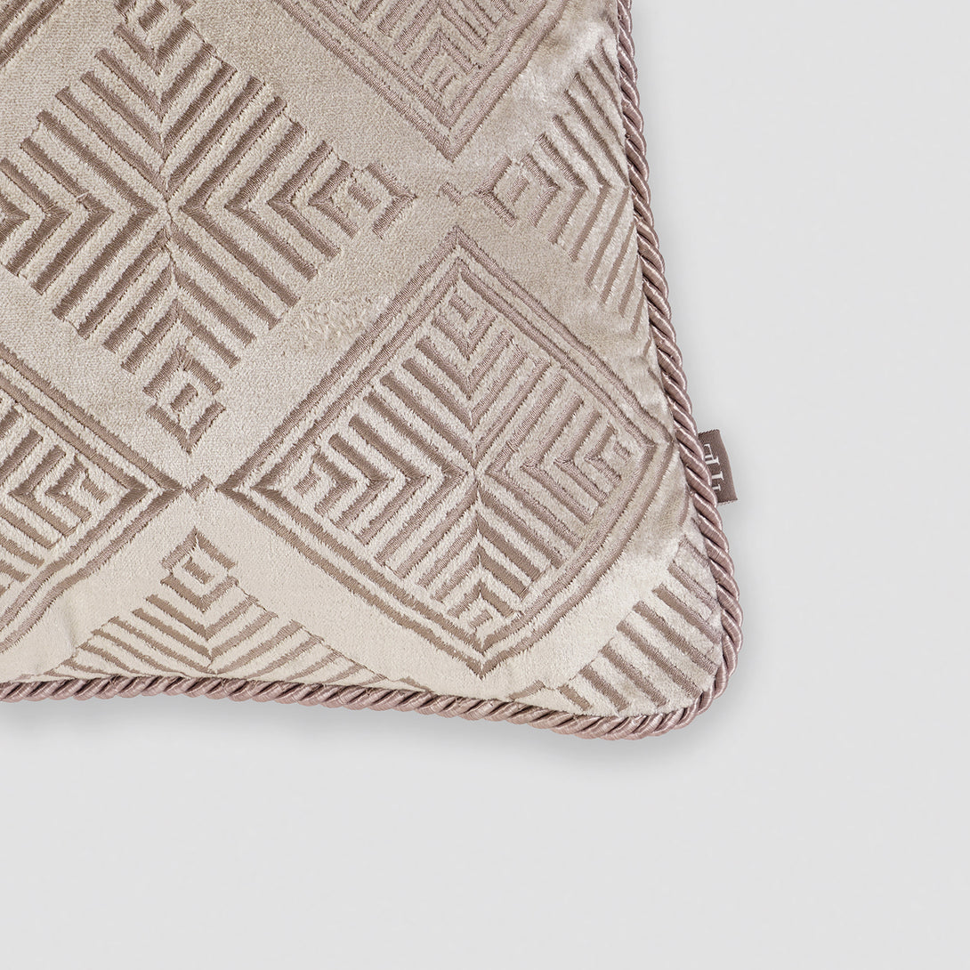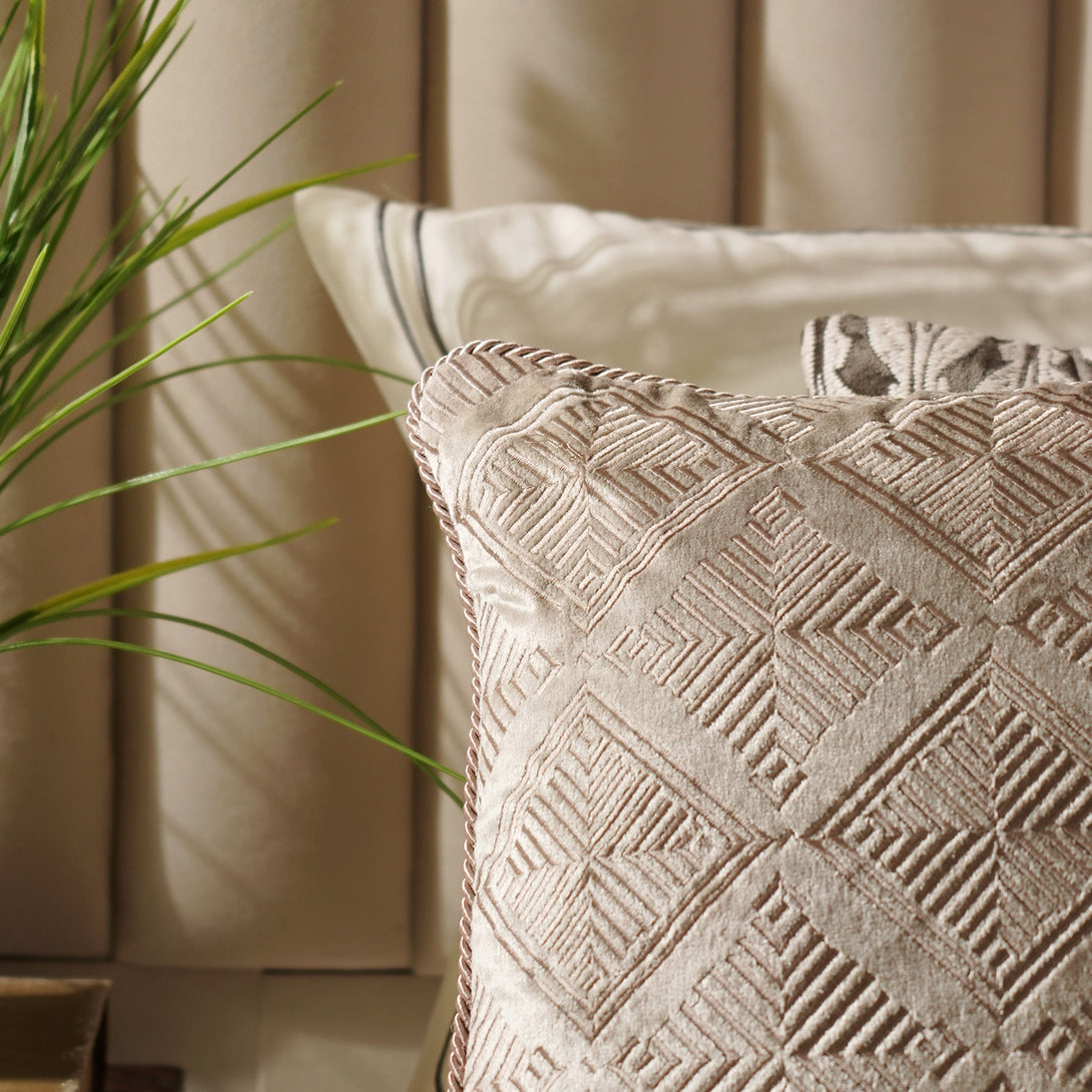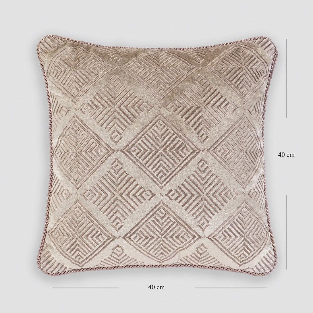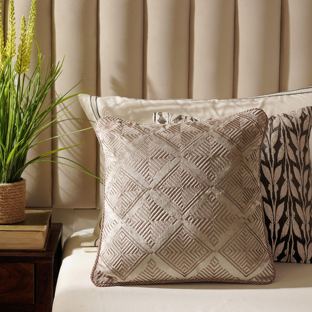 Beige Geometric Embroidered Cushion Cover