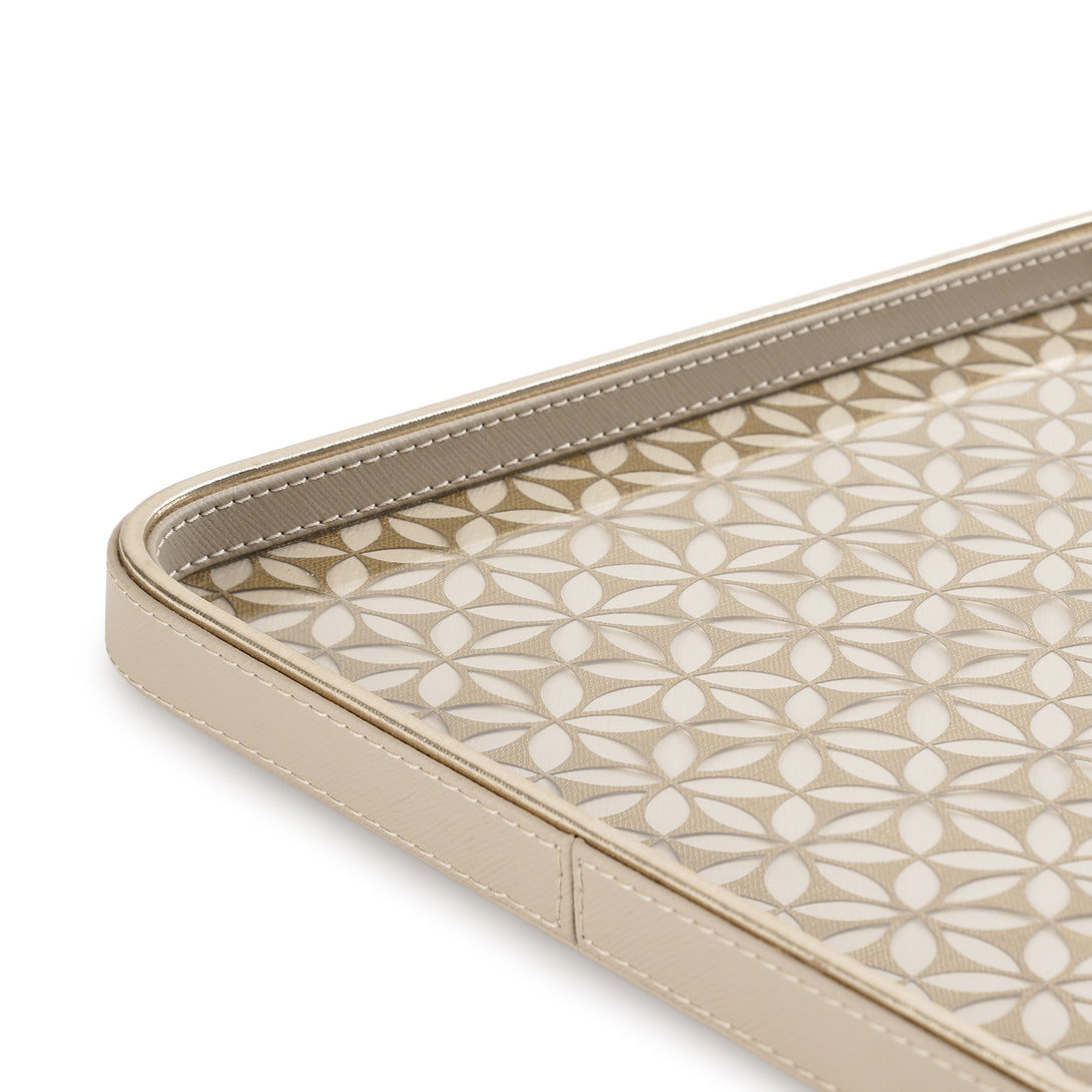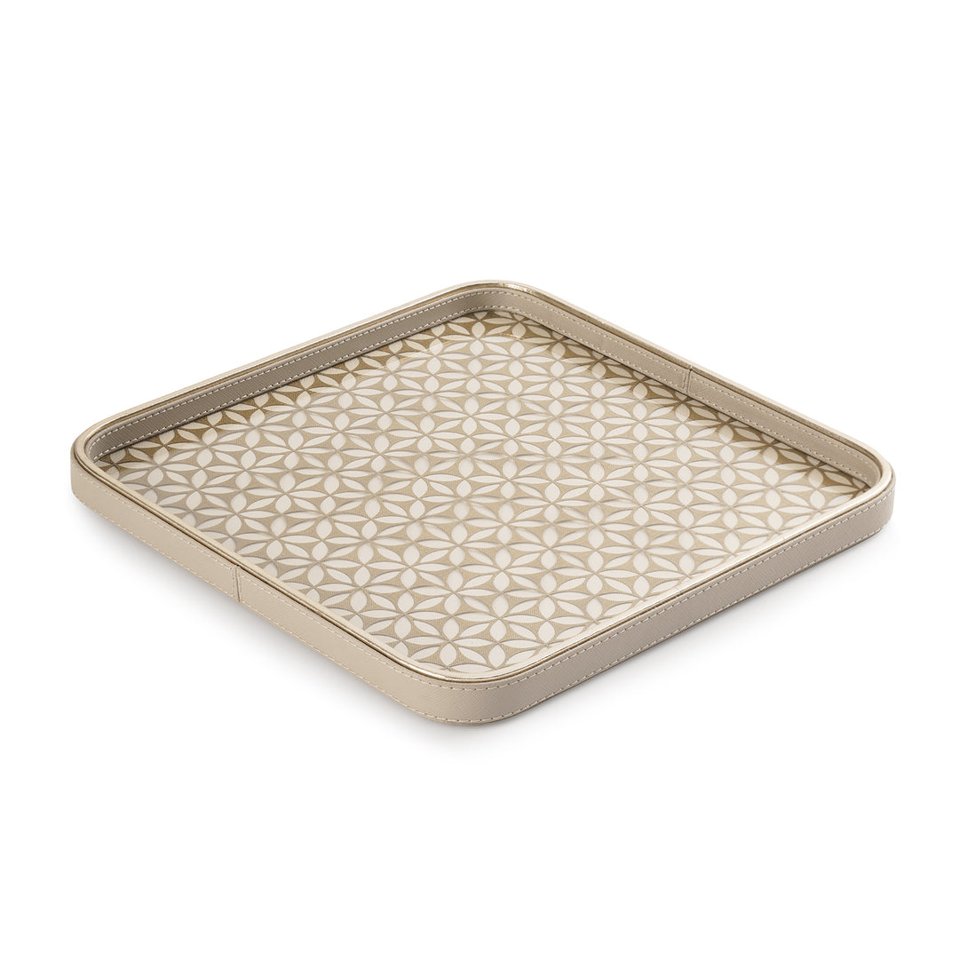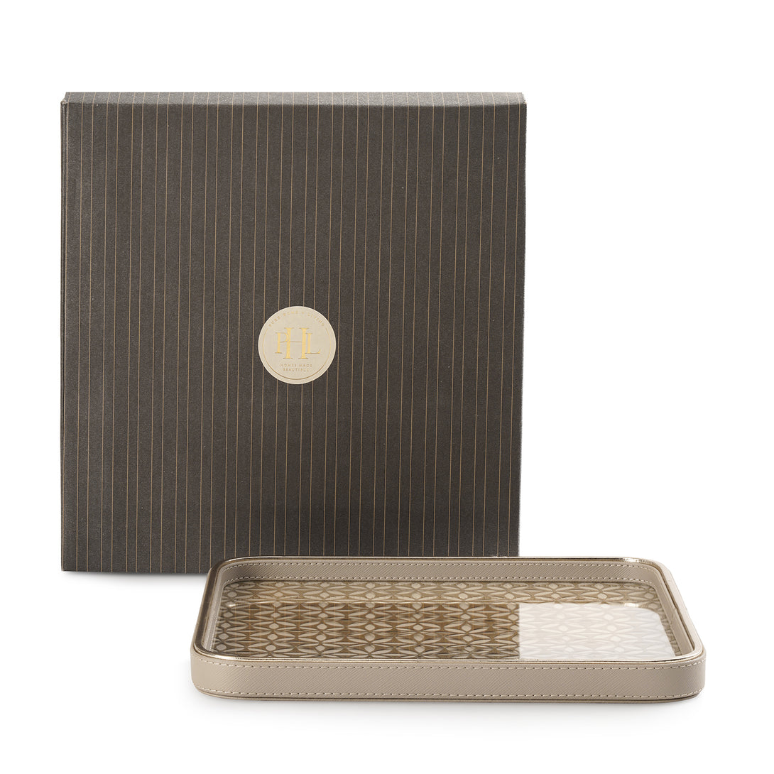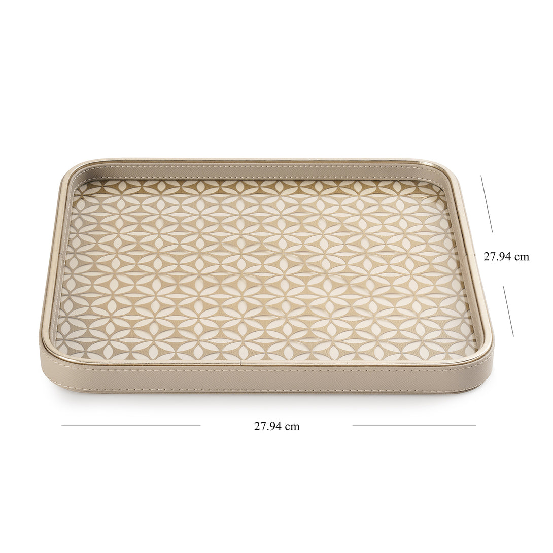 With a classic shade and a faux leather finish, this square platter looks lovely on the dining table with a vase or a side table with votives. It features a glass base with a laser-cut pattern to elevate the look and feel of the platter.