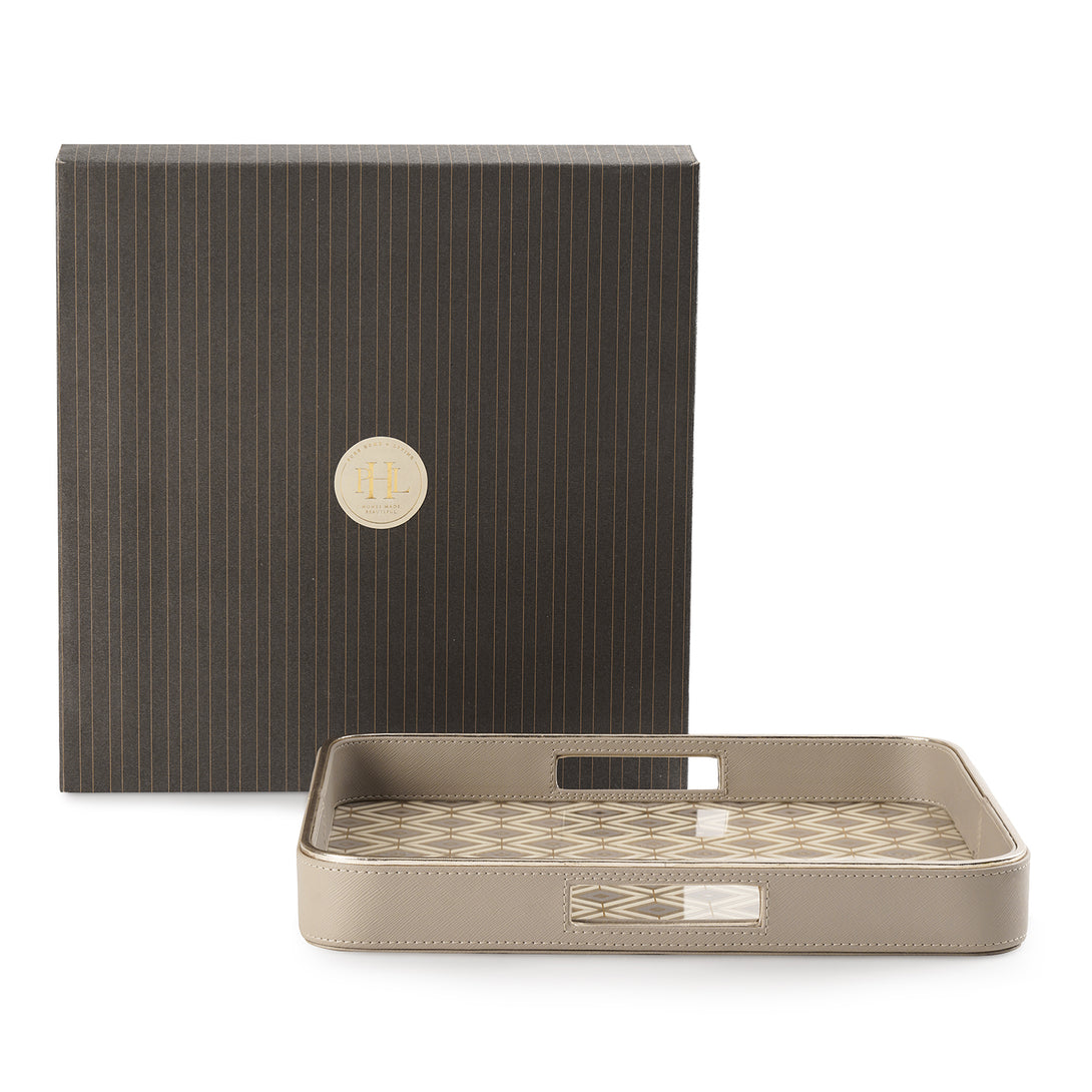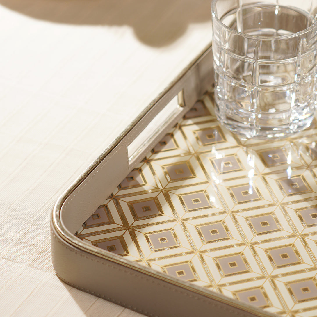 With a timeless shade and a faux leather finish, this tray is perfect to serve your favourite beverage or to hold your essential table linens.