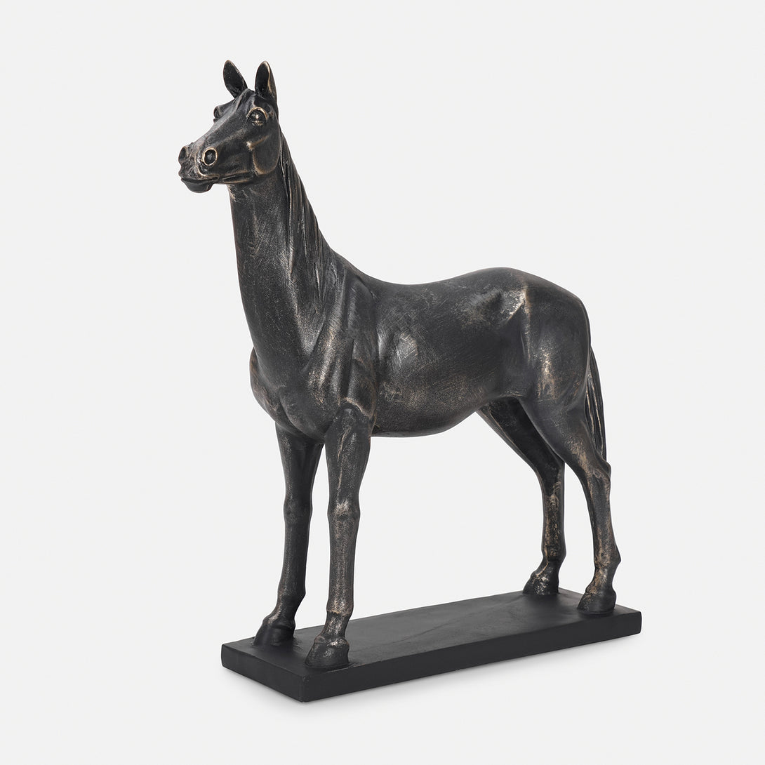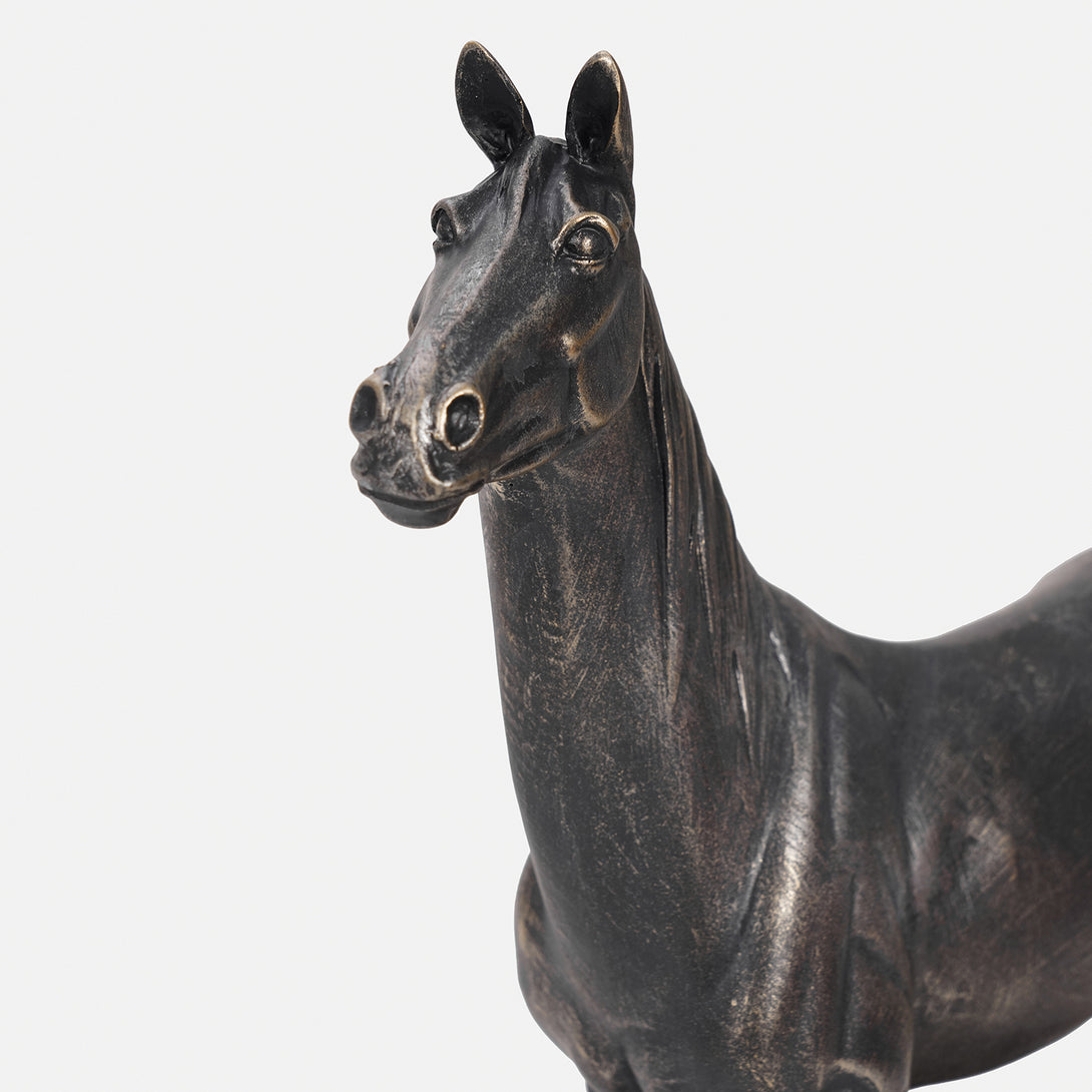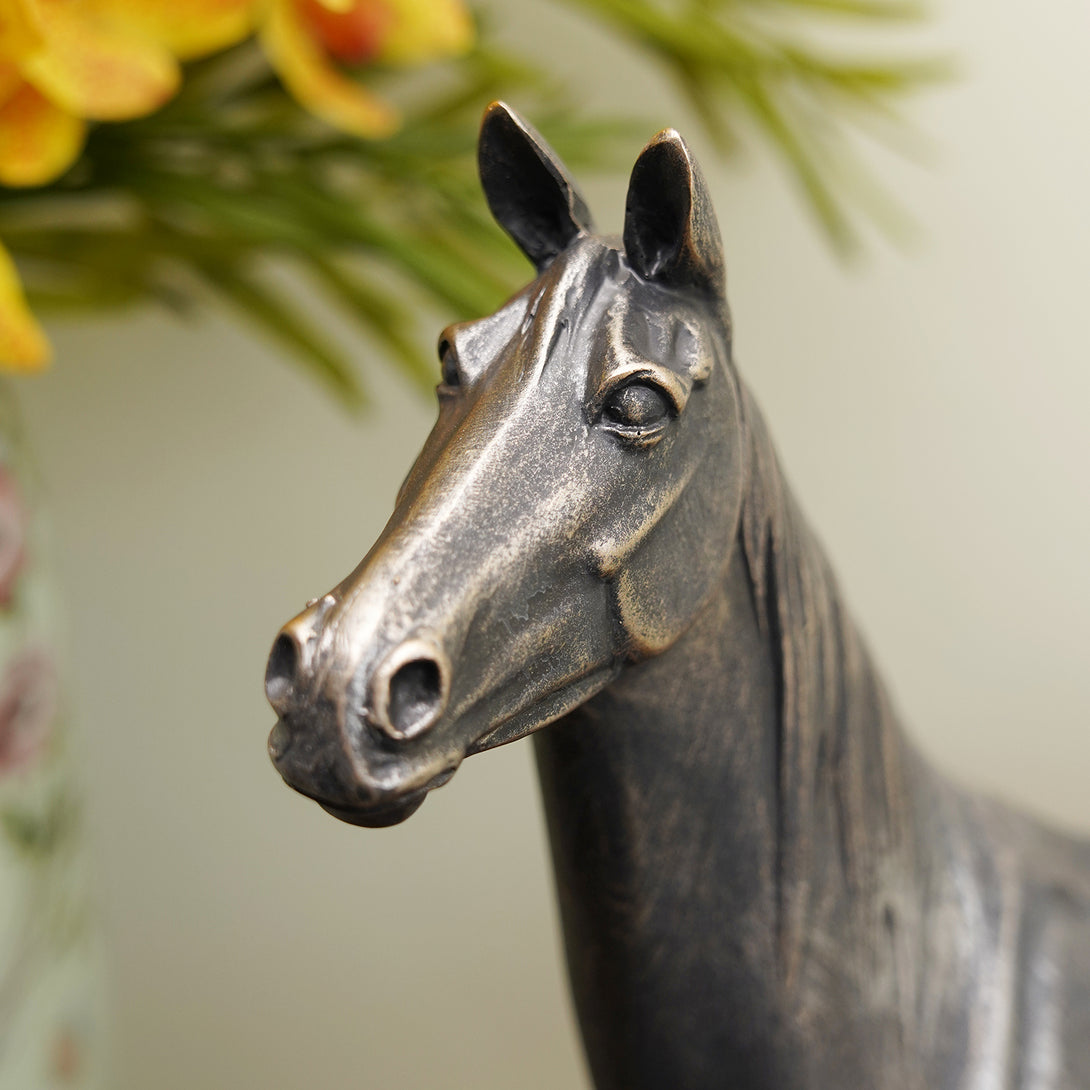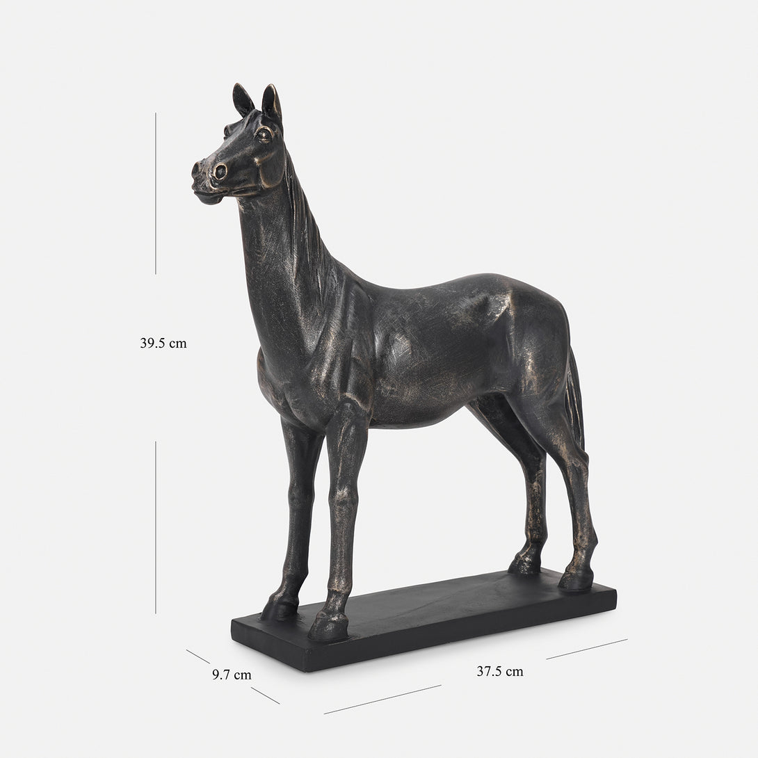 Add a touch of class and elegance to your space with this black horse figurine. Crafted in polyresin, it is durable, light, and easy to style, be it in a bedroom, office, or living area.