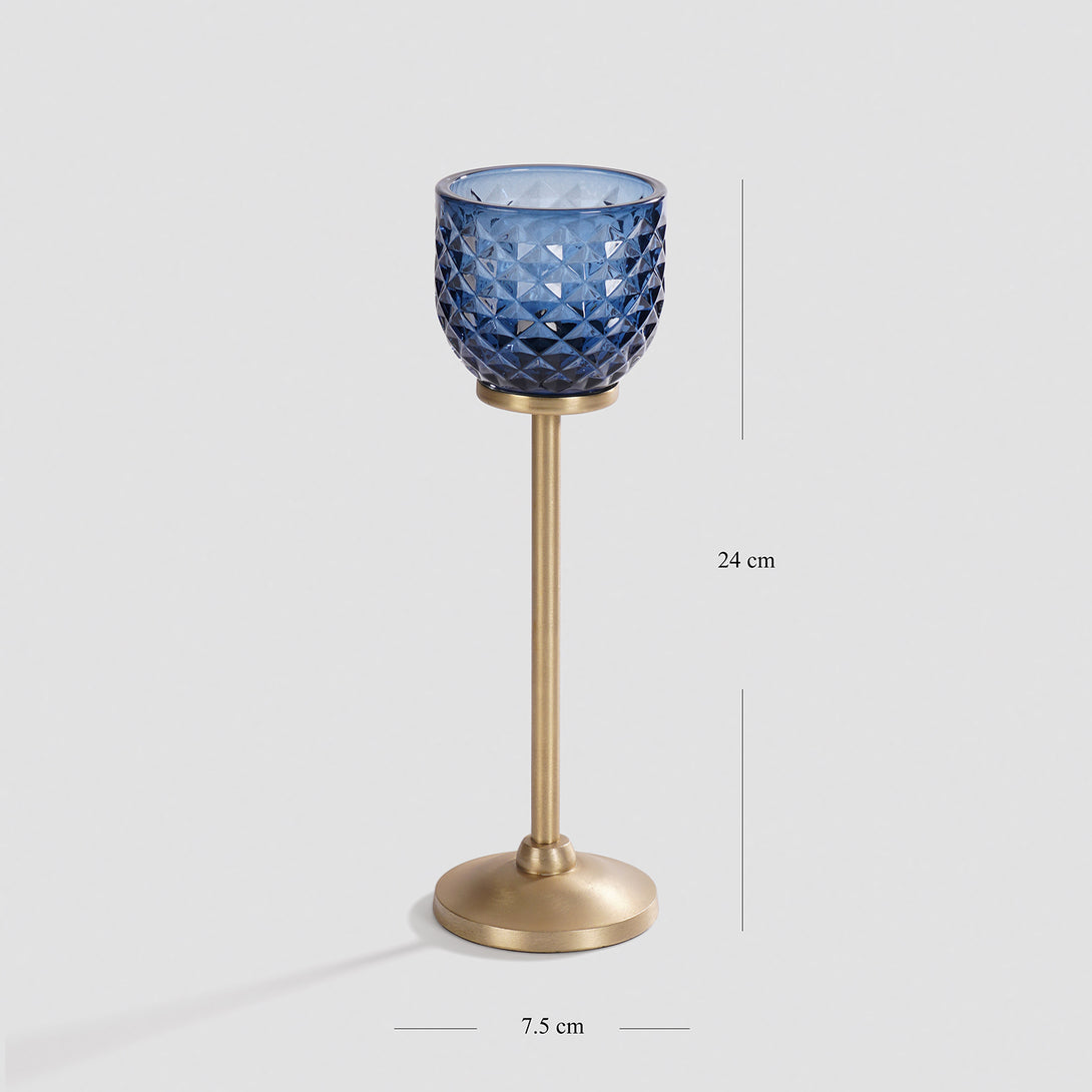 Blue Diamond Texture Candle Holder with Stand - Small