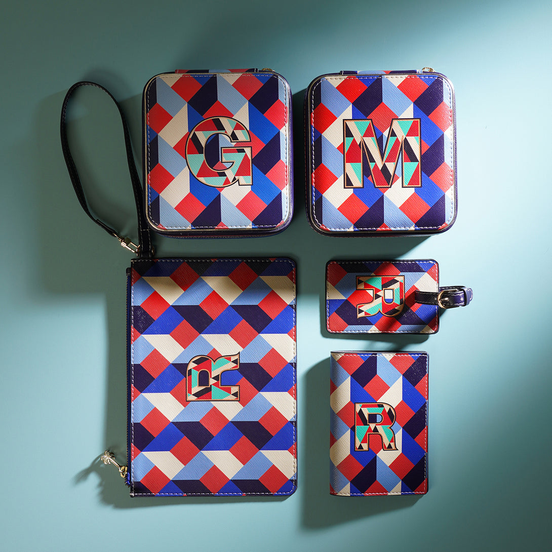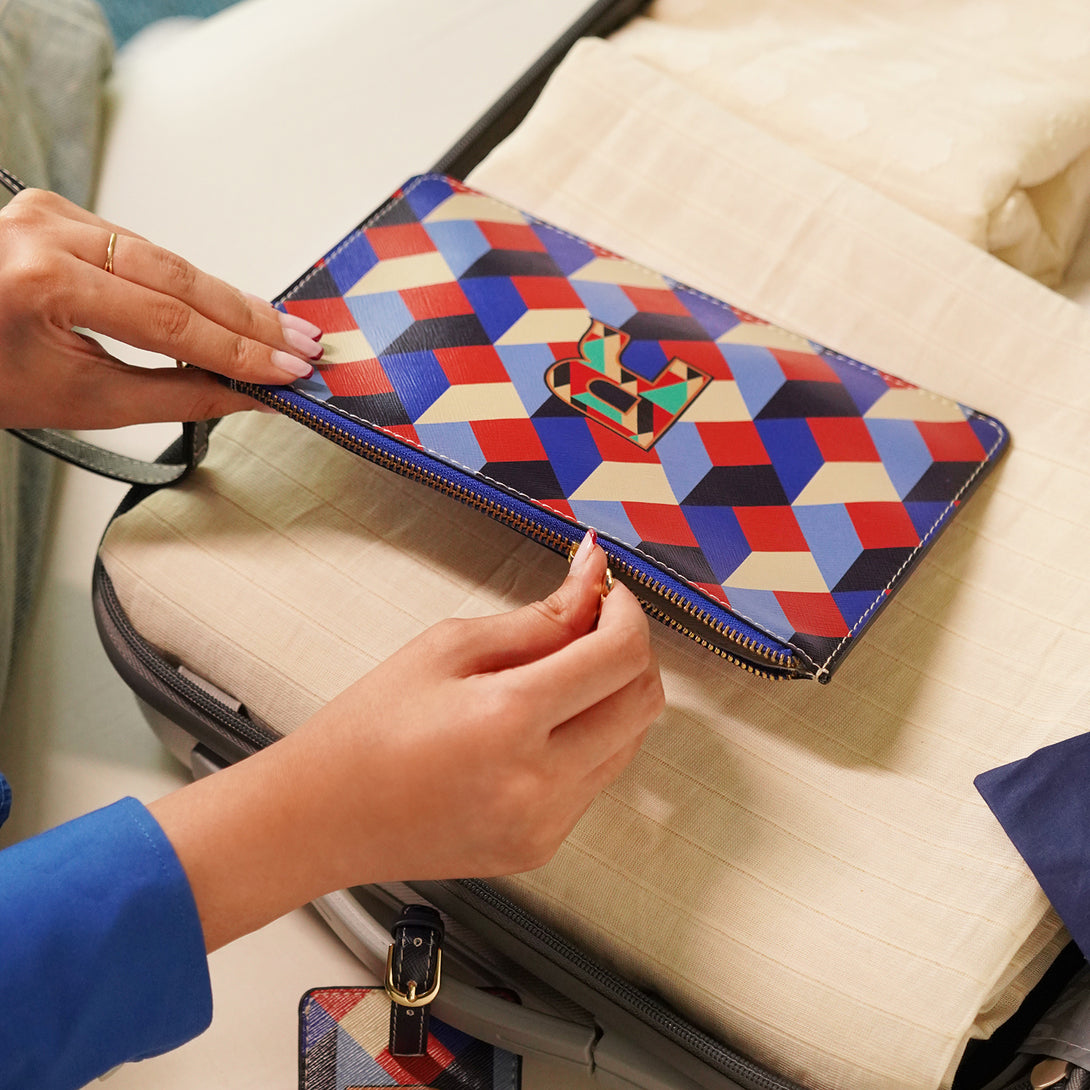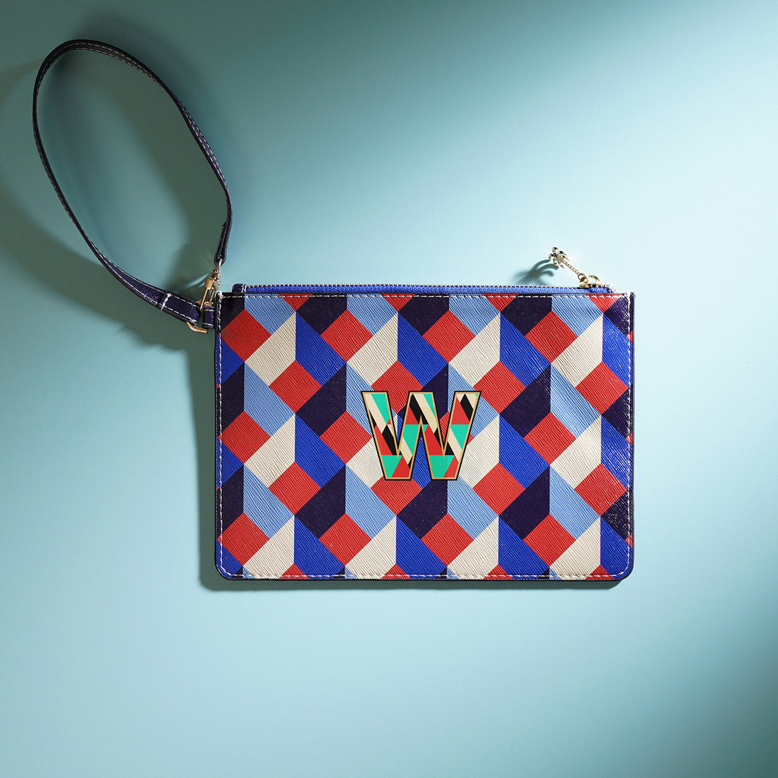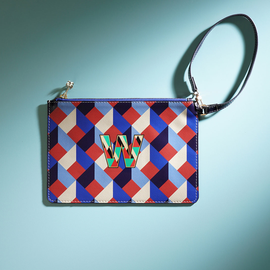 Sleek and versatile, the blue and peach 'W' flat travel pouch keeps your essentials organized with effortless style. Its bold design and compact form make it the perfect companion for every journey, near or far.
