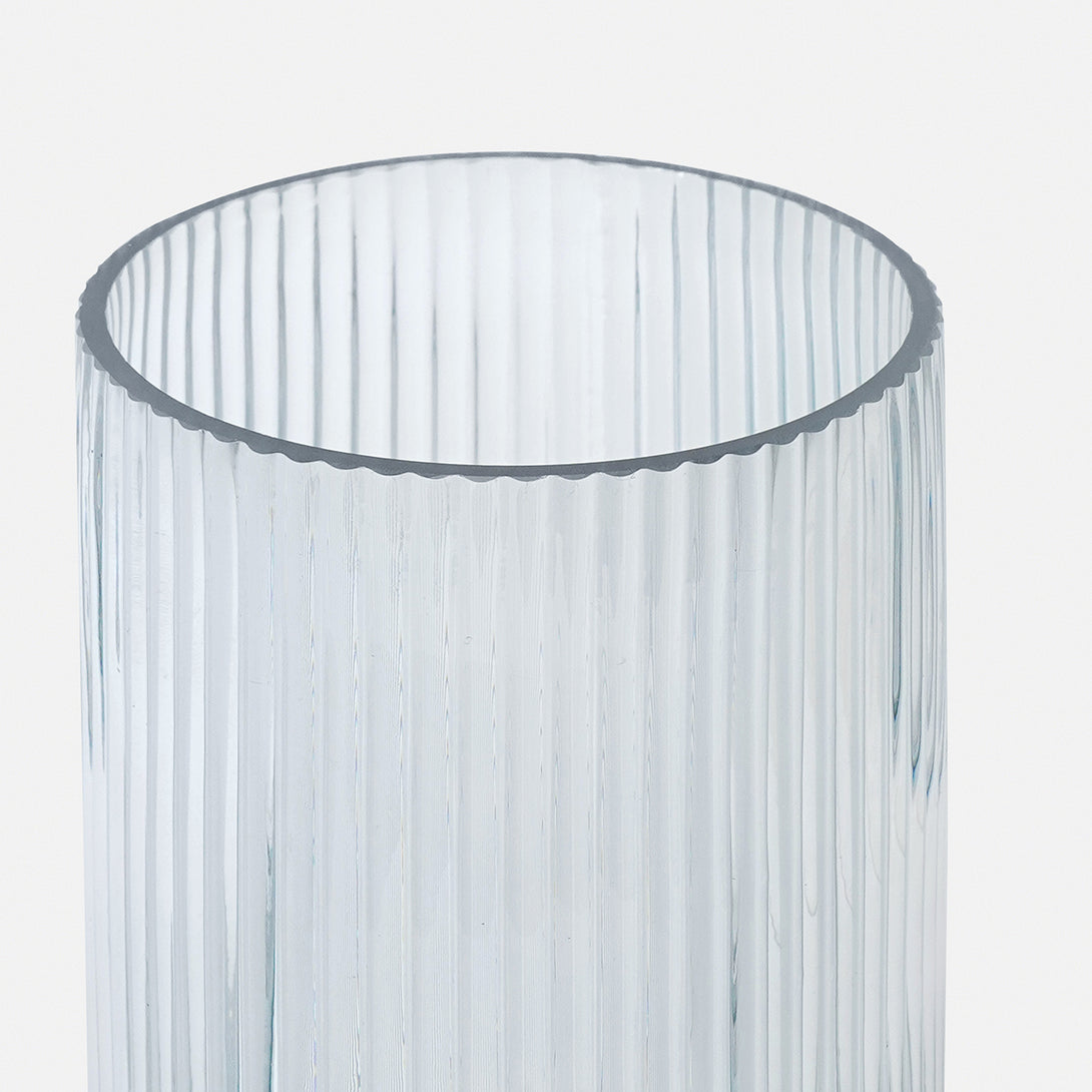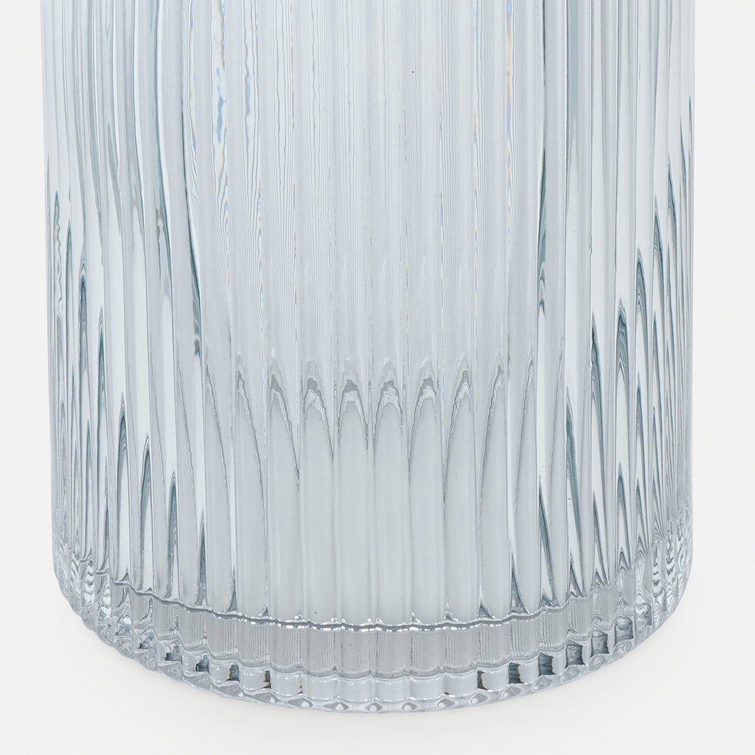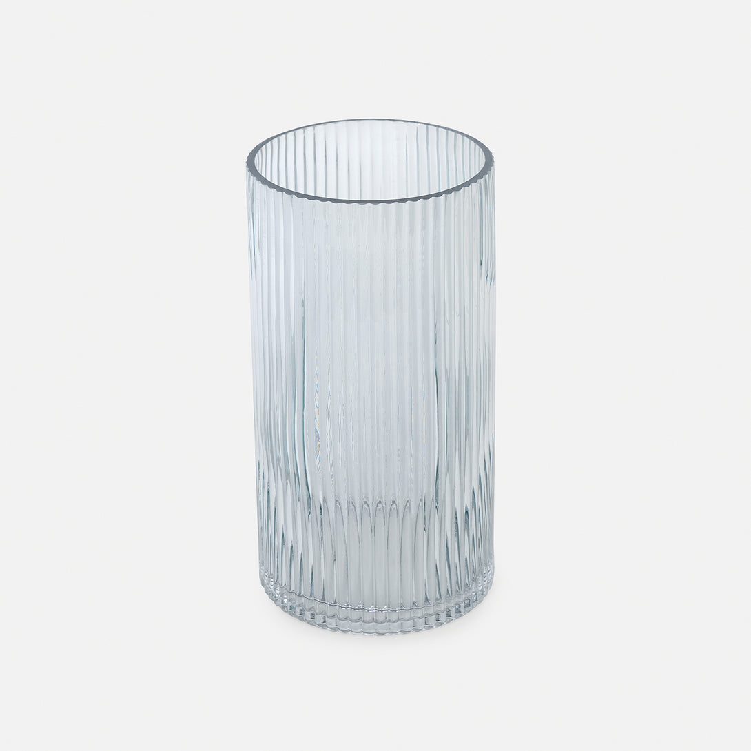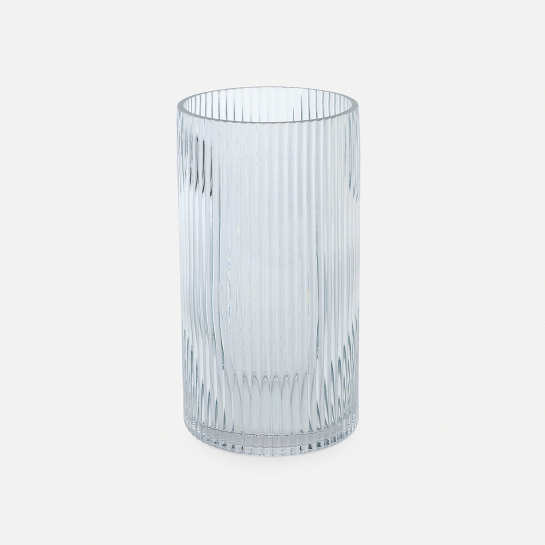A sleek, ribbed straight glass vase perfect for showcasing your favorite flowers with elegant simplicity. Its timeless design adds a touch of sophistication to any room or event décor.