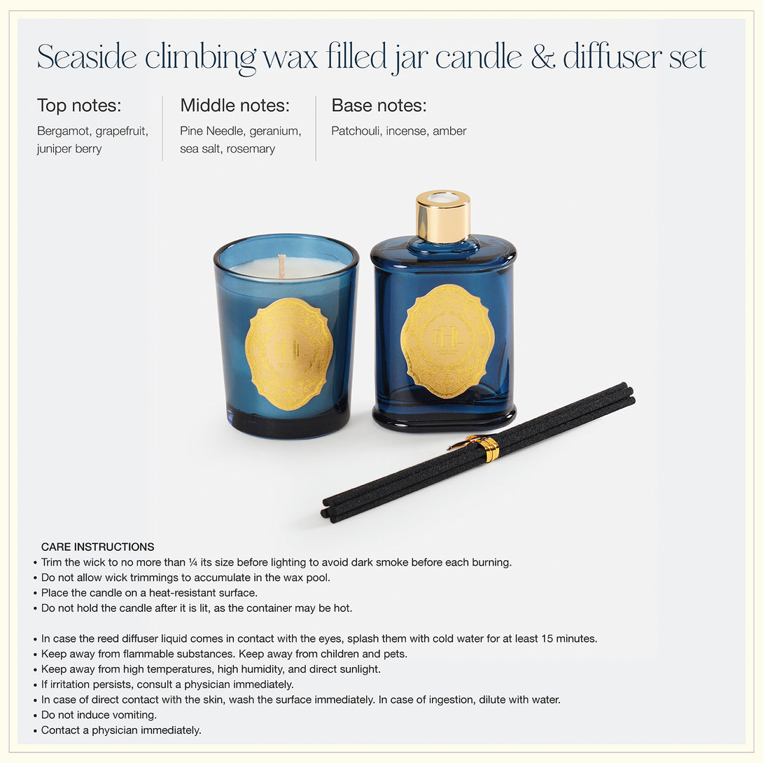 Blue Seaside Climbing Wax Filled Jar Candle & Diffuser set