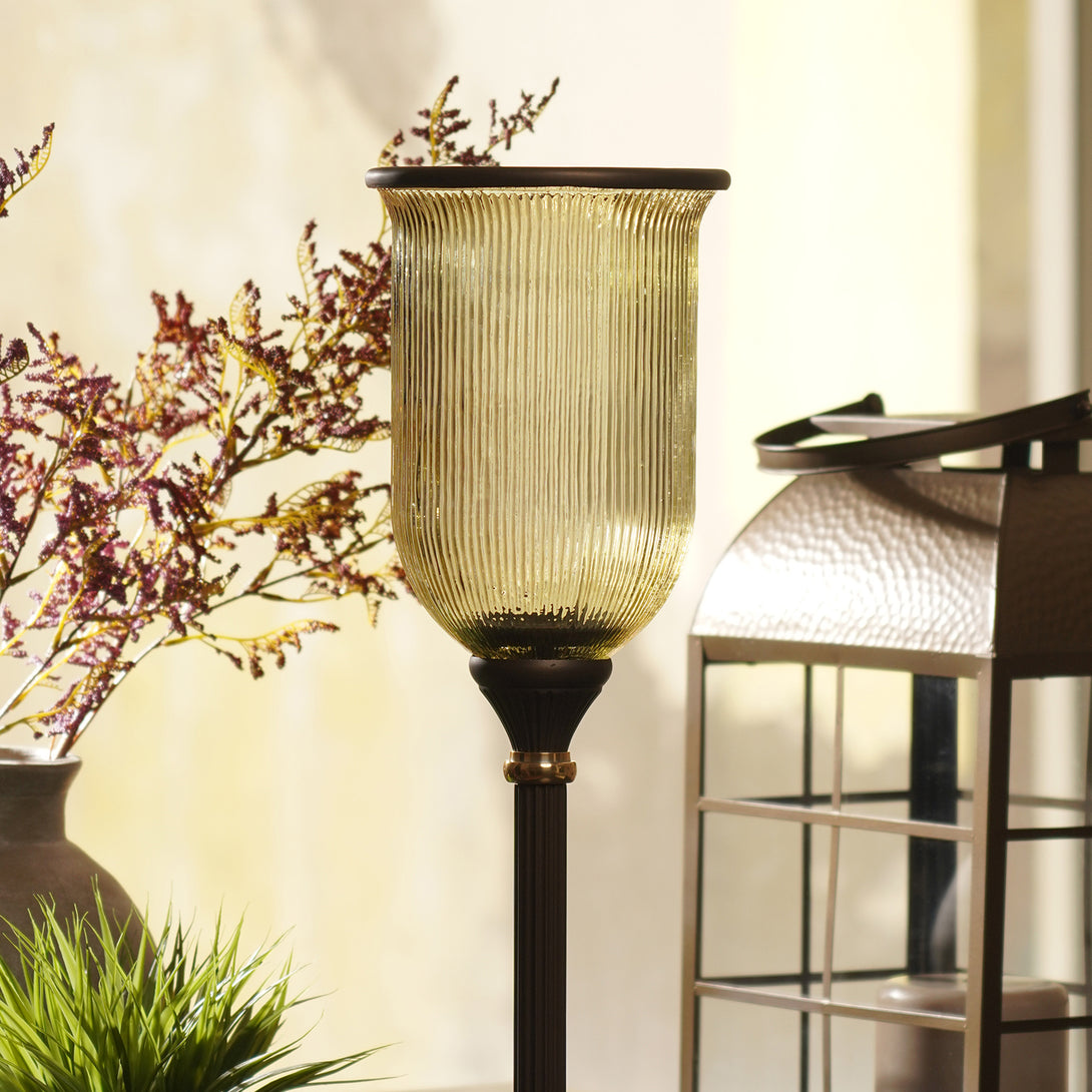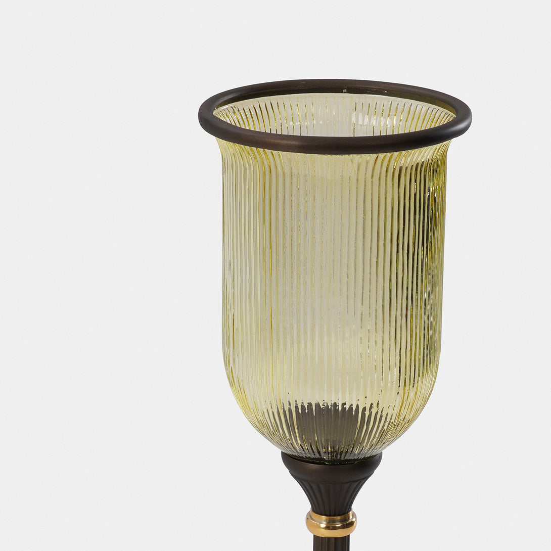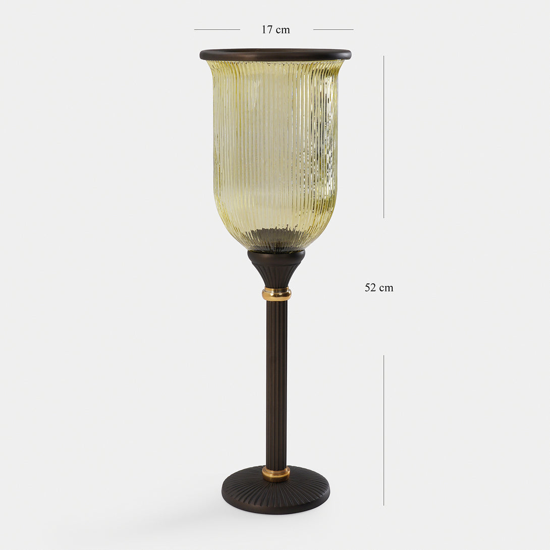 This antique finish ribbed hurricane is a metallic accent that exudes elegance and modern sophistication. Perfect for creating a refined ambience with pillar candles in any living space.
