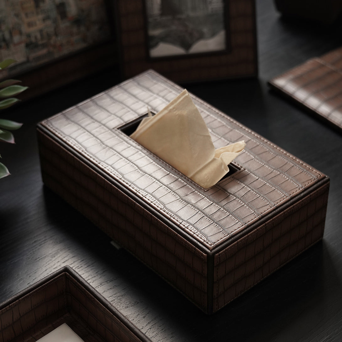 Give your everyday tissue box a miss for this chic brown tissue box cover. Crafted in faux leather, it is equal parts functional and stylish.Â