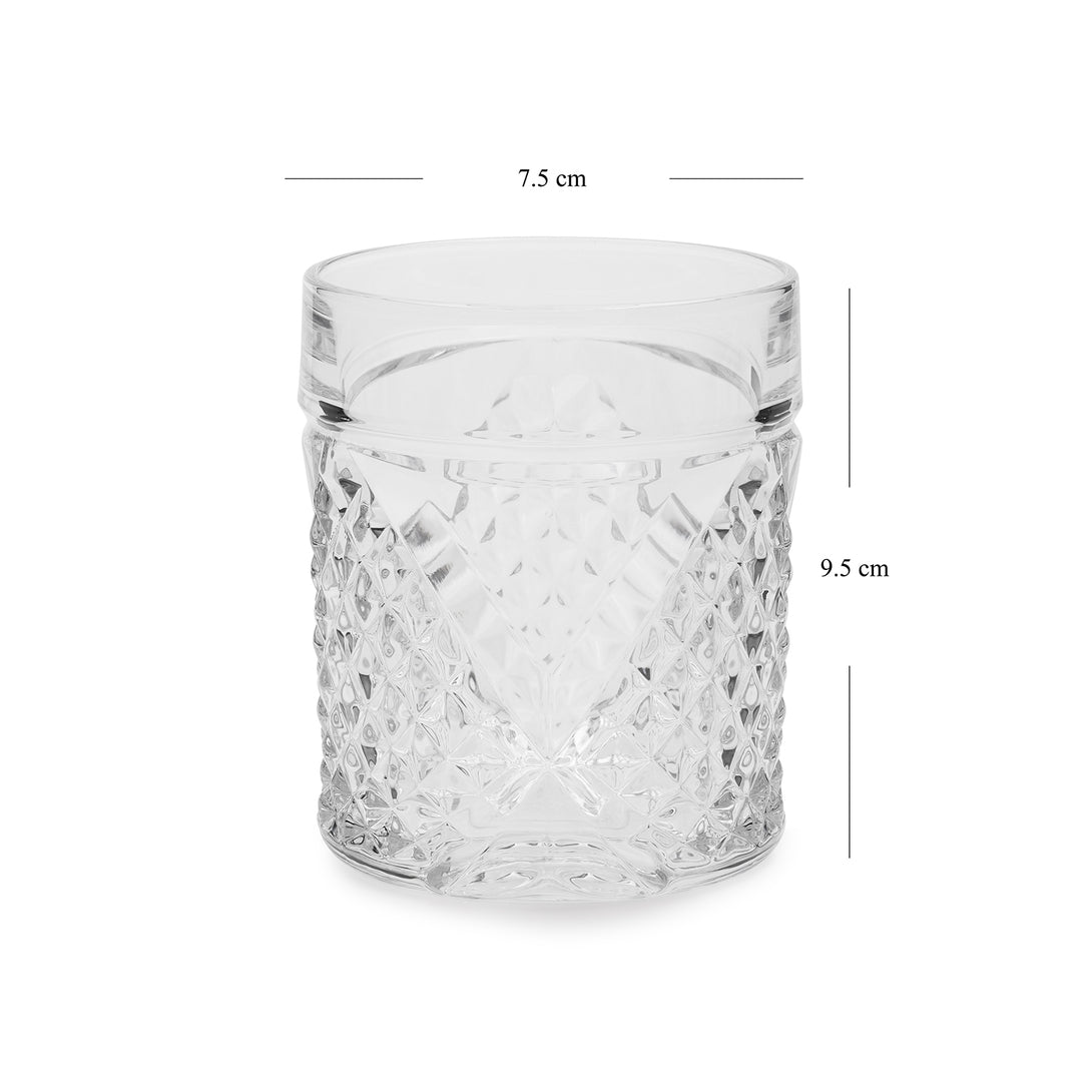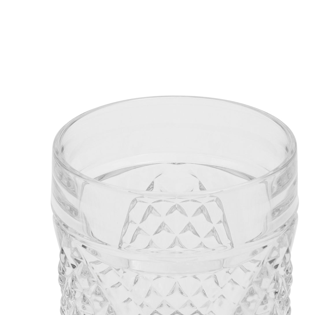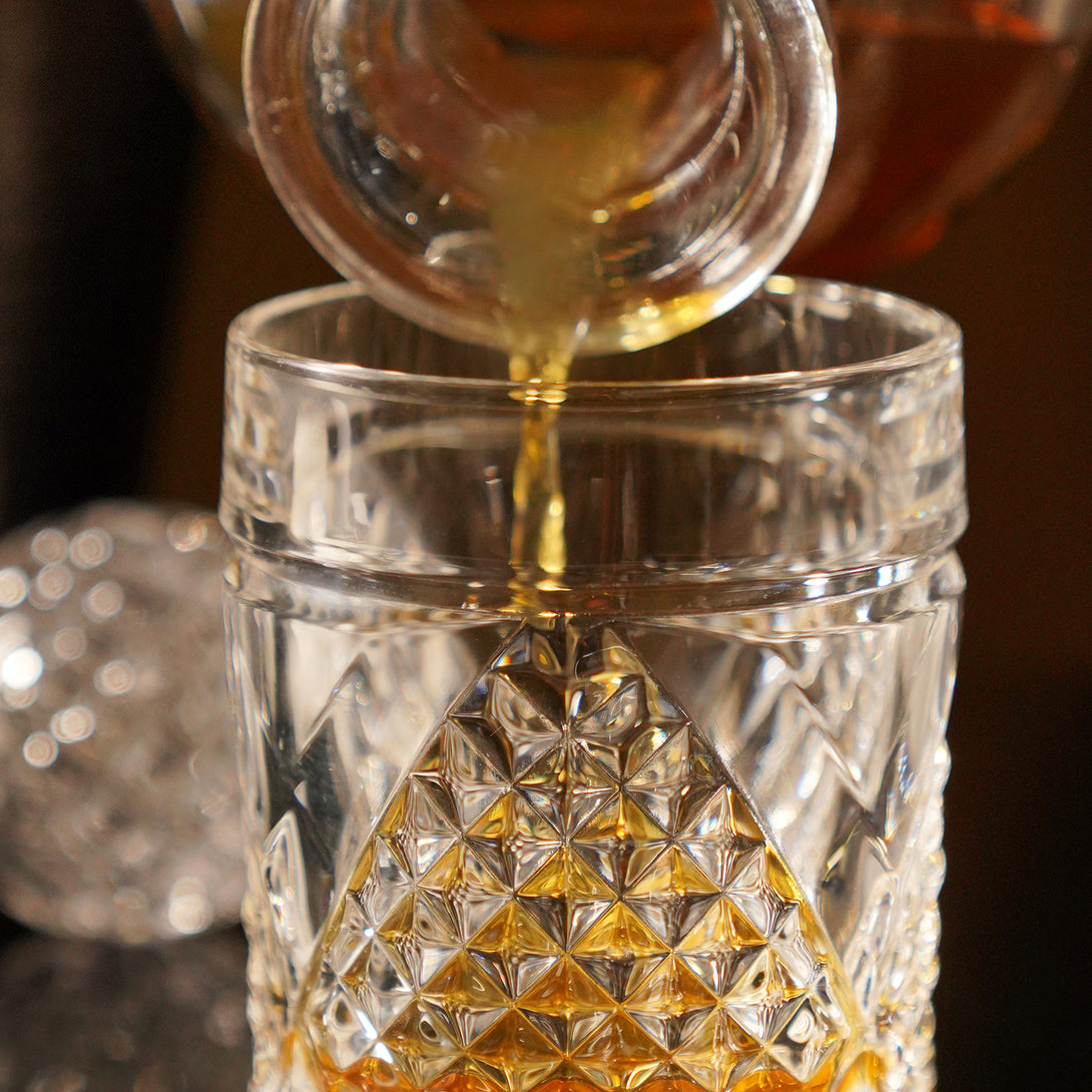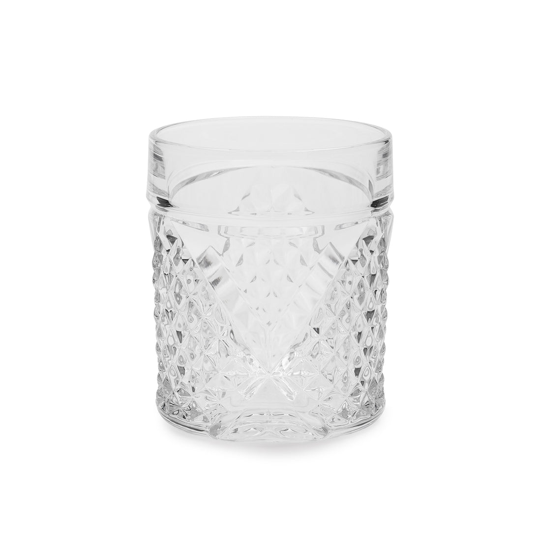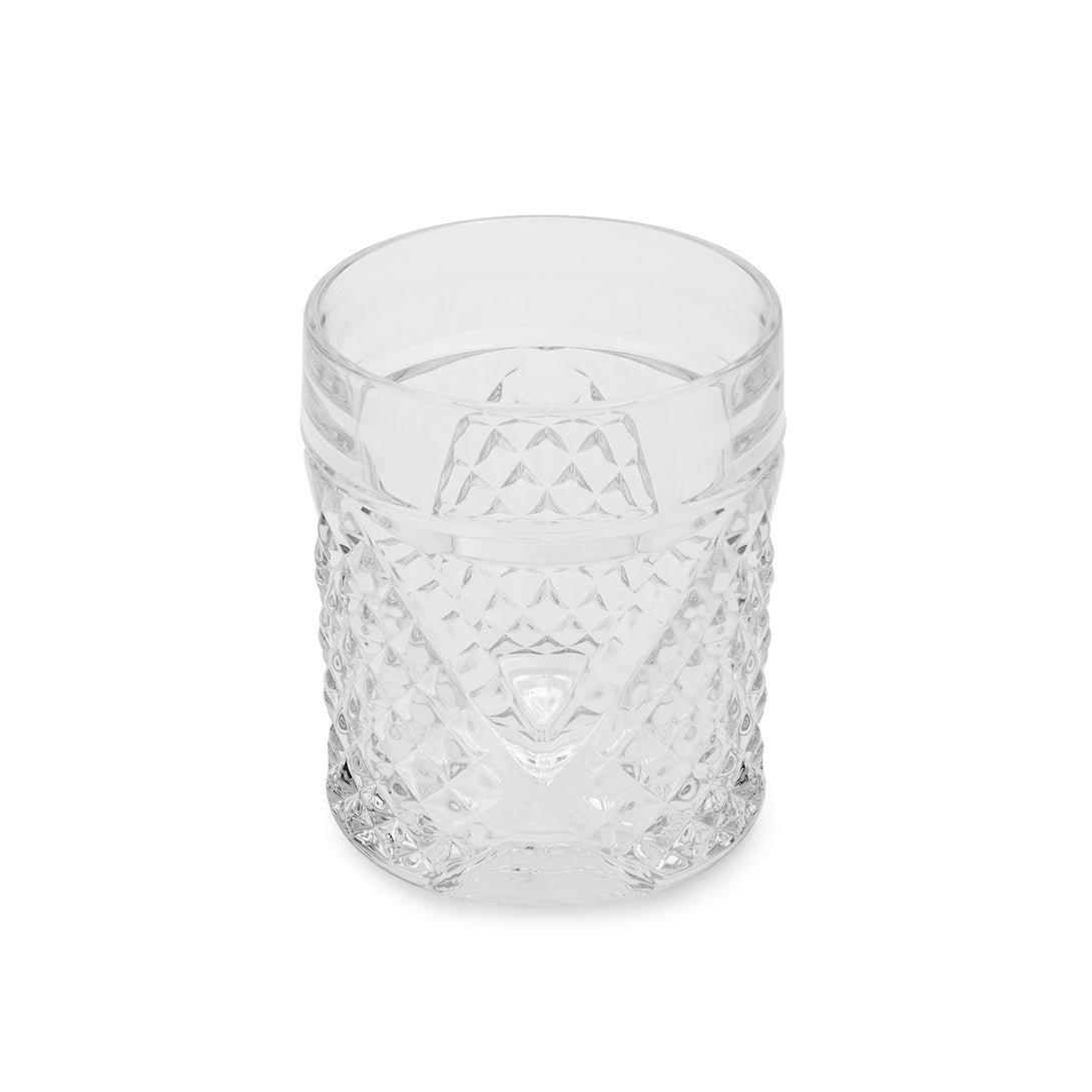Sip in style with this clear-cut glass whiskey tumbler, featuring intricate facets that catch the light beautifully. Its classic design and sturdy feel make it a refined choice for enjoying your favourite spirits.