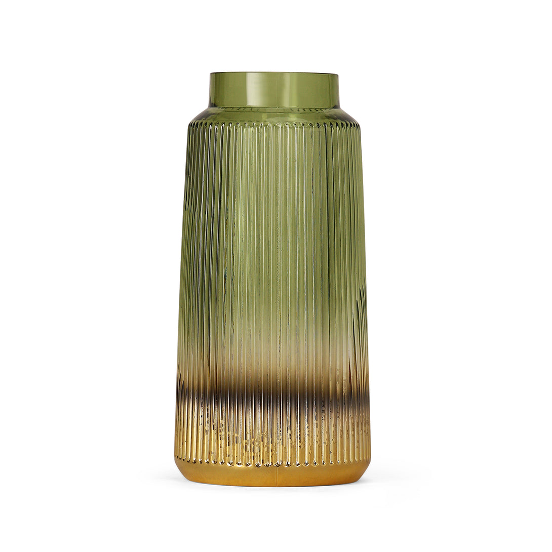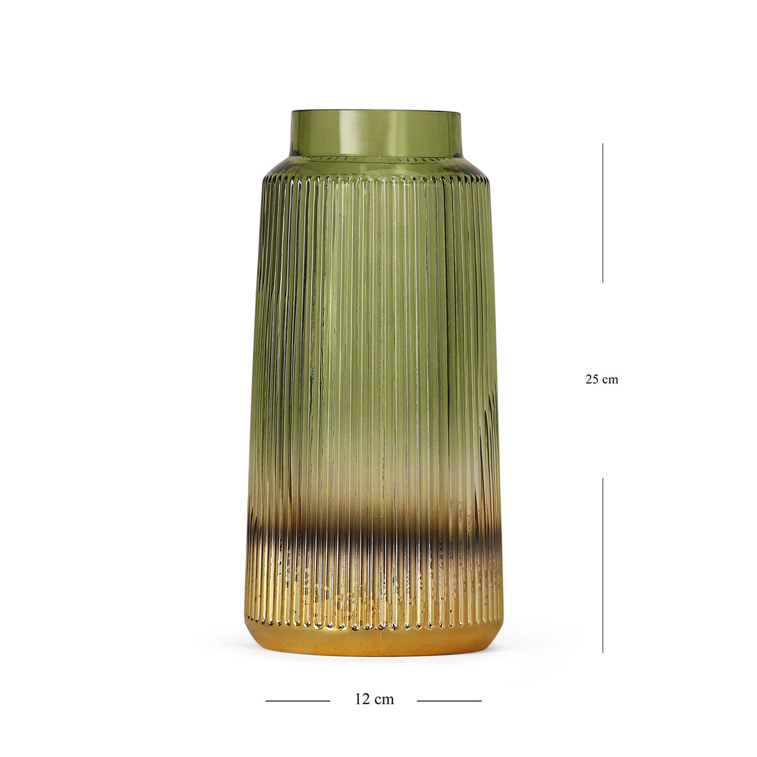 Dual Tone Green Ribbed Glass Vase