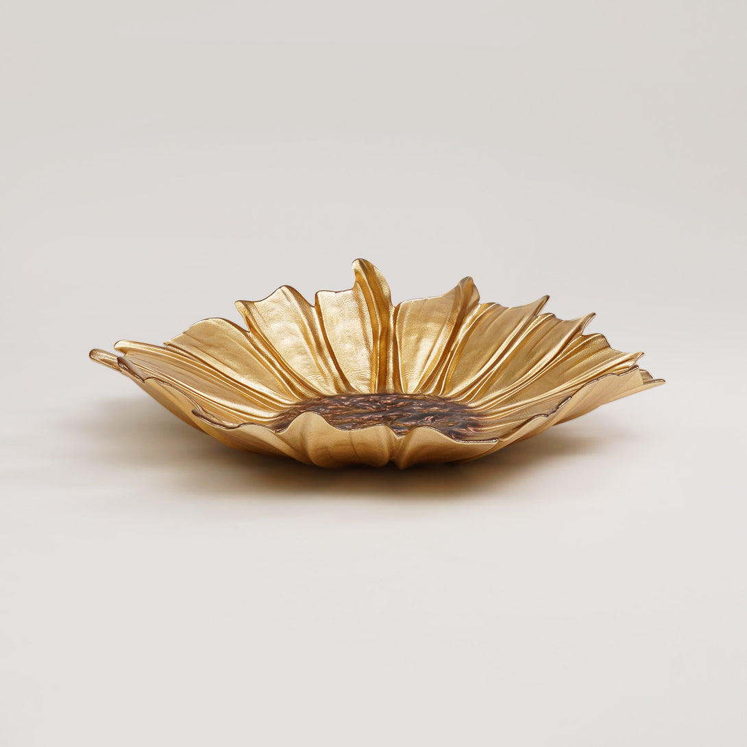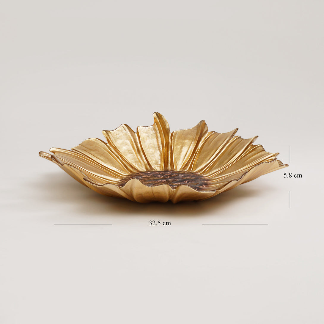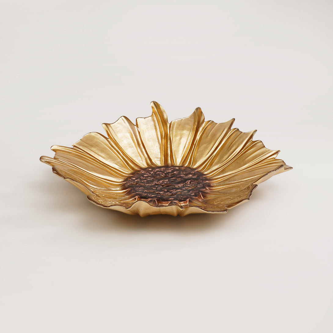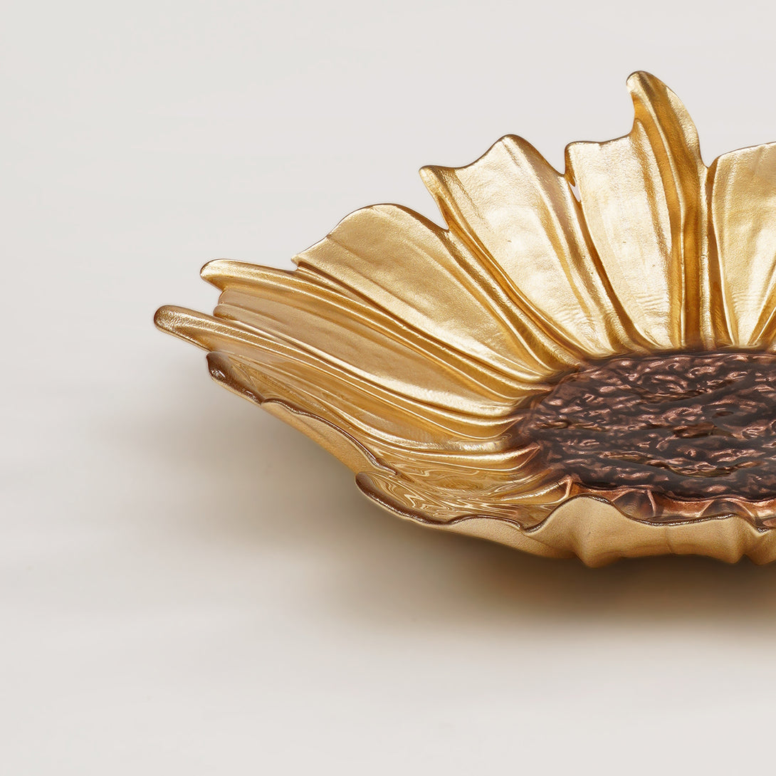 Serve in style with this gold and brown flower-shaped serving platter. A stunning blend of elegance and charm for any table.