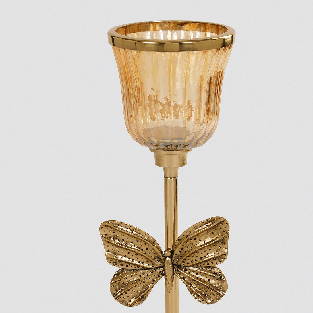Gold & Glass Butterfly Inspired Candle Holder - Large