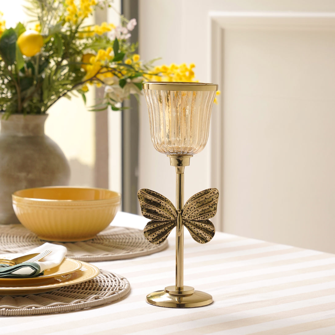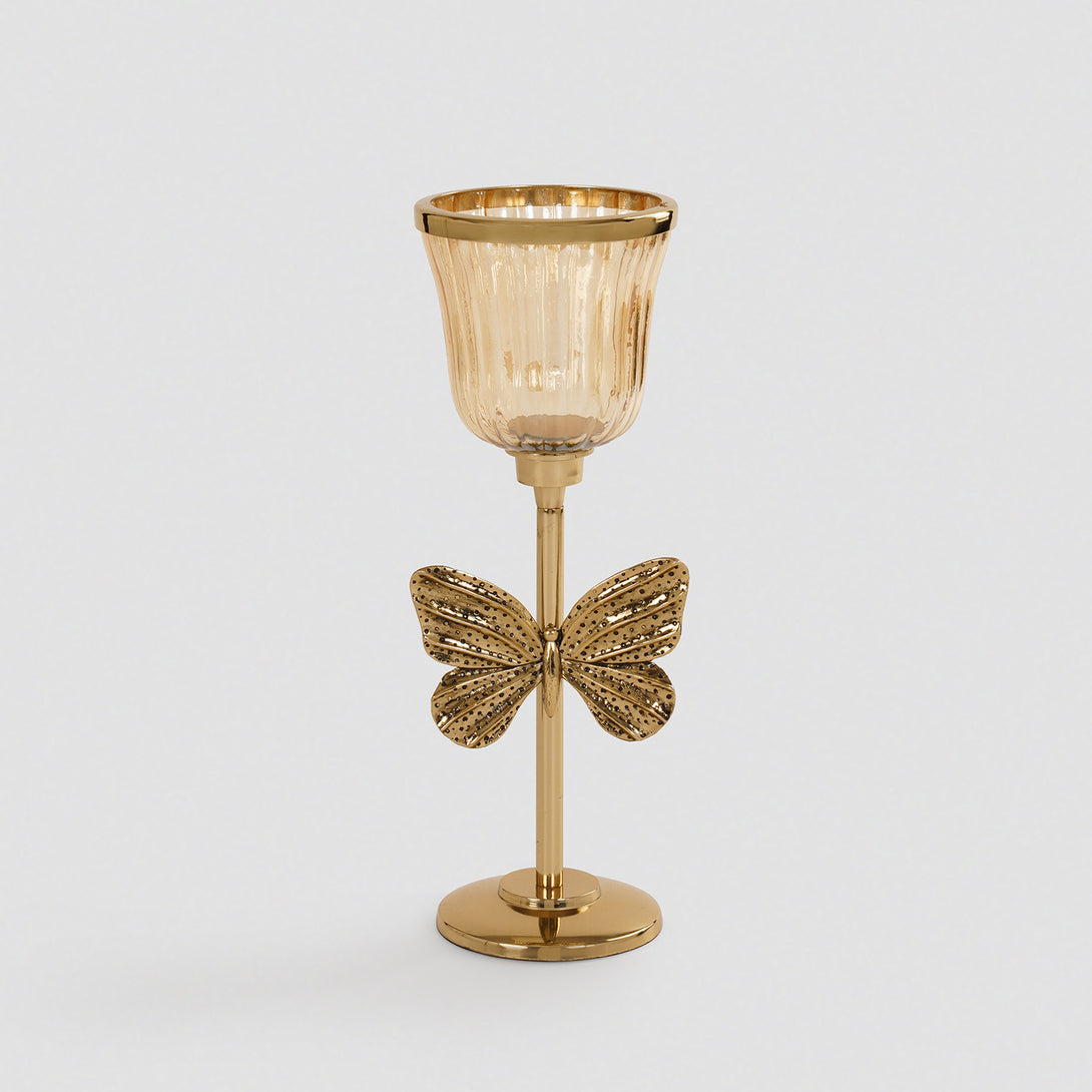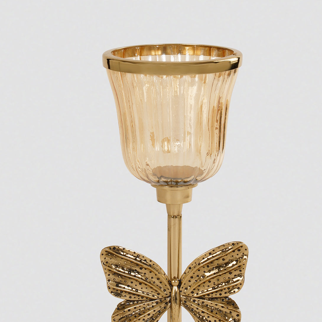 Gold & Glass Butterfly Inspired Candle Holder - Small