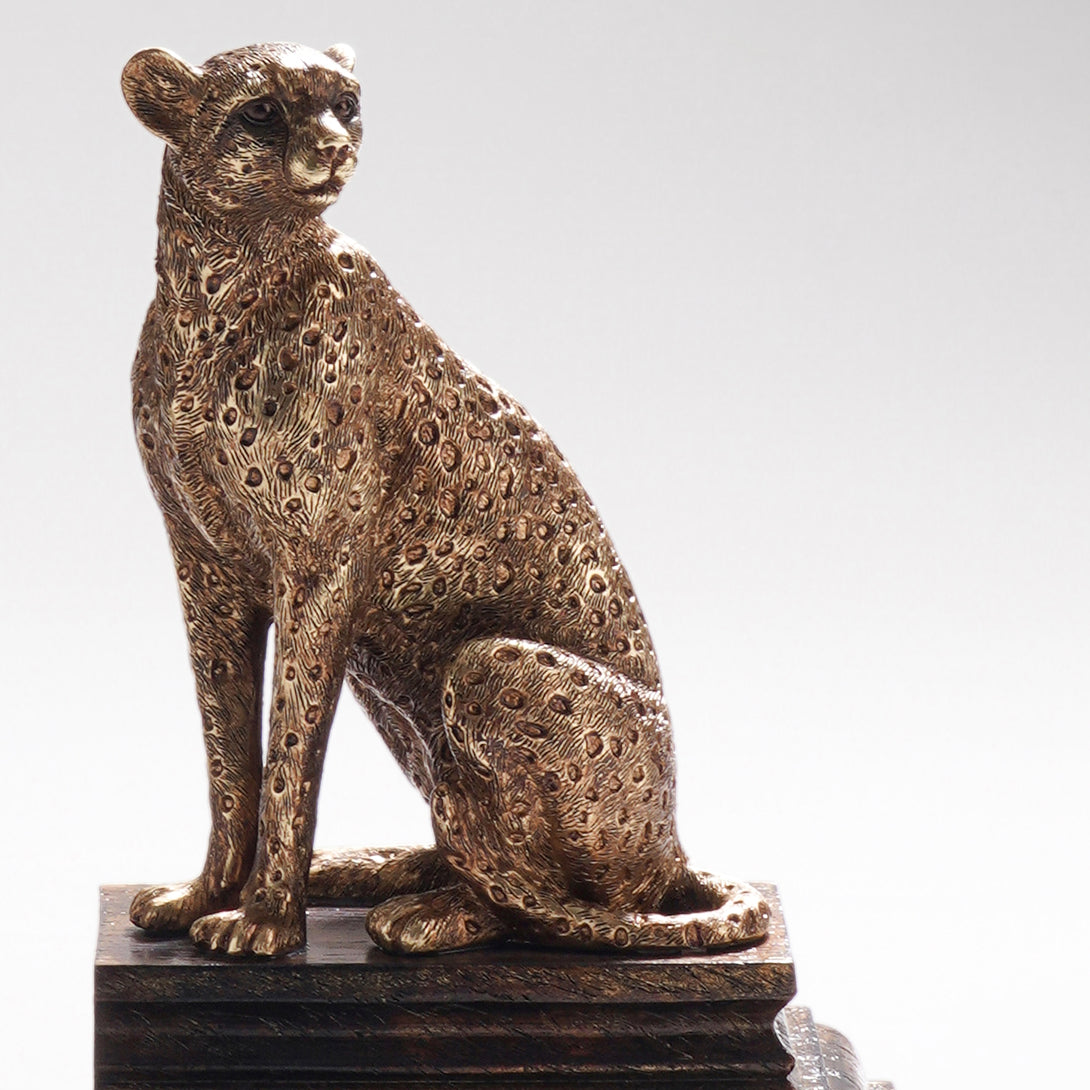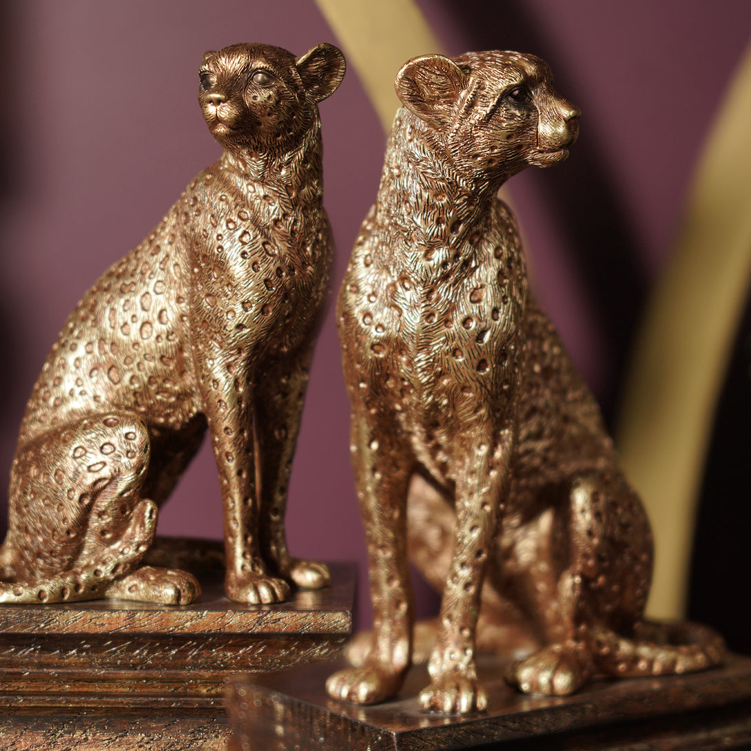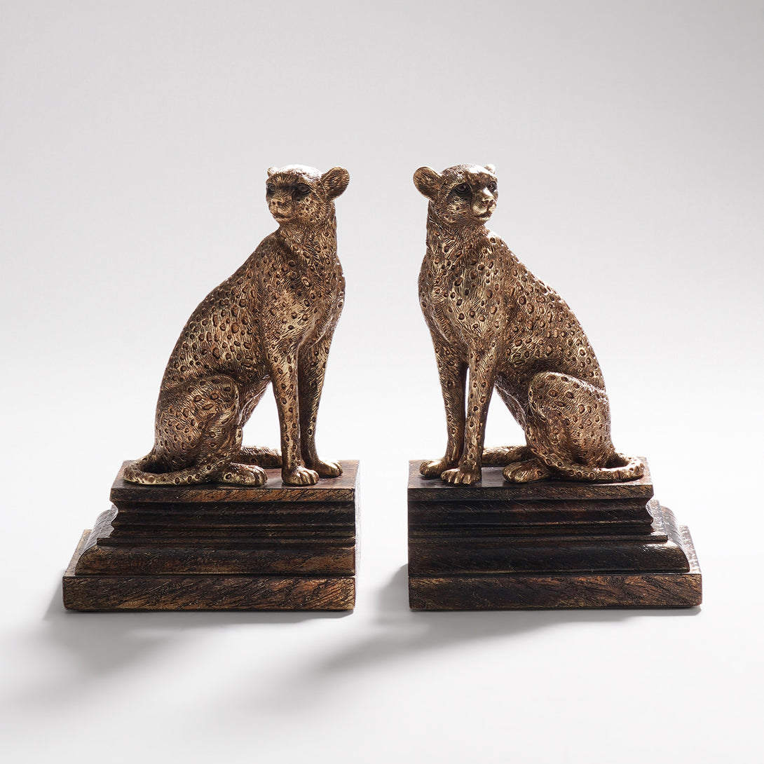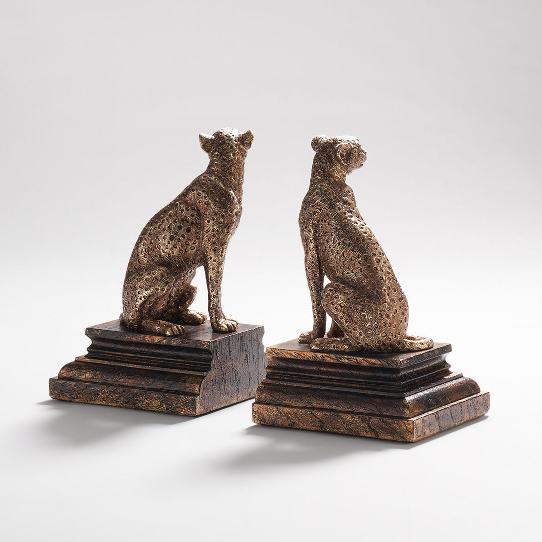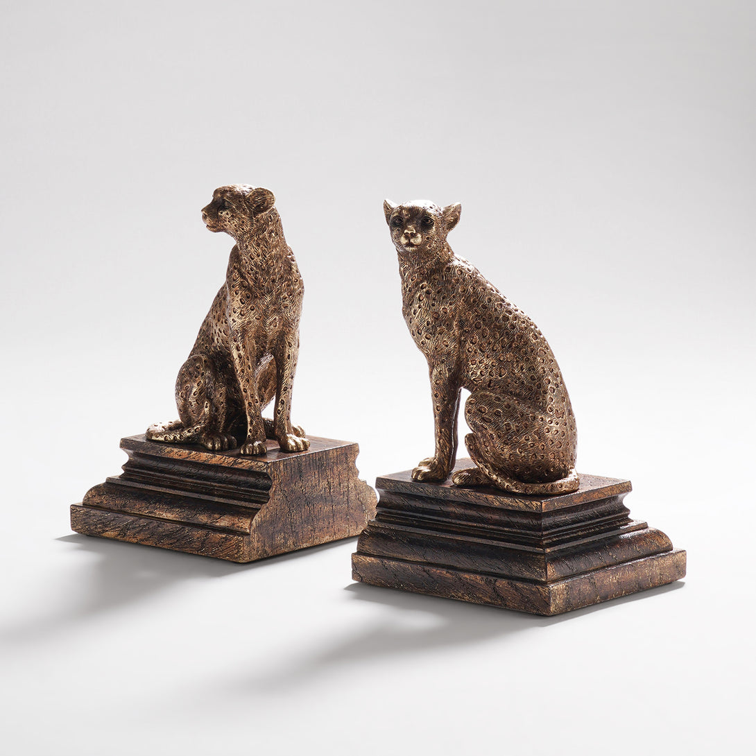 Add a regal safari touch to your decor with this pair of antique gold cheetah figurines on elegant pedestal bases. Intricately crafted with lifelike textures and poised postures, perfect as bookends or luxe console accents.
