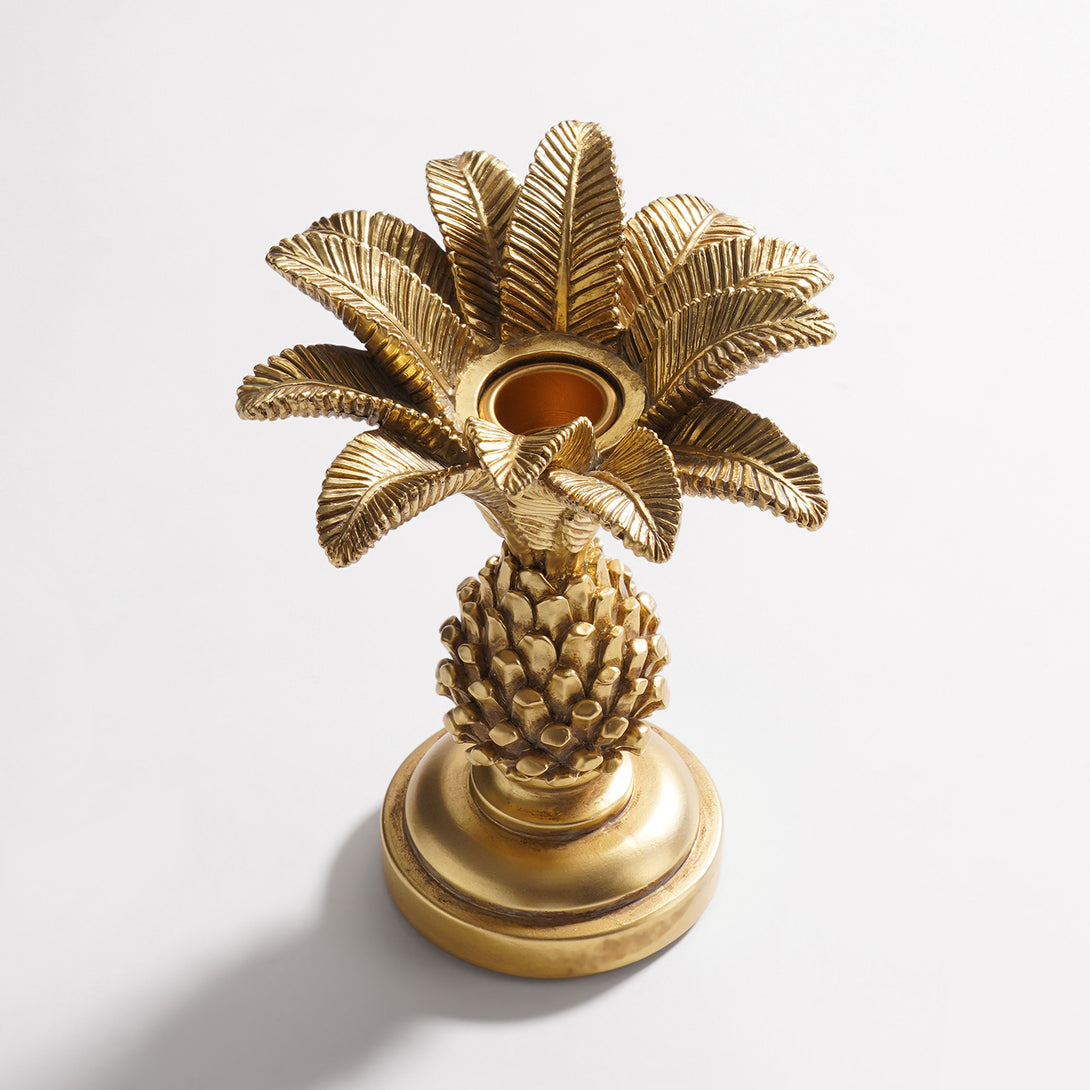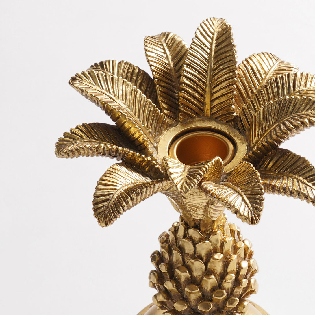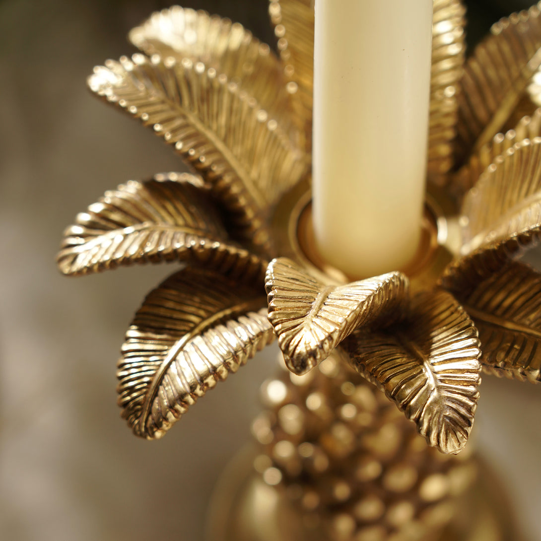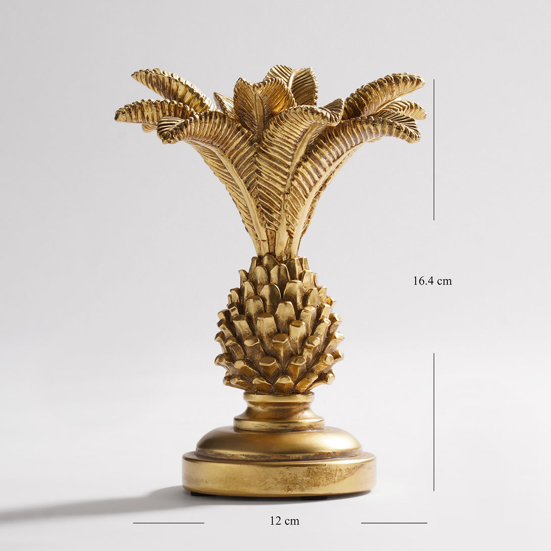 Infuse regal charm into your tablescape with this antique gold pineapple taper candle holder, symbolising warmth and welcome. Beautifully crafted with intricate leaf detailing, it adds a luxe tropical elegance to festive and dinner settings.