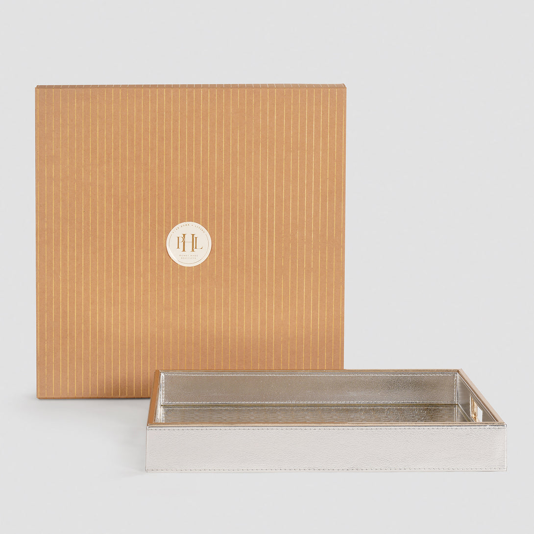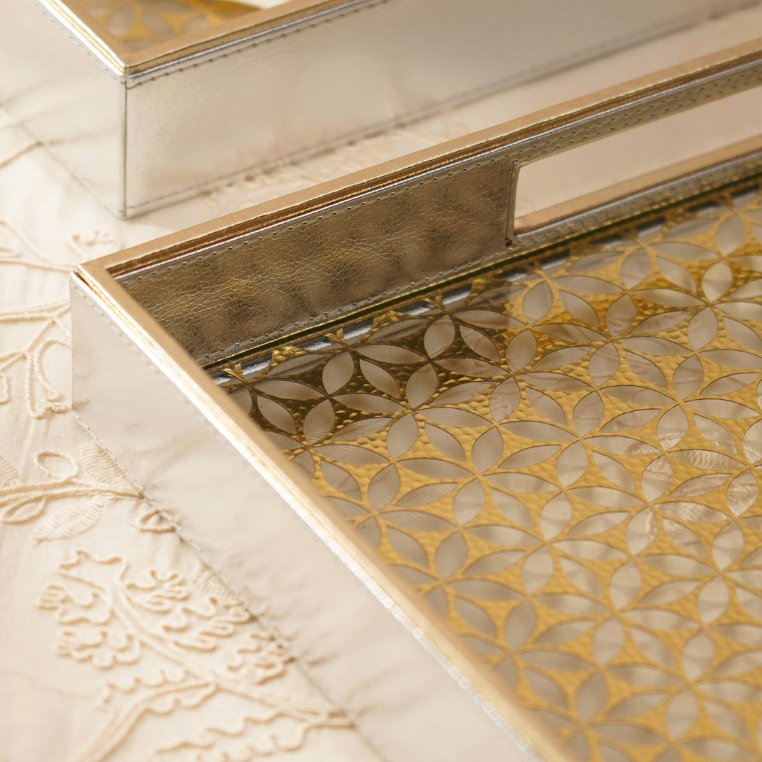 Gold & Silver Lazer Cut Faux Leather Tray - Large