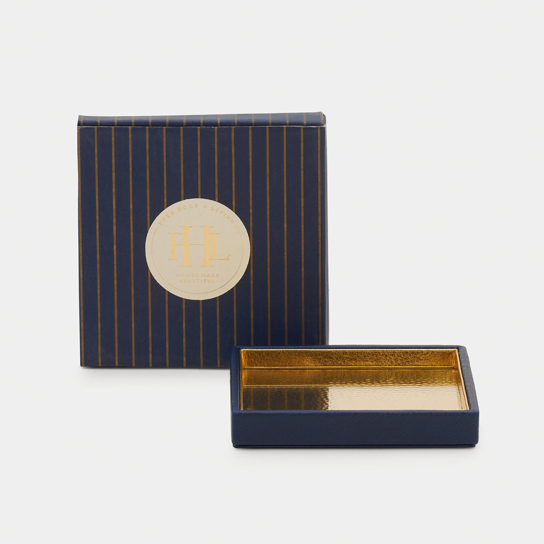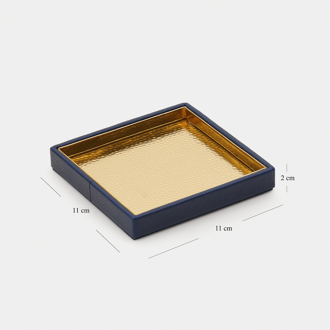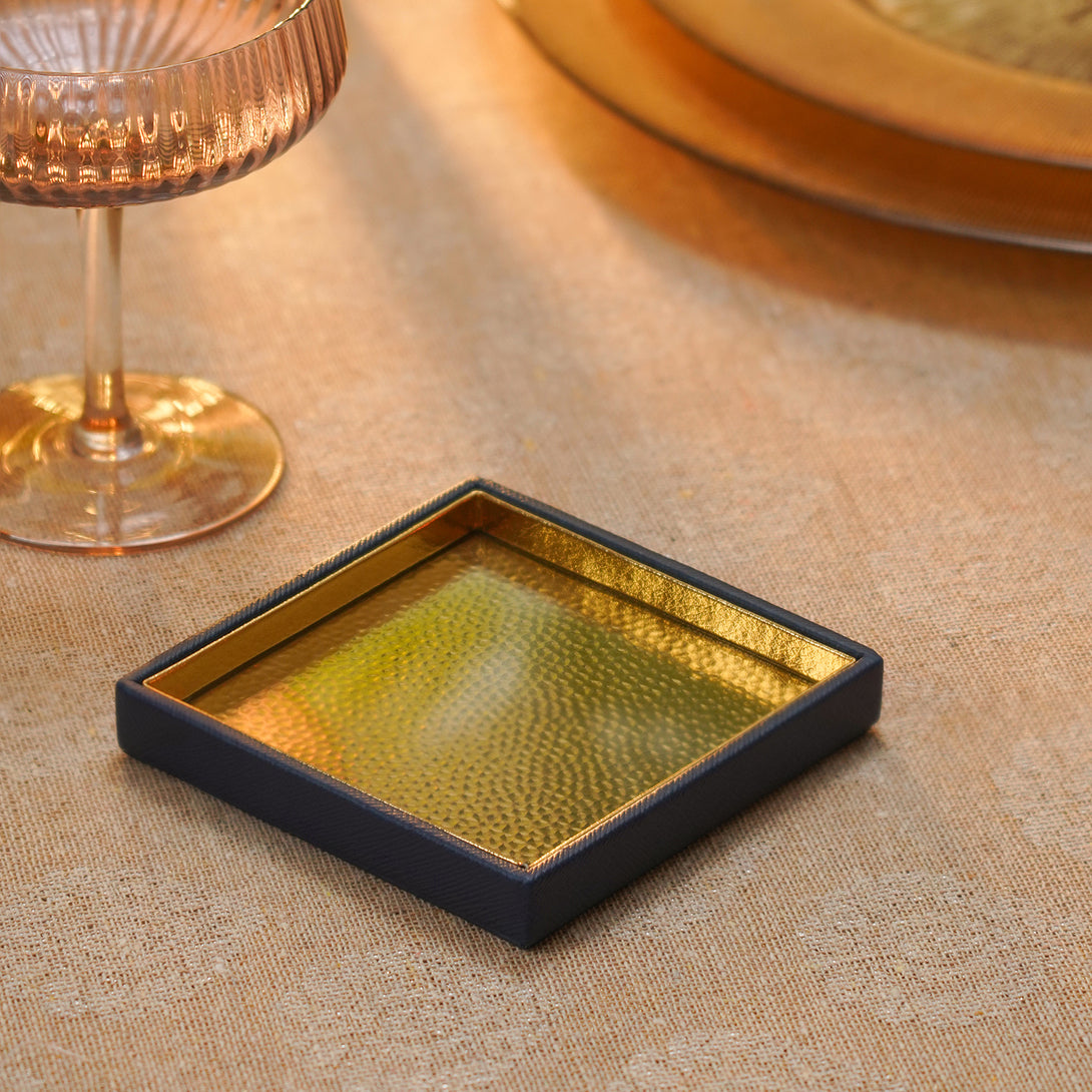 This navy and gold hammered photo coaster is a luxurious addition to your table. It adds a refined, contemporary charm to desks, consoles, or side tables.