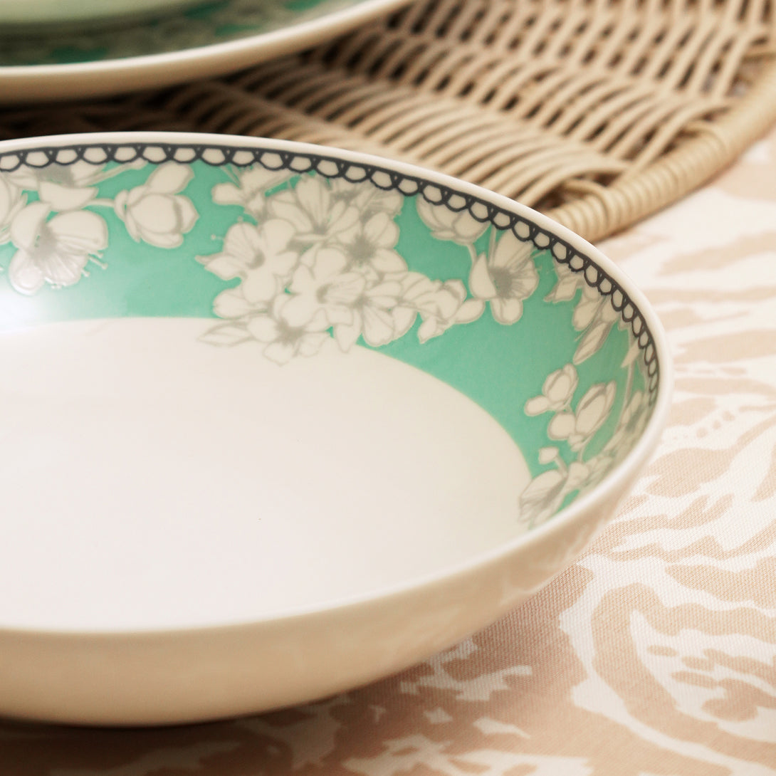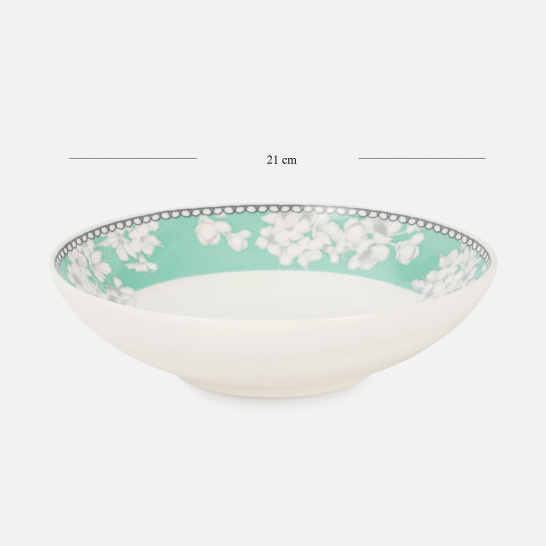 Add a touch of nature-inspired beauty to your dining experience with this green floral printed serving bowl. Crafted from high-quality ceramic, it features a captivating print perfect for both everyday meals and special occasions.