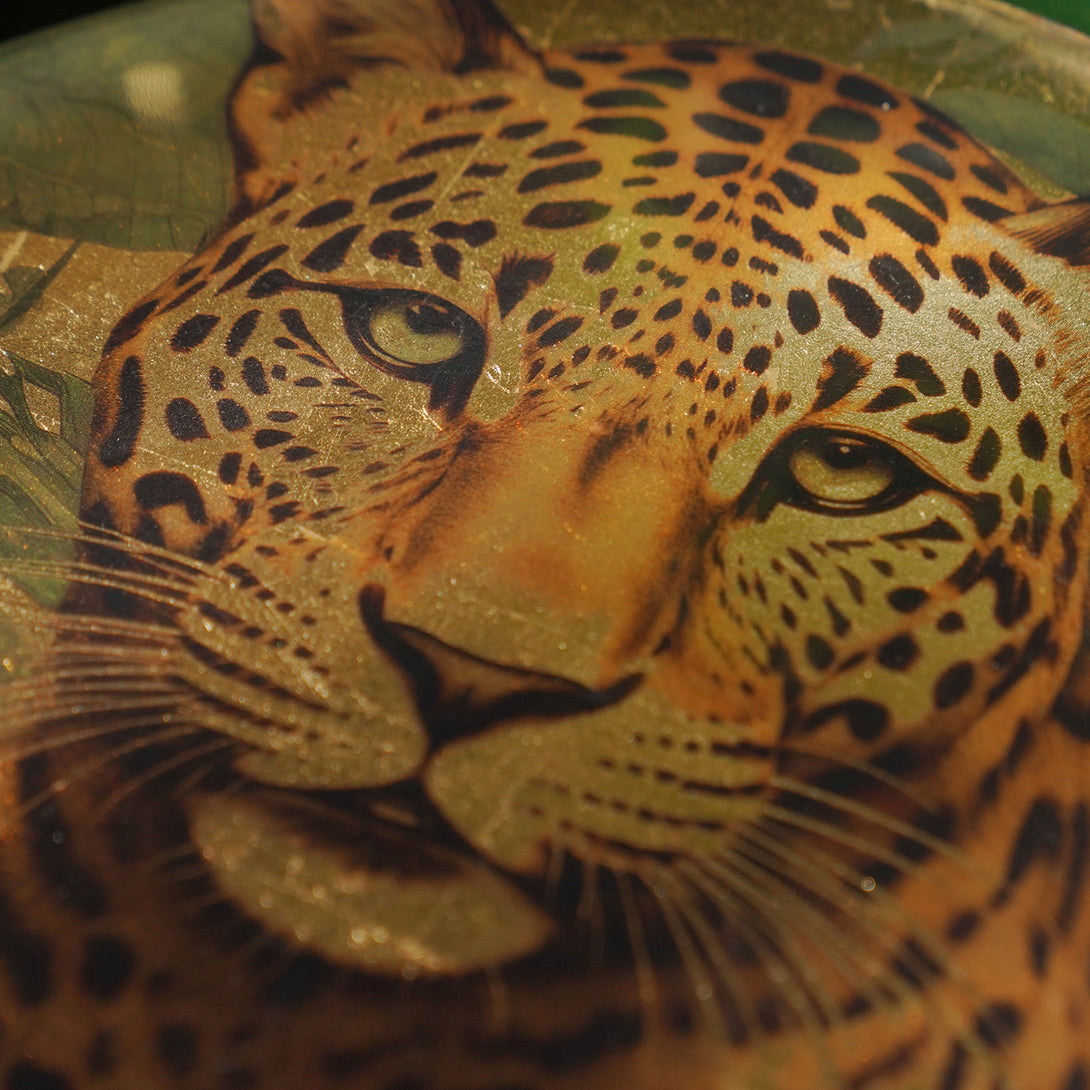 Make a bold statement with this green leopard print tray, featuring a striking jungle-inspired design. Perfect for serving or styling, it brings a wild touch of elegance to your home décor.