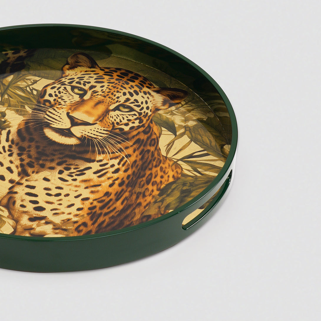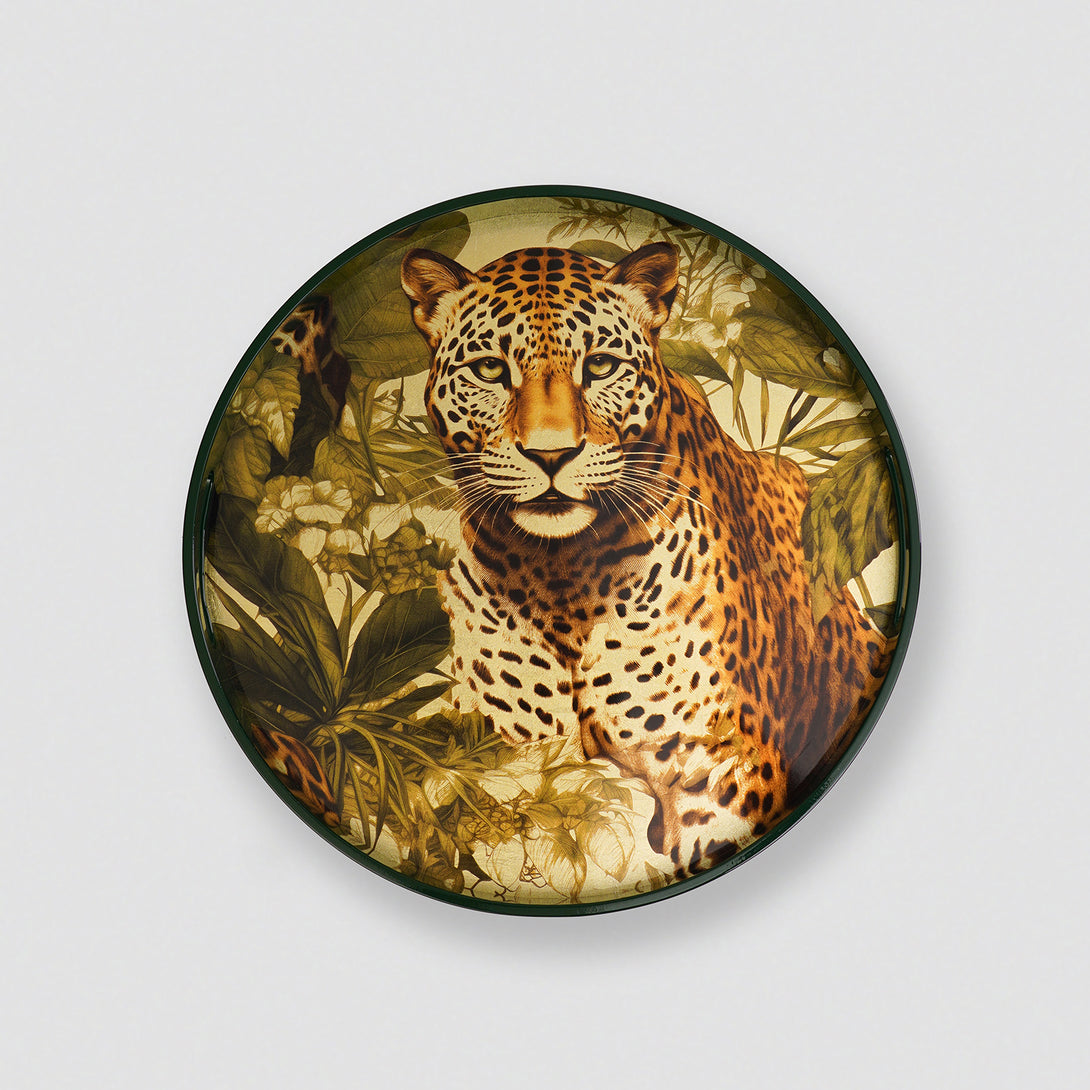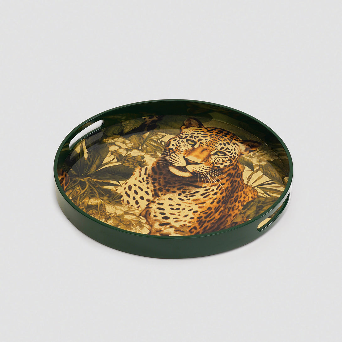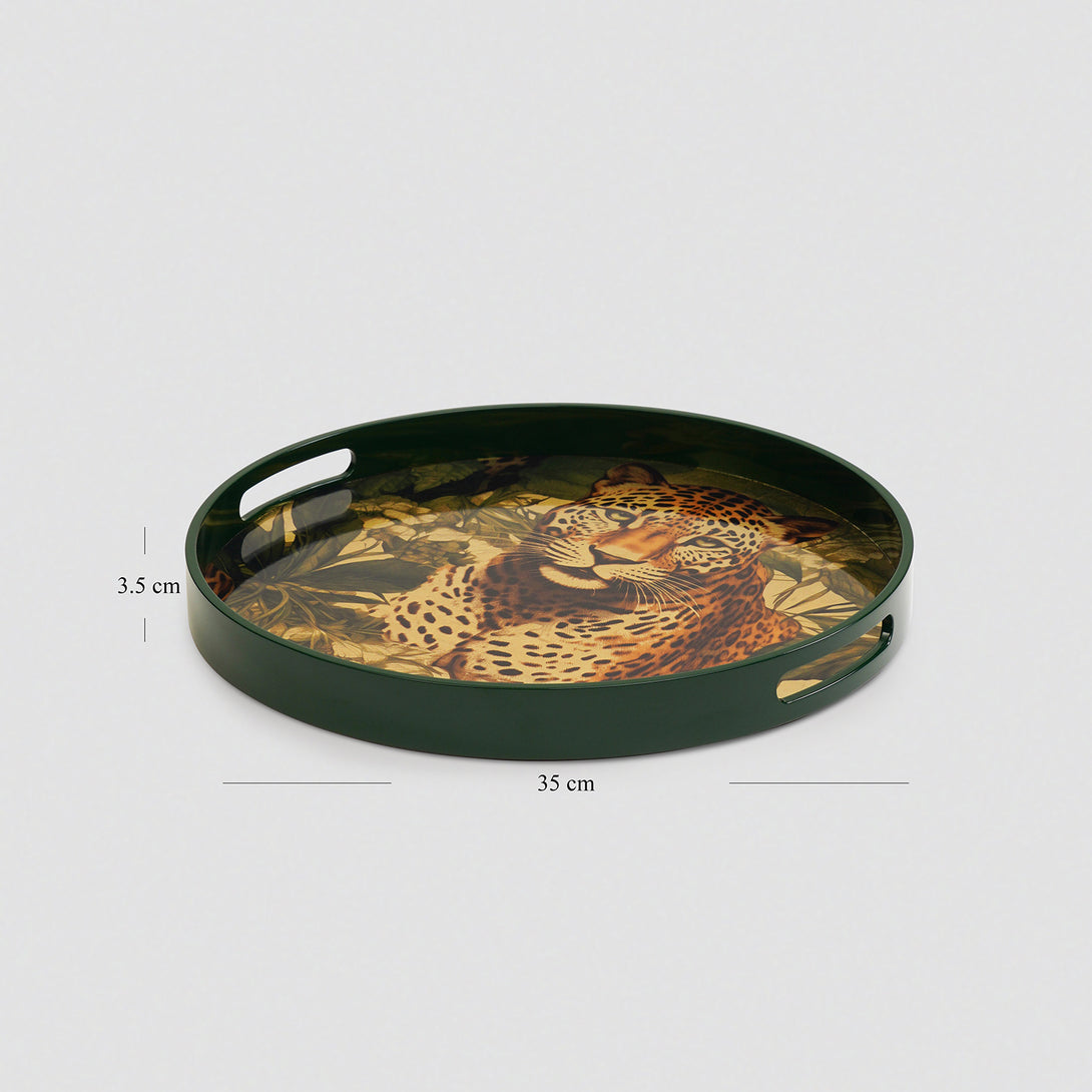 Green Leopard Print Round Tray