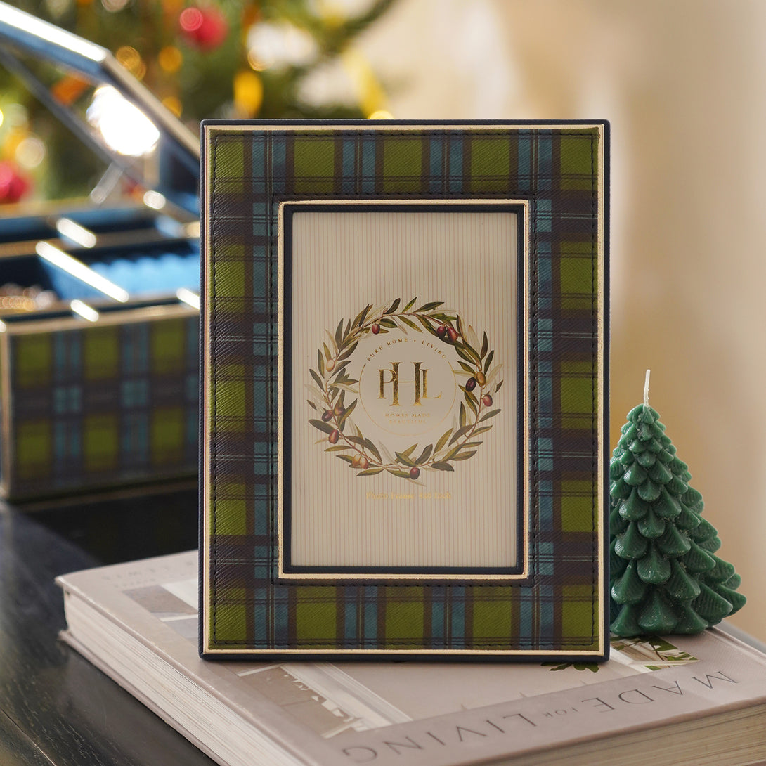 This green plaid frame blends classic charm with a warm seasonal feel. Display your favourite Christmas moments in timeless style.