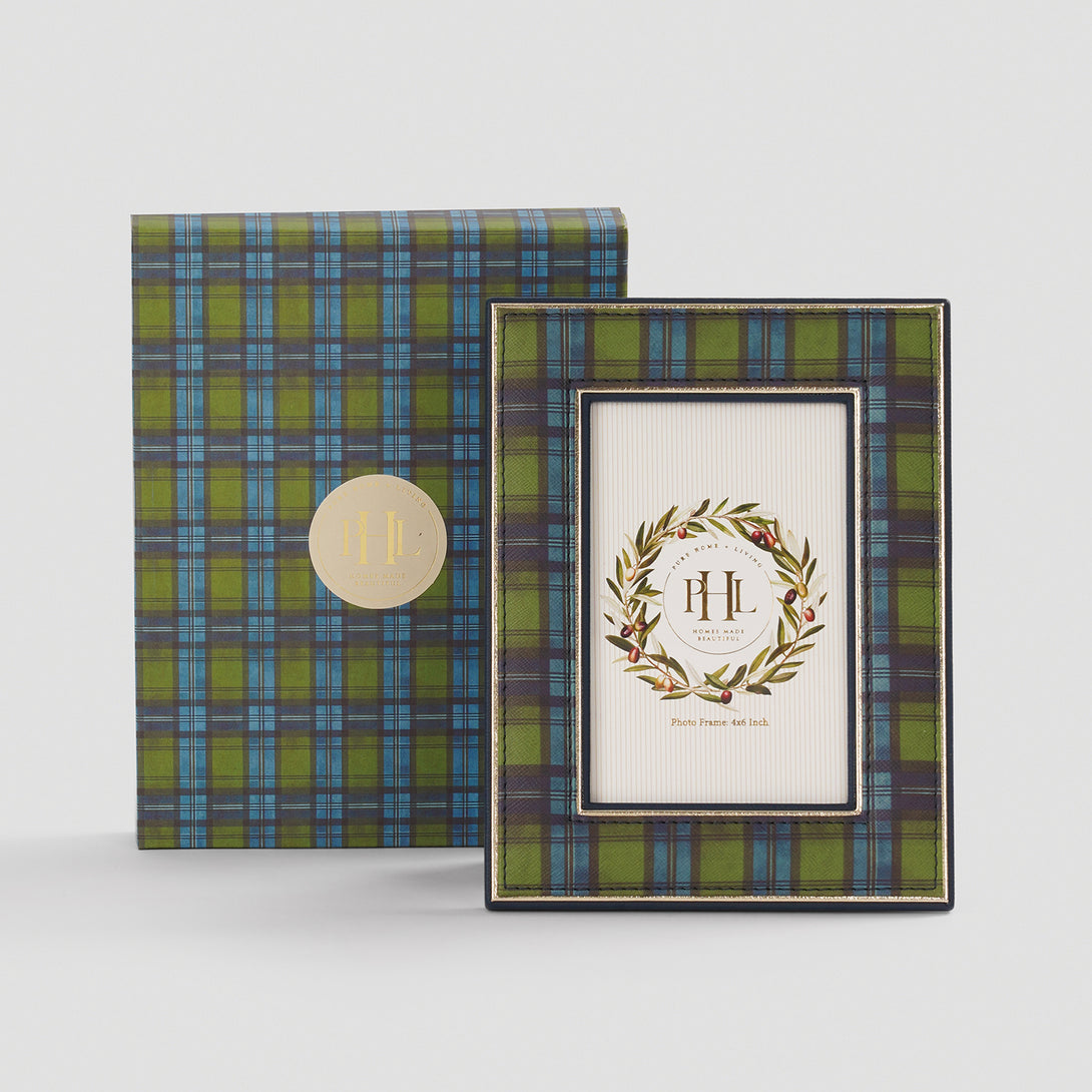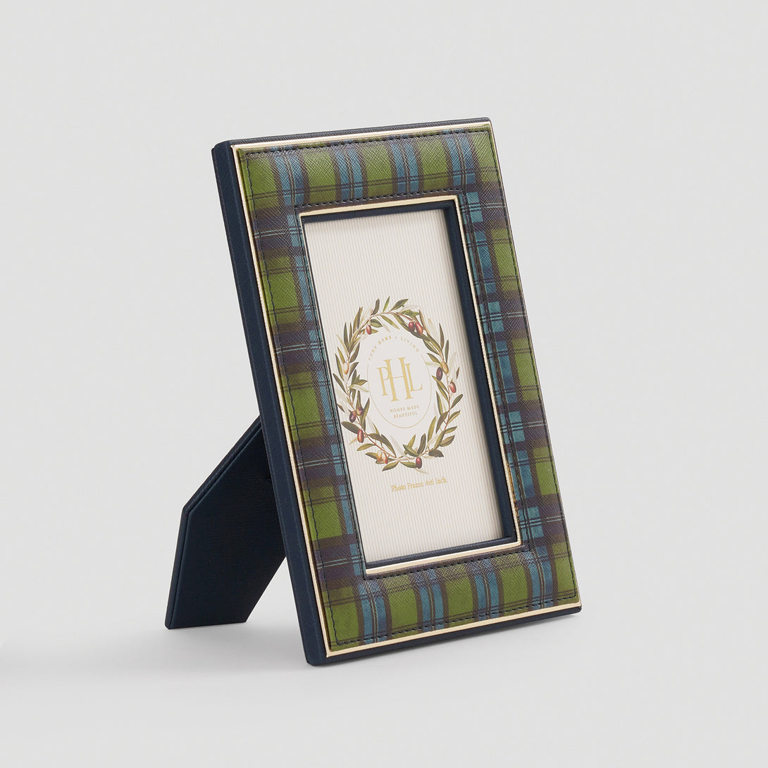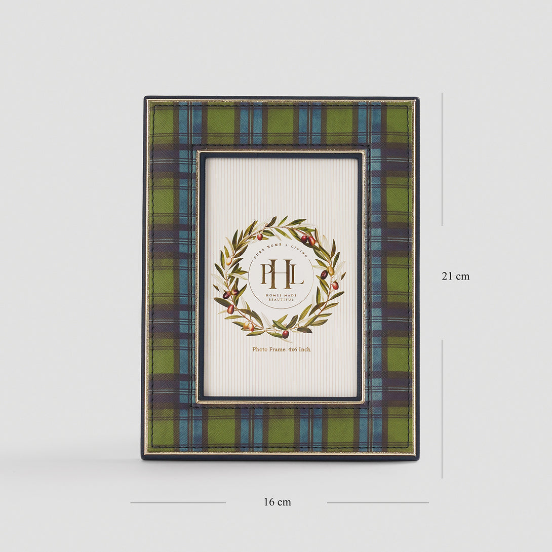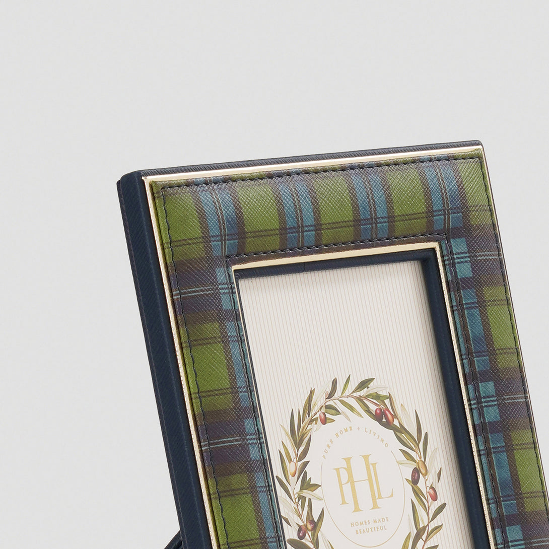 Green Plaid Faux Leather Photo Frame - Small