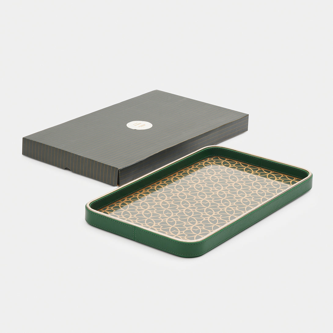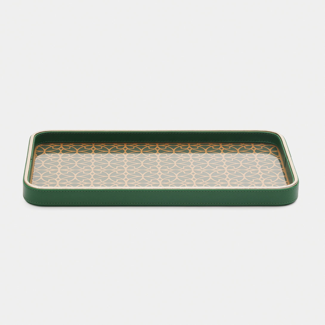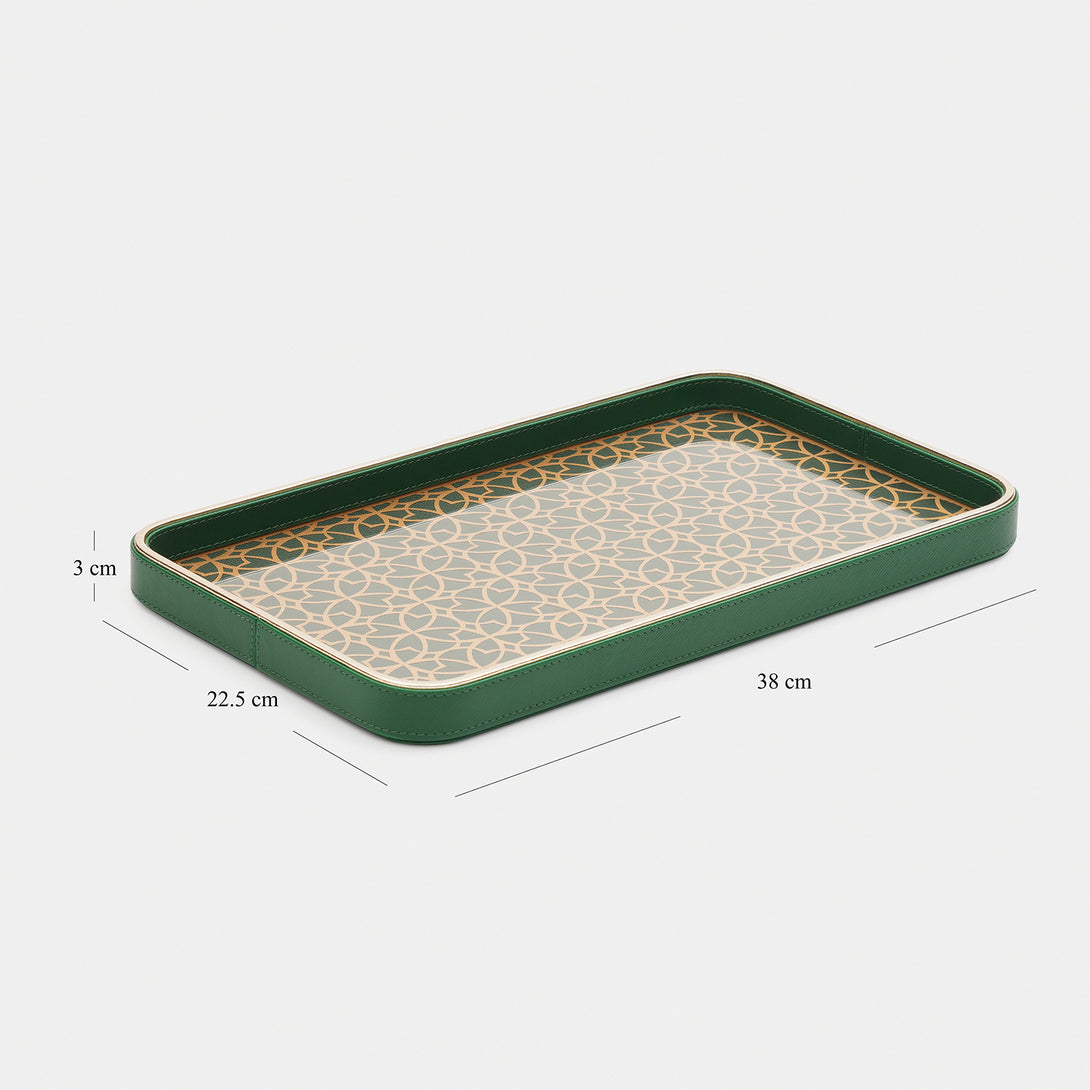 Green Printed Glass Rectangle Faux Leather Platter - Large