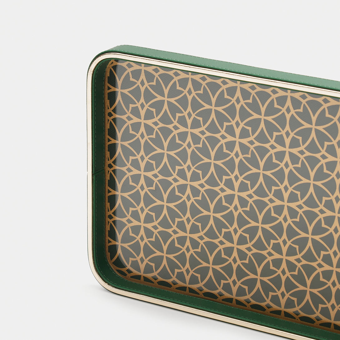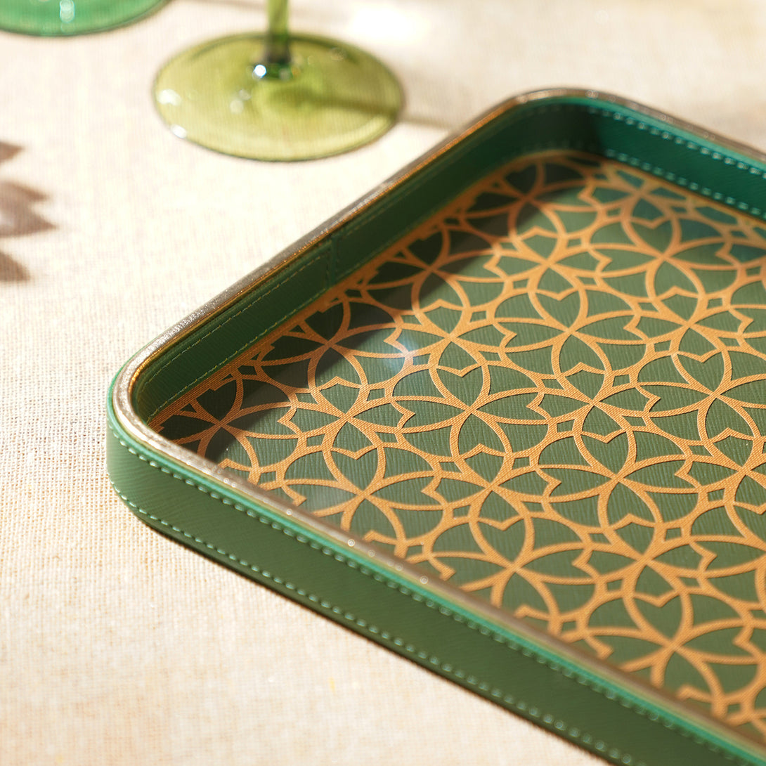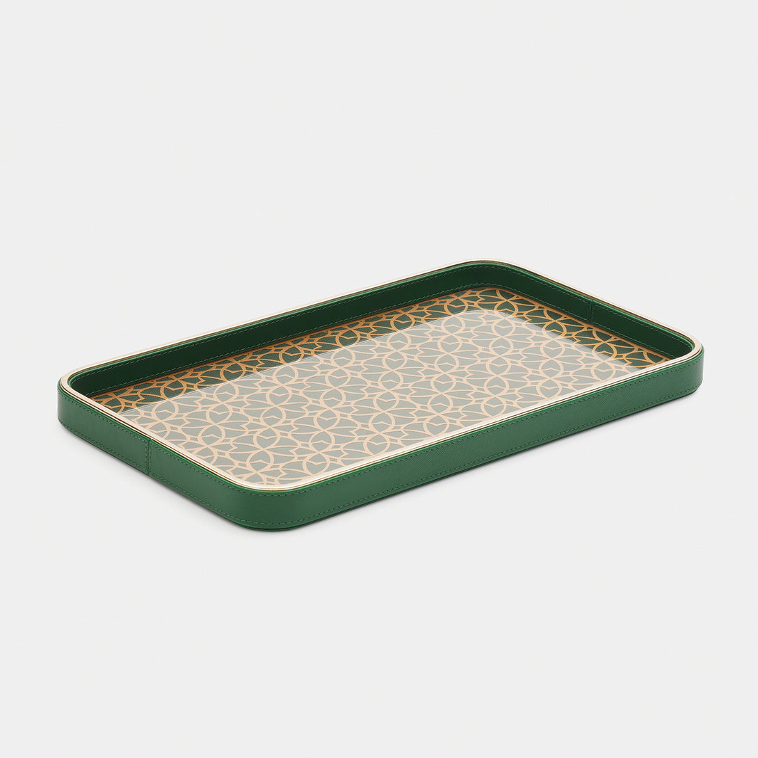 Green Printed Glass Rectangle Faux Leather Platter - Large
