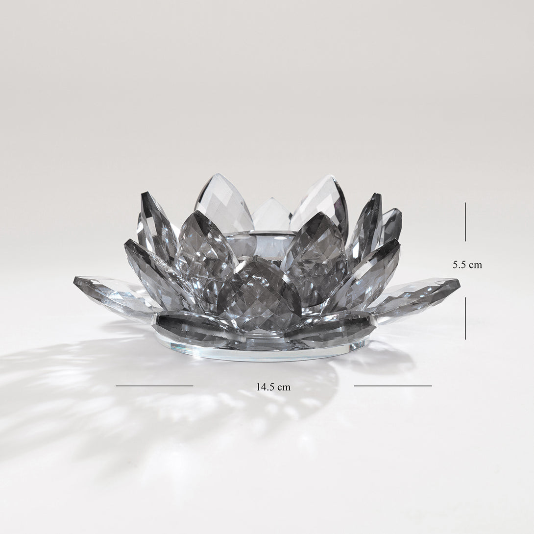 Grey Crystal Lotus Shaped Candle Holder