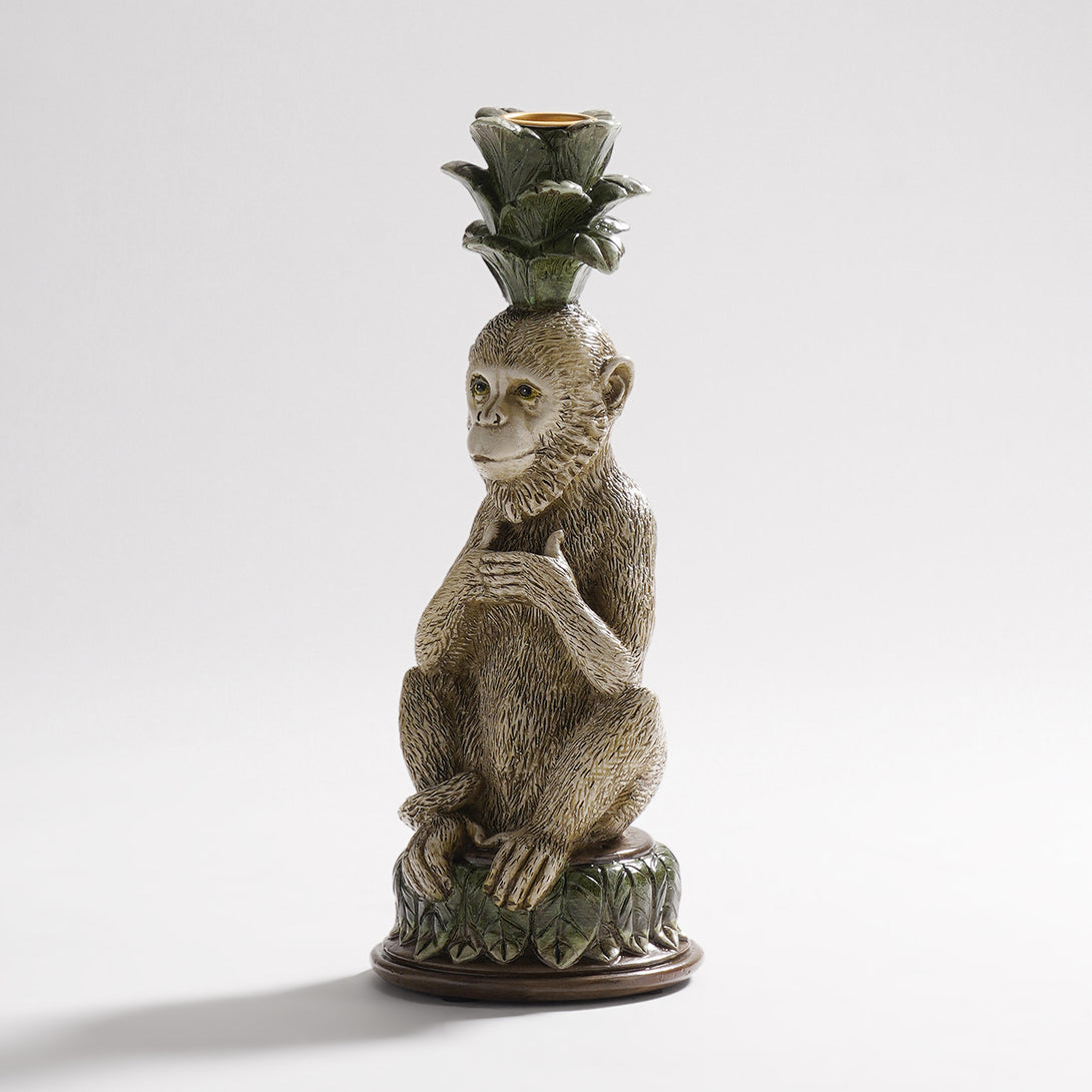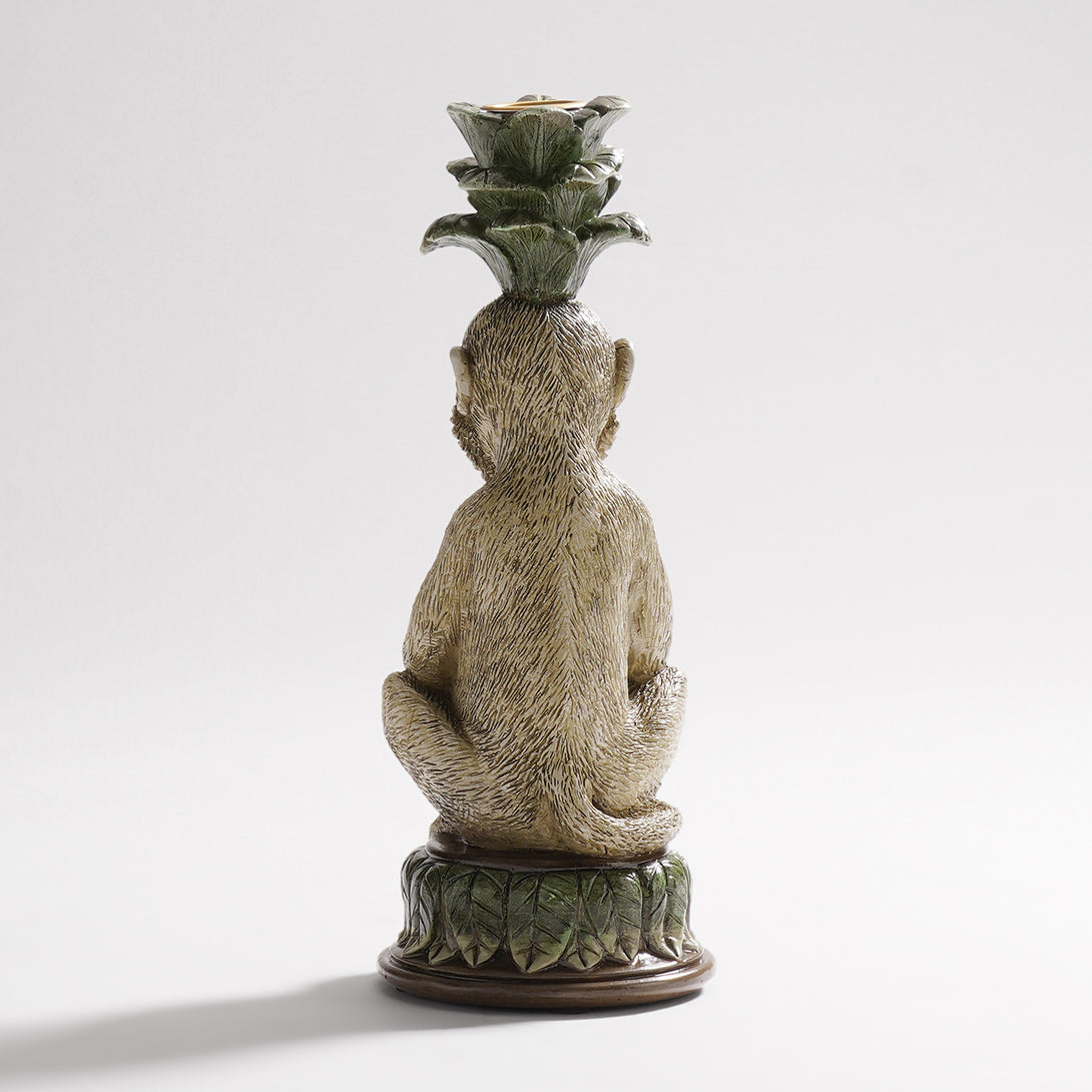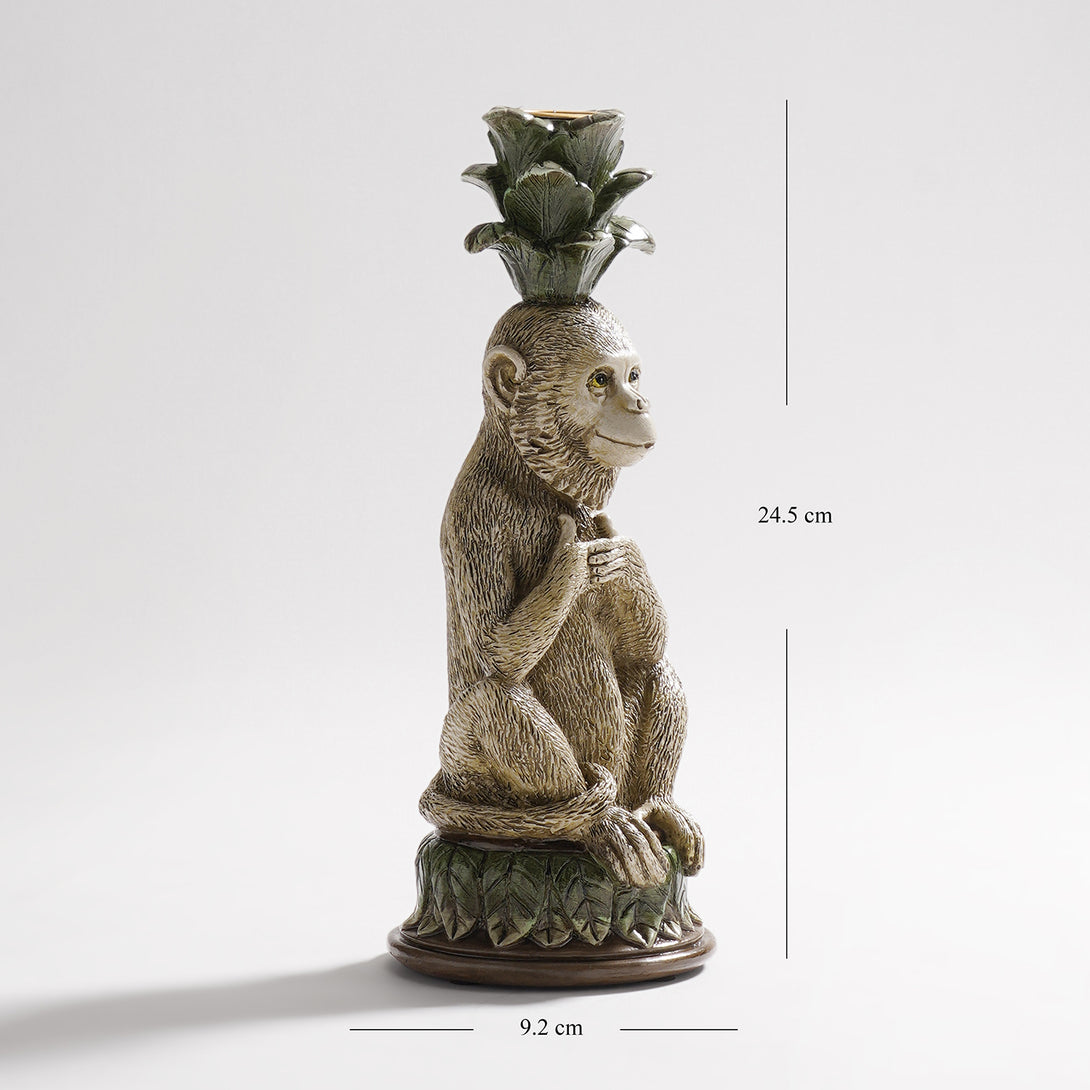 Add a touch of playful charm with this intricately detailed monkey candle holder, featuring a leafy crown design atop its head.