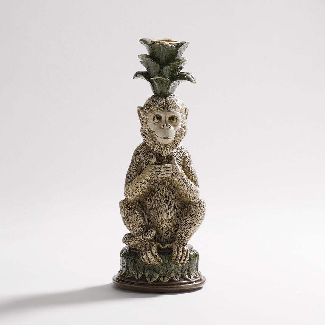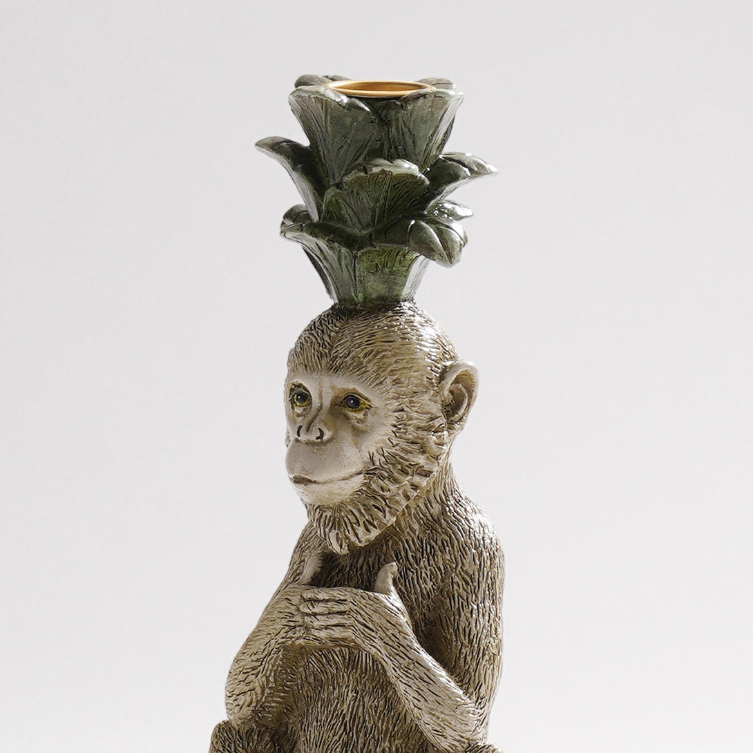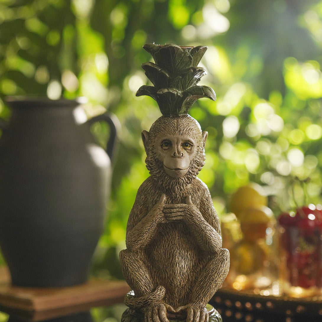 Add a touch of playful charm with this intricately detailed monkey candle holder, featuring a leafy crown design atop its head.