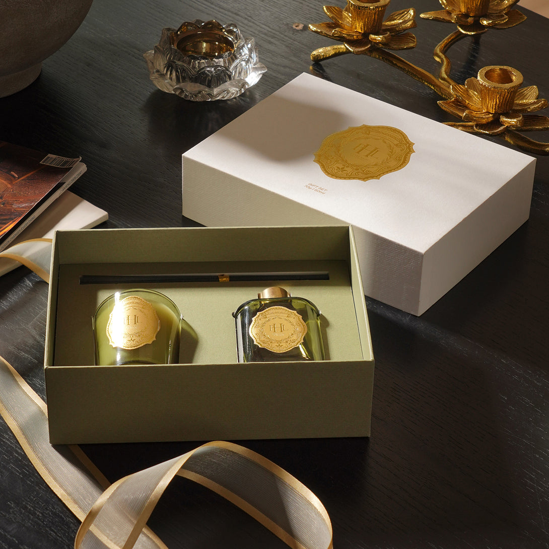 Elevate your space with this intense race wax-filled jar and diffuser set, blending rich floral notes with a touch of warmth. Perfect for creating an inviting, luxurious ambiance in any room.