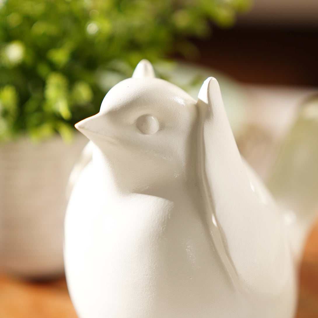Ivory Polyresin Sparrow Figurine With Closed Ears