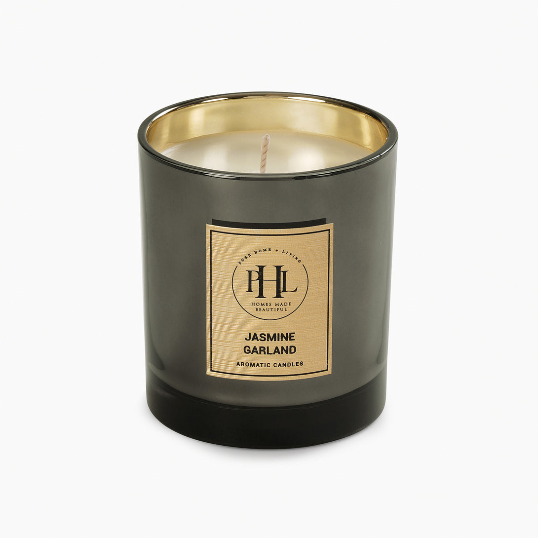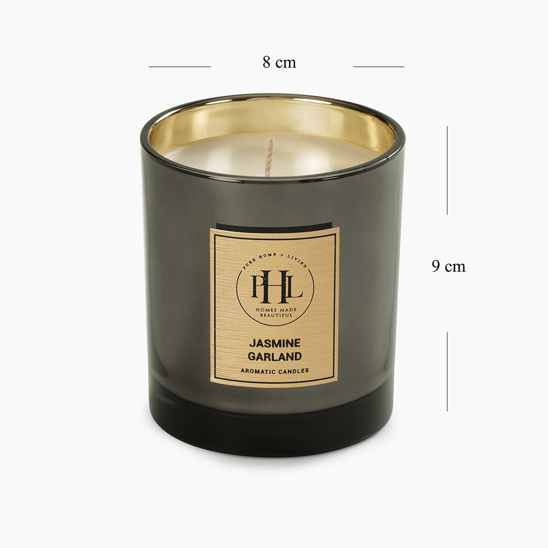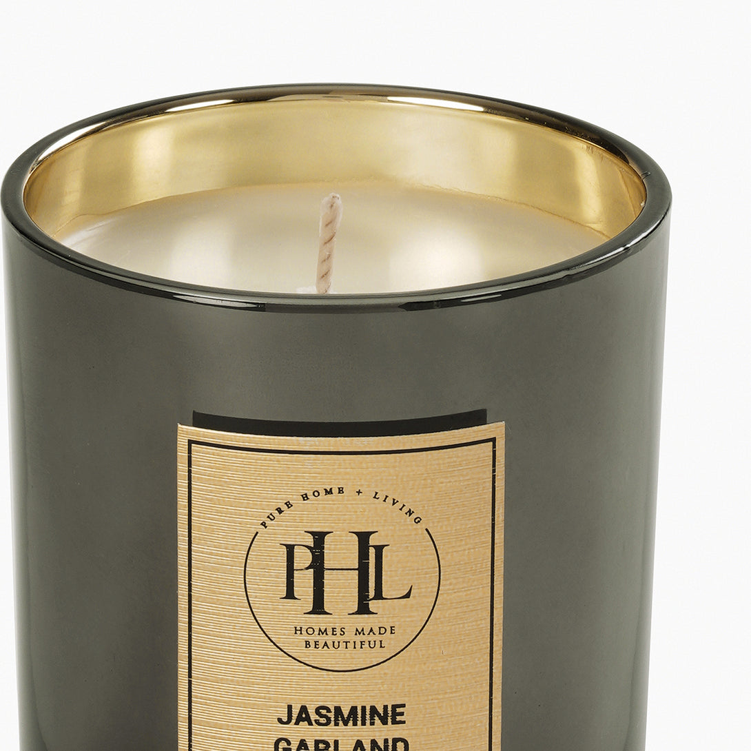 Jasmine Garland Glass Jar Candle - Black