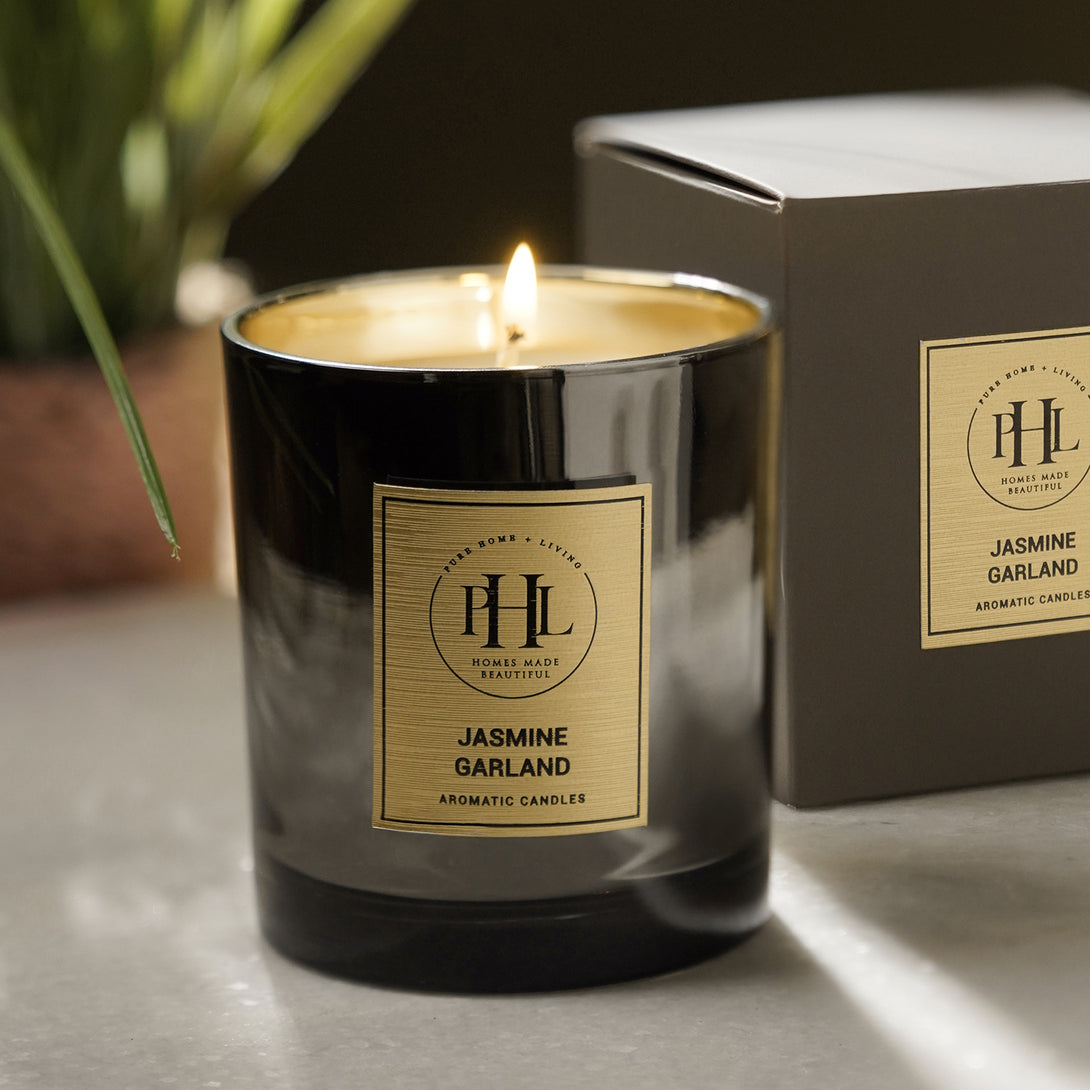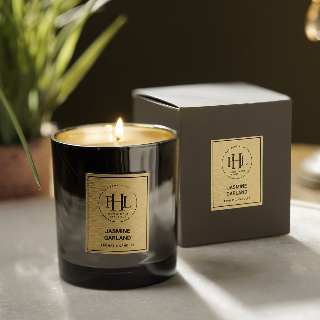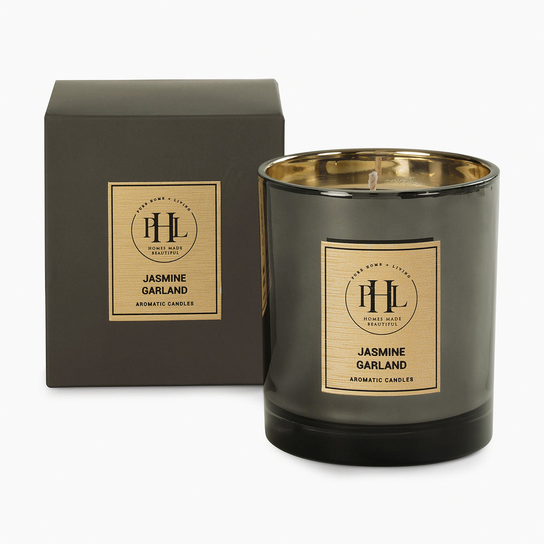 Jasmine Garland Glass Jar Candle - Black