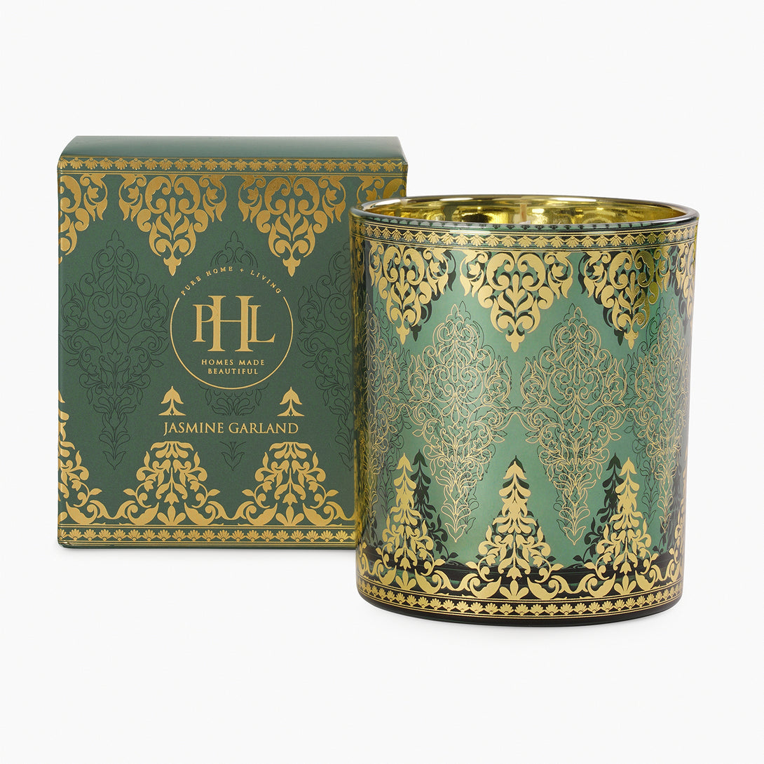Jasmine Garland Printed Glass Jar Candle - Green