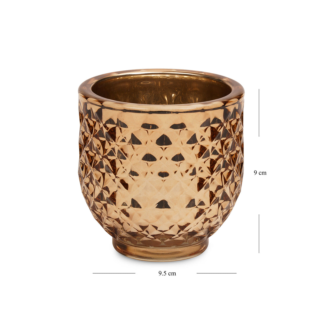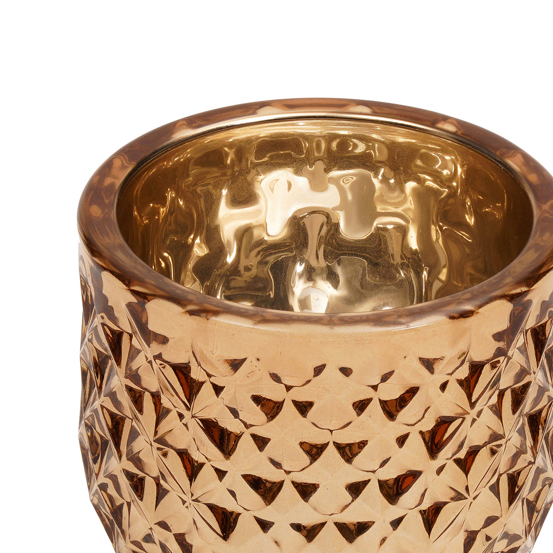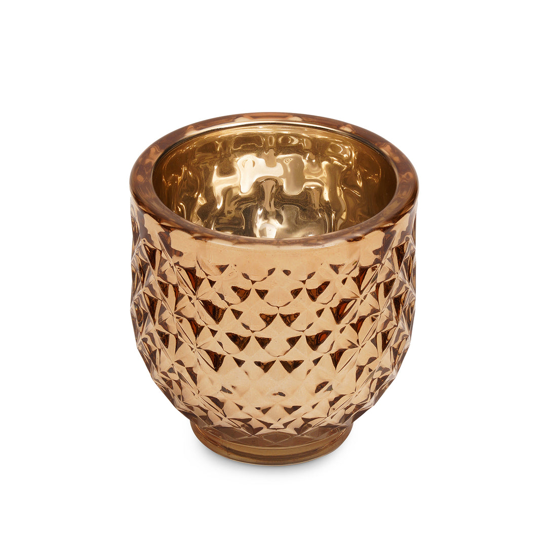 Light Amber Diamond Textured Tealight Holder - Large