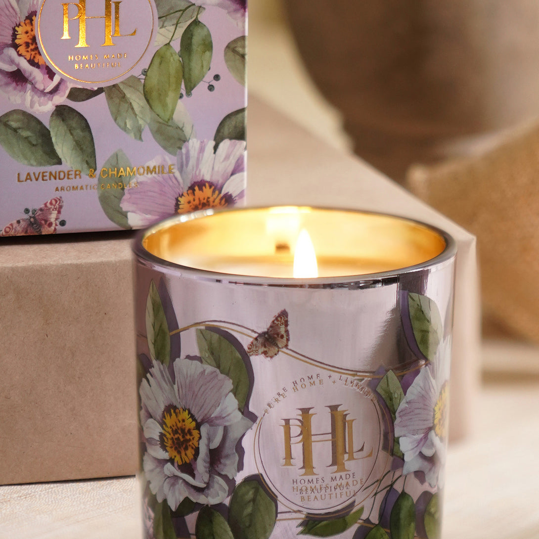 Indulge your senses with our lavender and chamomile wax filled candle jar. Crafted to envelop your space in a soothing ambiance, this candle will transport you to a state of blissful relaxation.