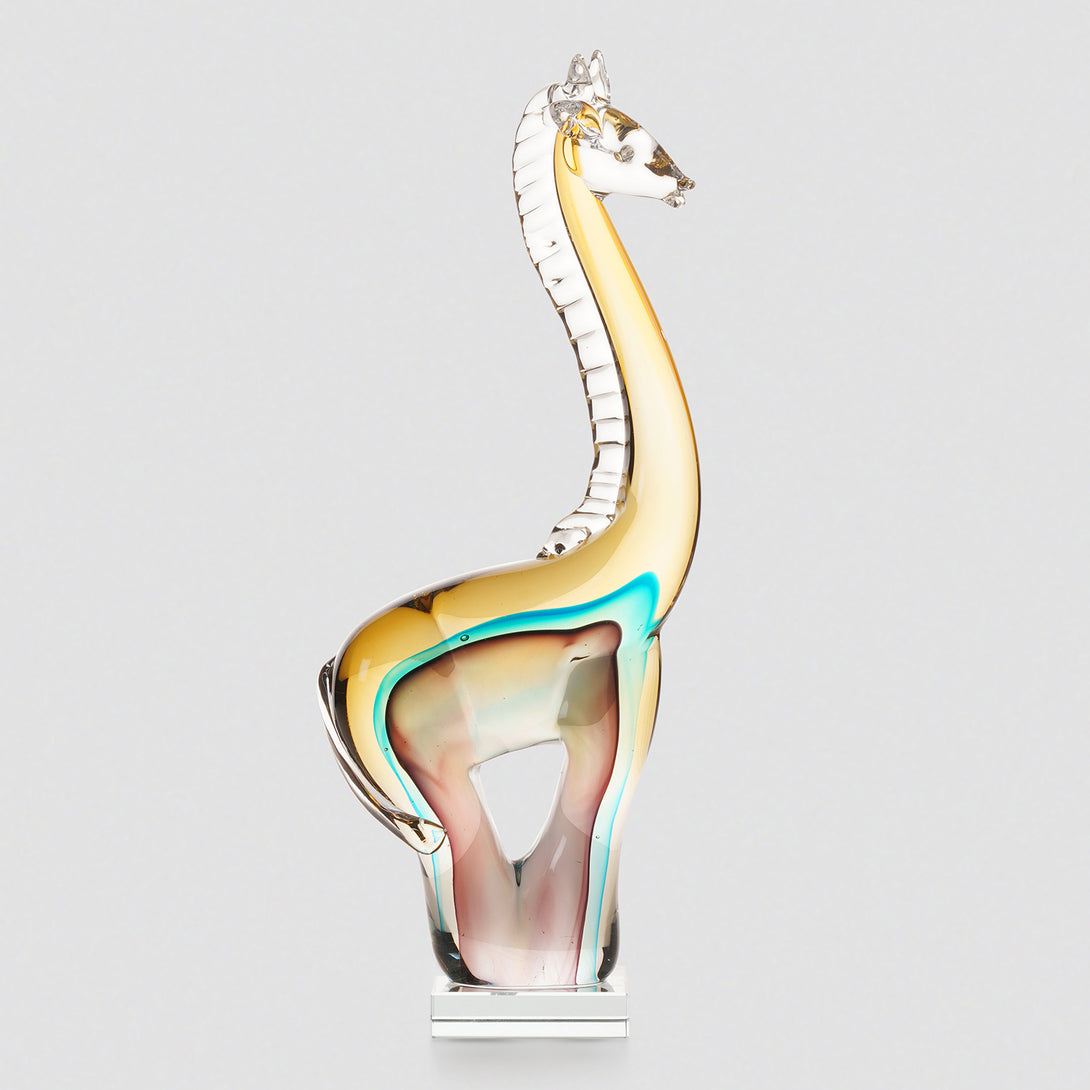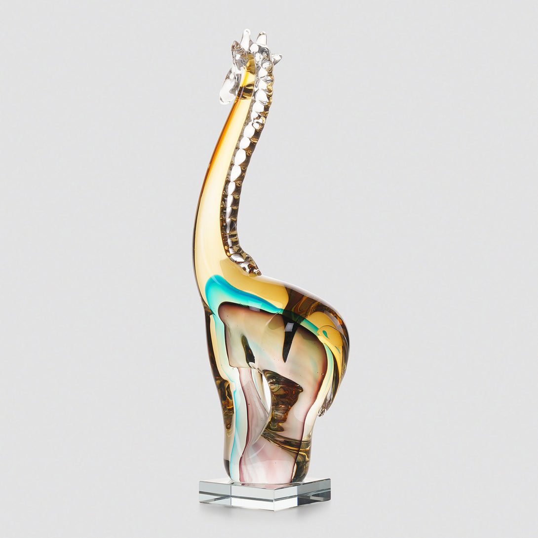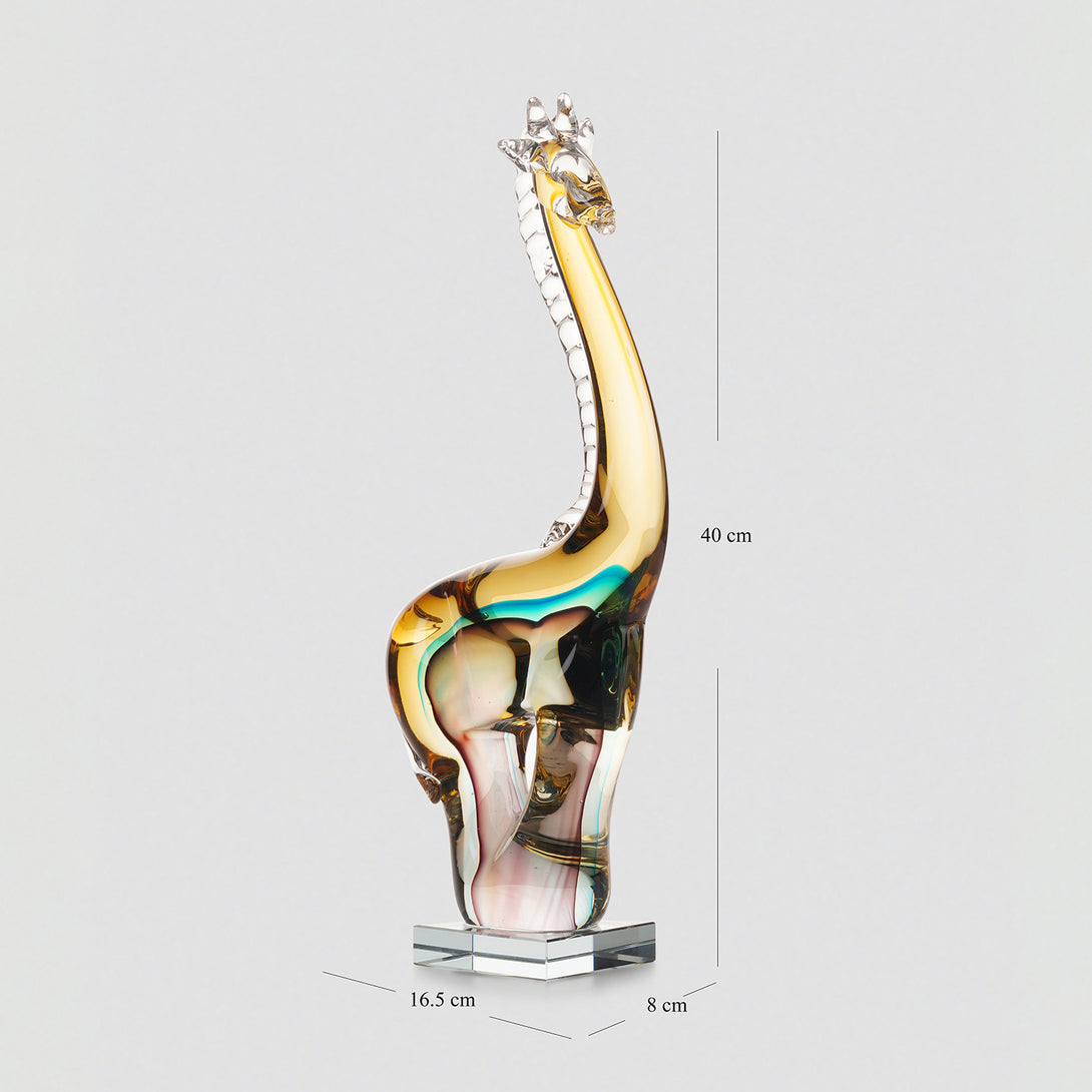 With elegant curves and rich golden-brown tones accented by hints of blue, this multicoloured glass giraffe symbolises vision, grace, and uniquenessâperfect for adding artistic sophistication to your home.