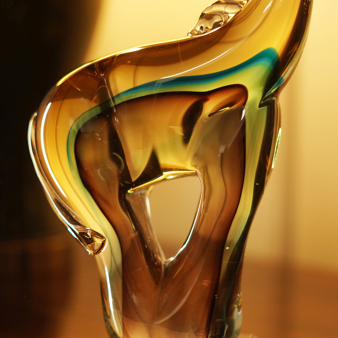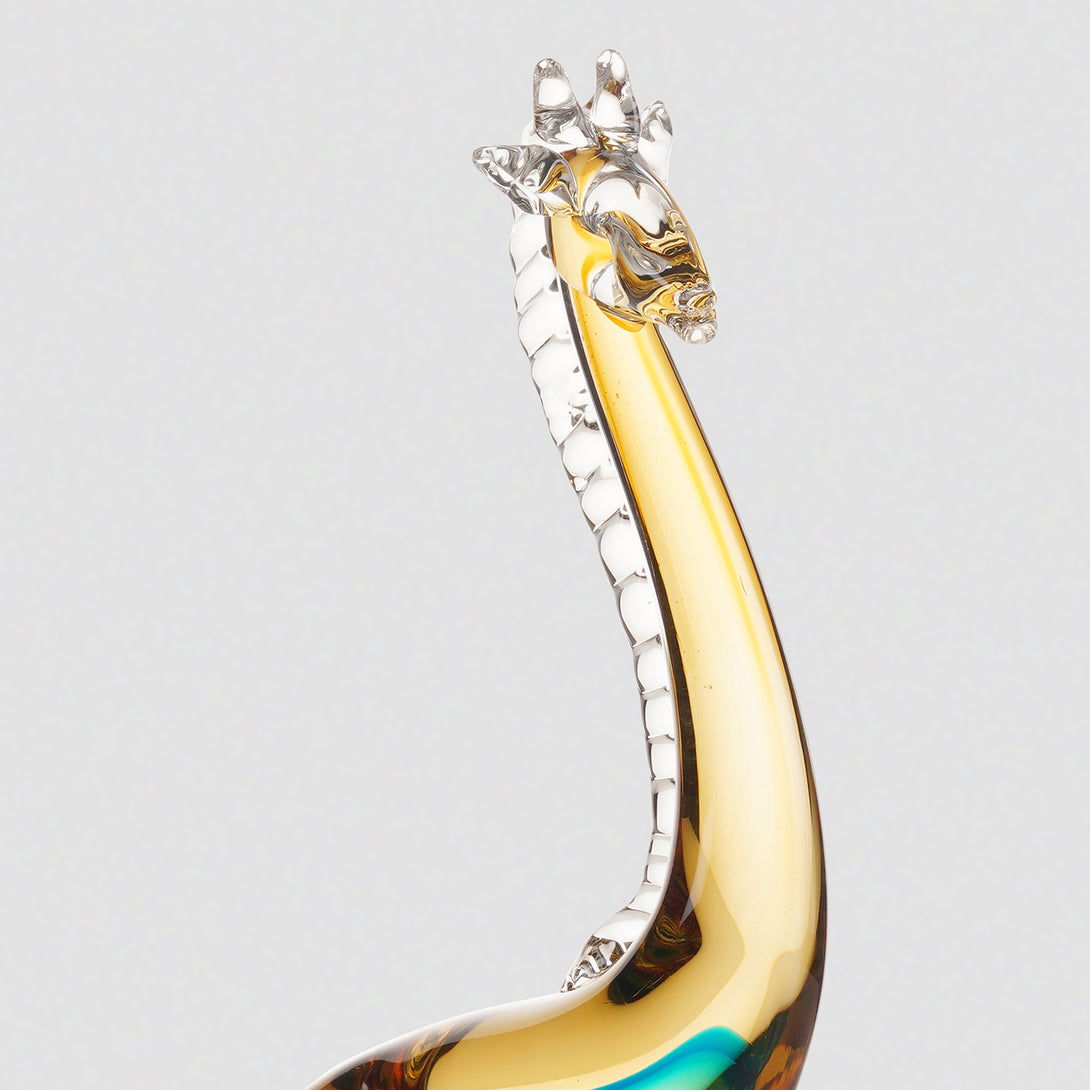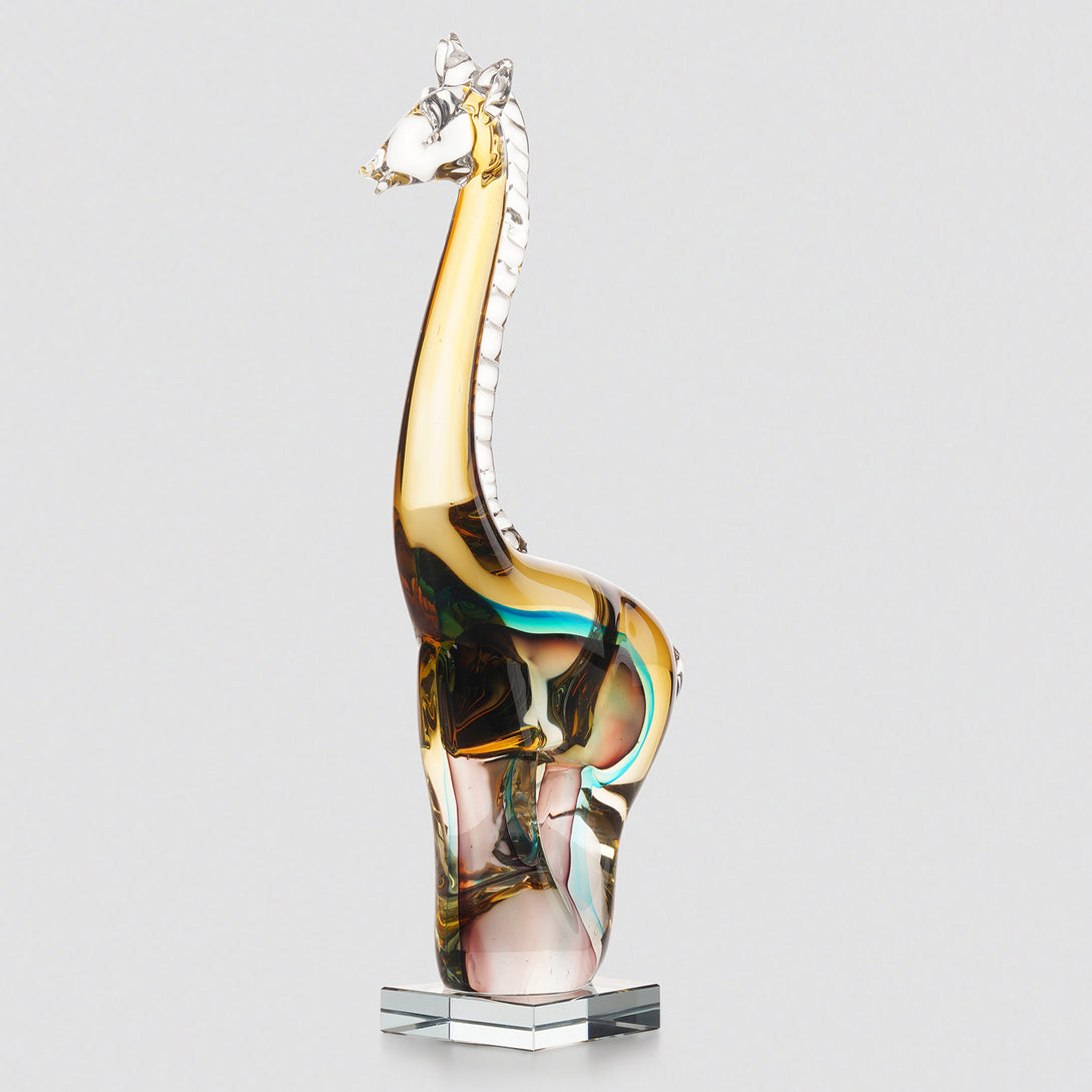 With elegant curves and rich golden-brown tones accented by hints of blue, this multicoloured glass giraffe symbolises vision, grace, and uniquenessâperfect for adding artistic sophistication to your home.