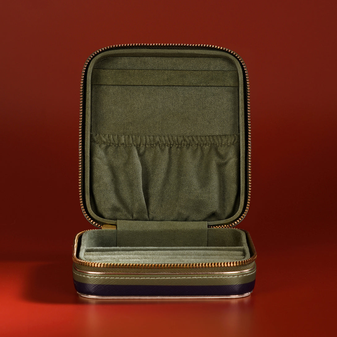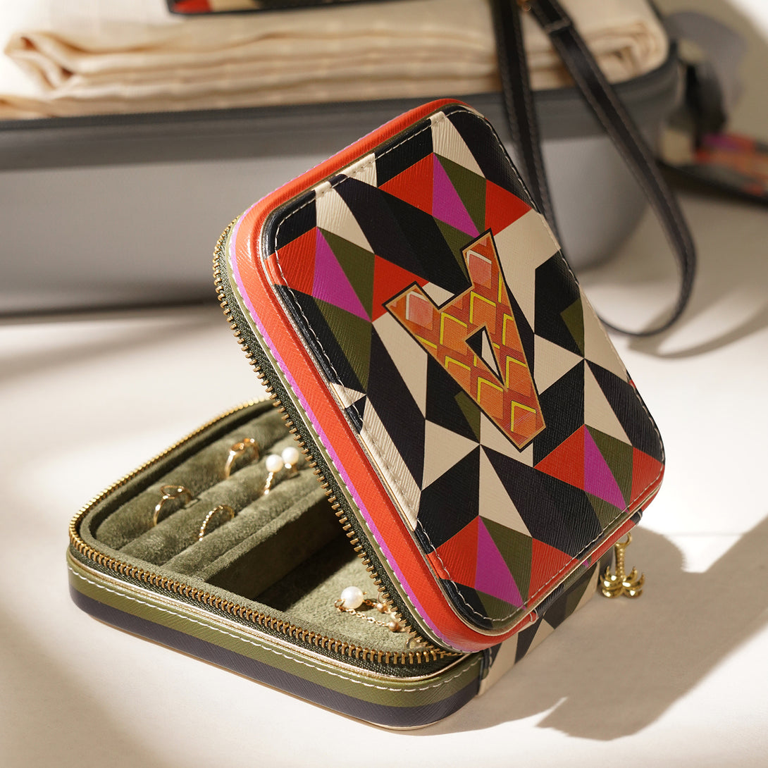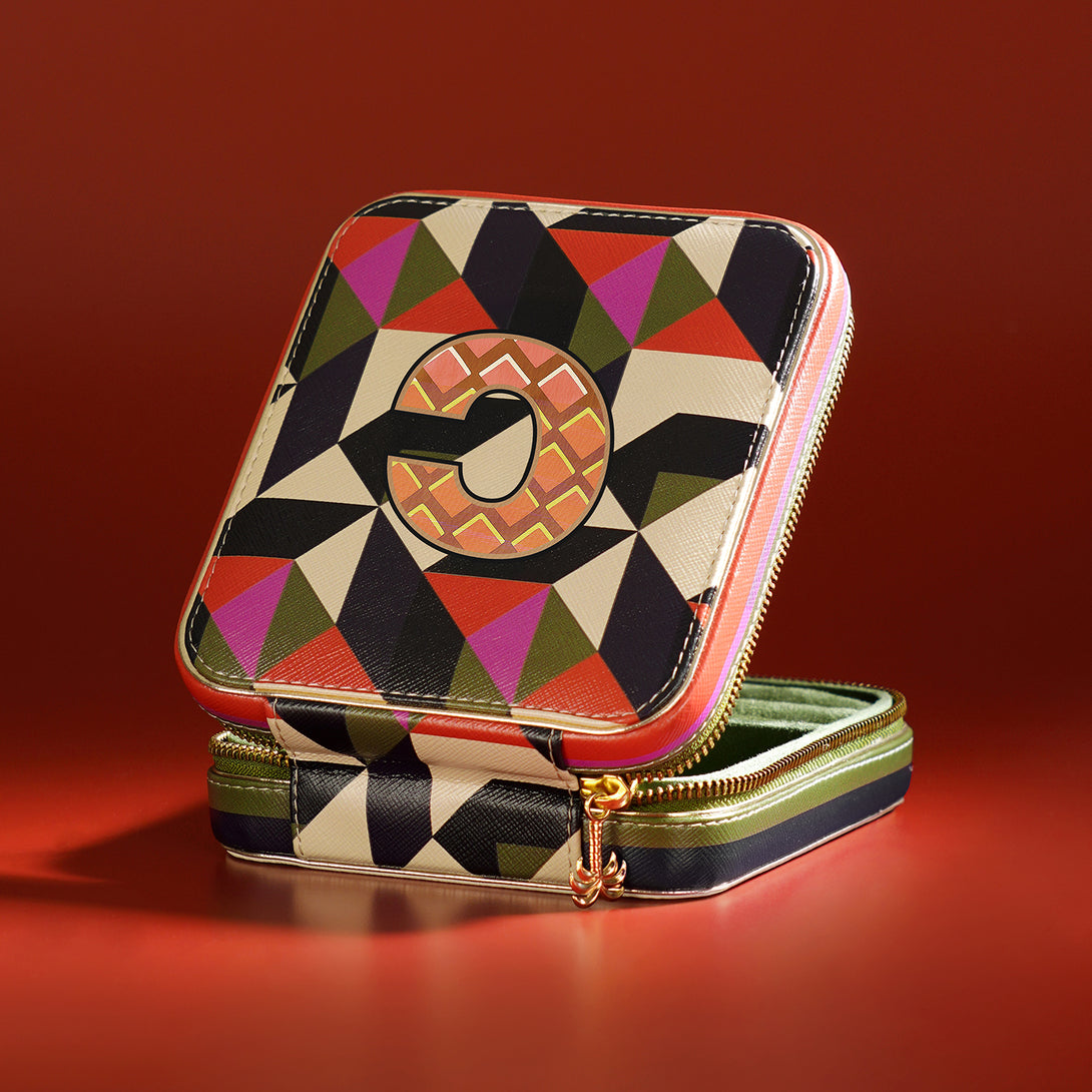 Chic and compact, this orange and pink 'C' faux leather jewellery box keeps your treasures safe and tangle-free on the go. Its bold design and secure structure make it the perfect companion for stylish, organized travel.