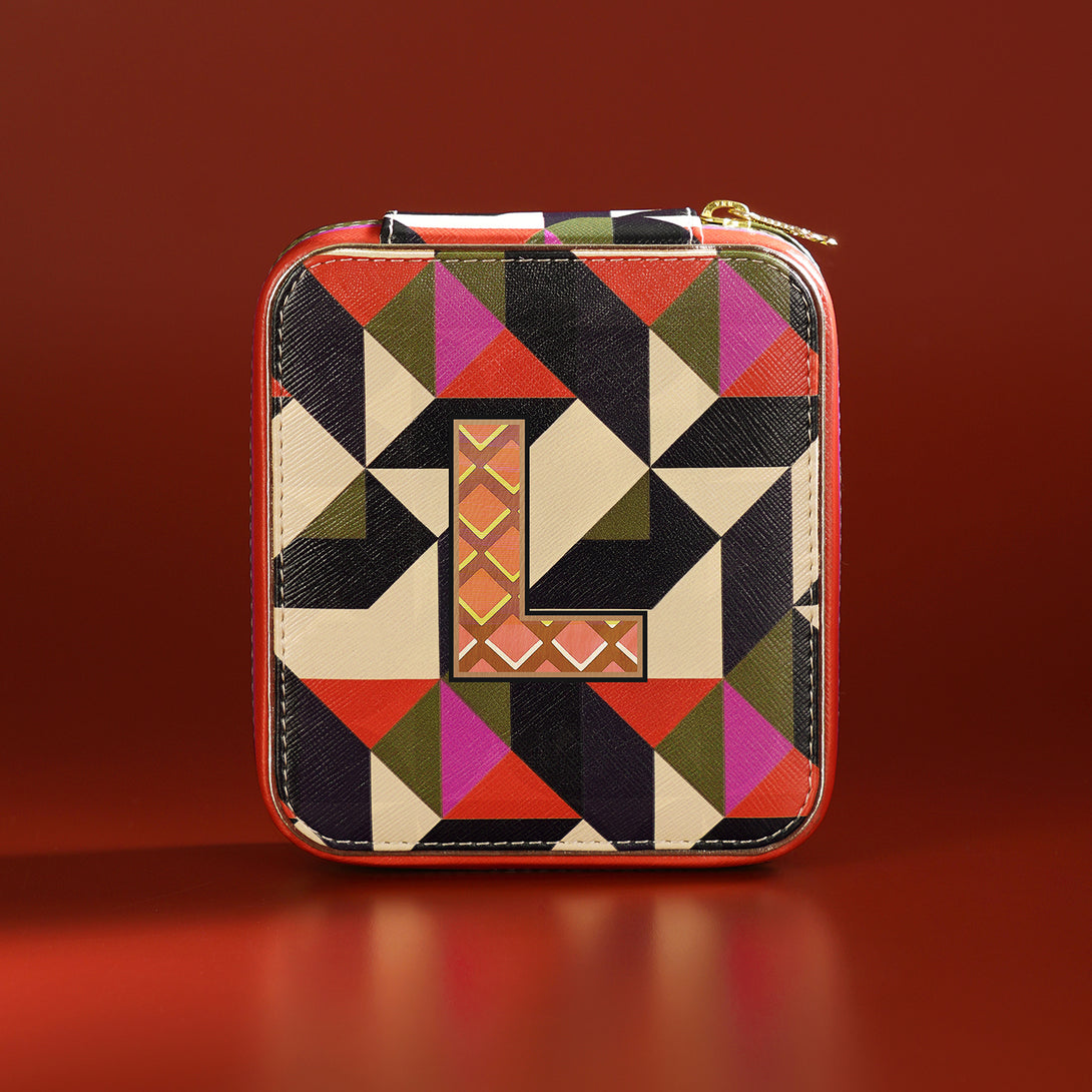 Chic and compact, this orange and pink 'L' faux leather jewellery box keeps your treasures safe and tangle-free on the go. Its bold design and secure structure make it the perfect companion for stylish, organized travel.