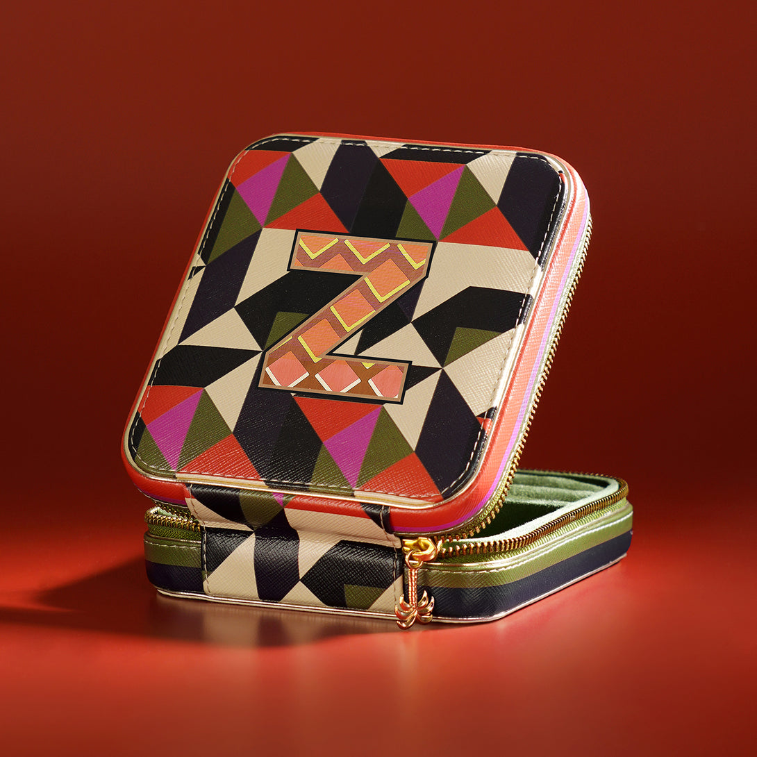 Chic and compact, this orange and pink 'Z' faux leather jewellery box keeps your treasures safe and tangle-free on the go. Its bold design and secure structure make it the perfect companion for stylish, organized travel.